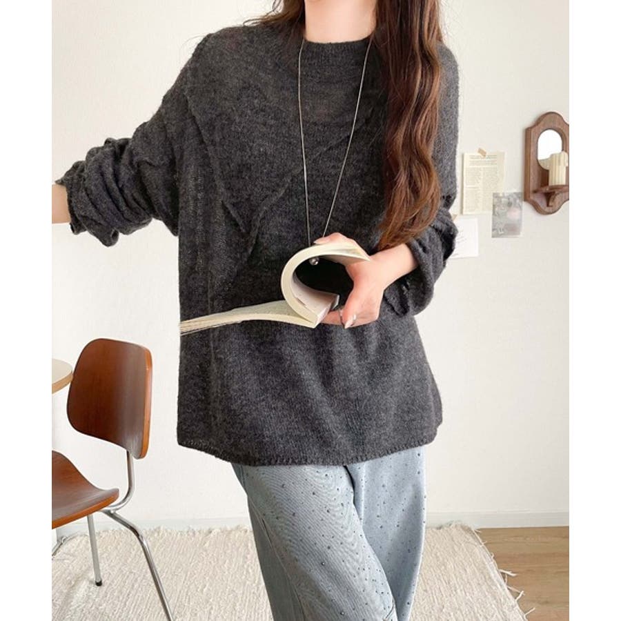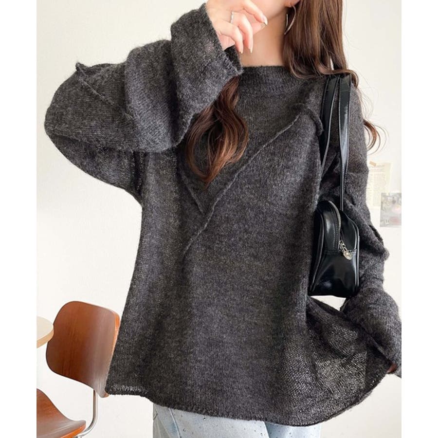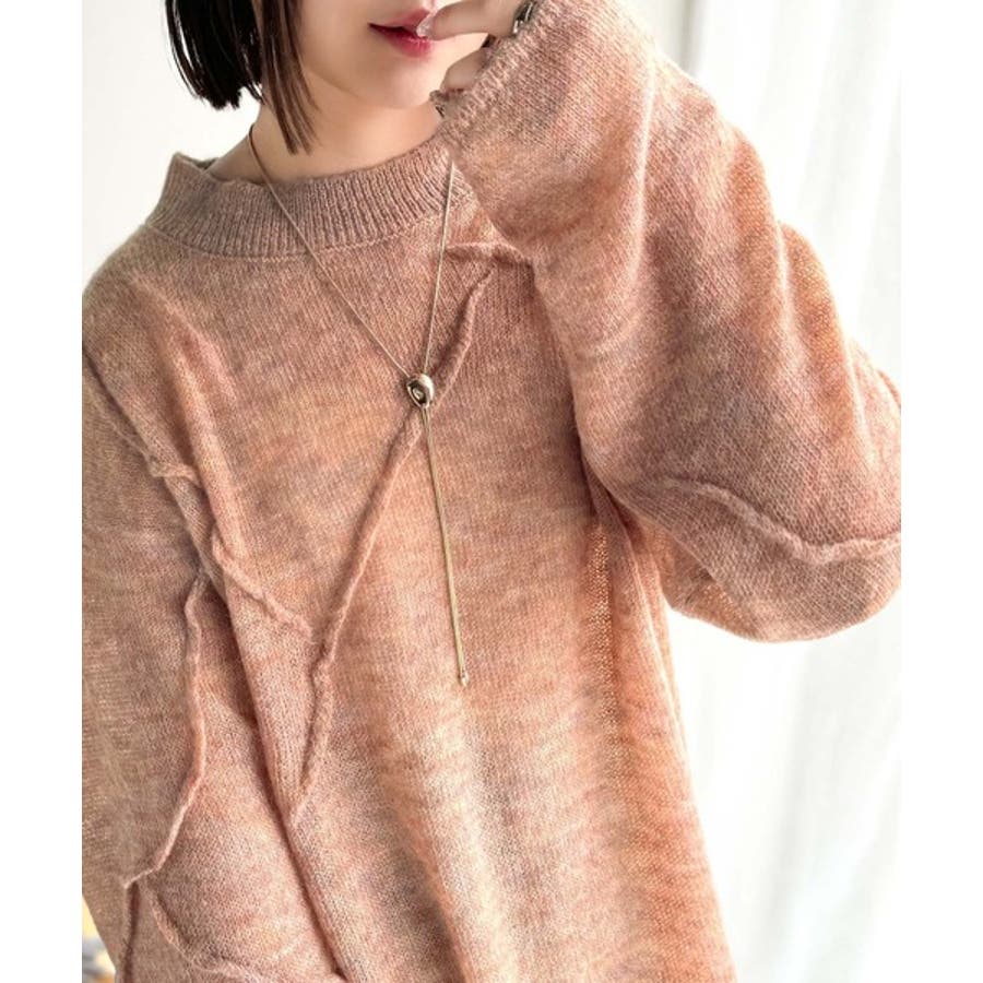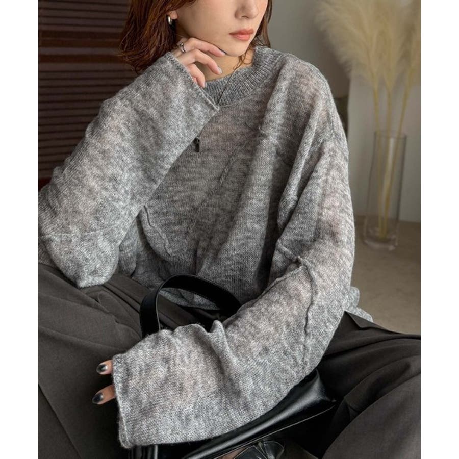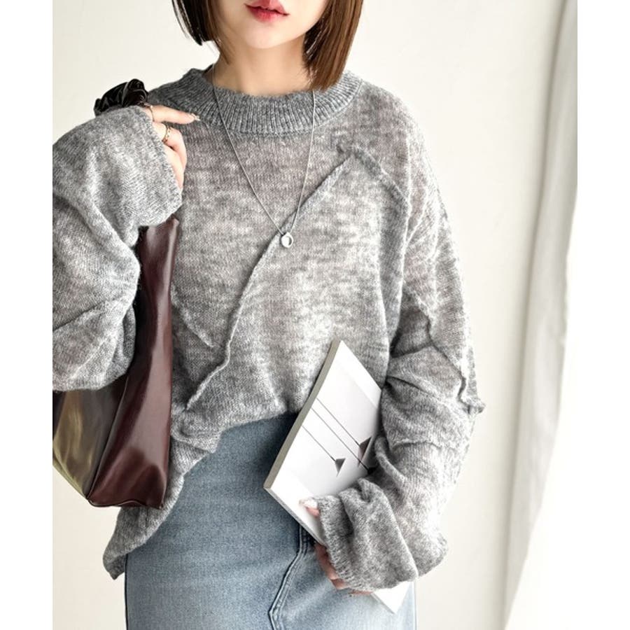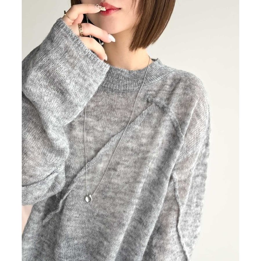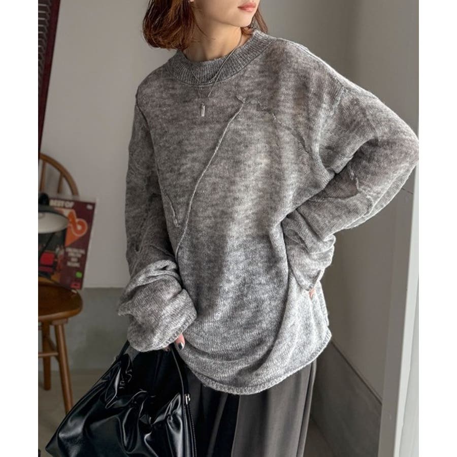 “ゆるっと”が叶える、1秒垢抜け!モヘアタッチシアー変形タック柄ニット(長袖)