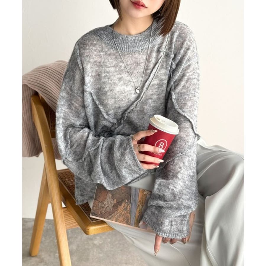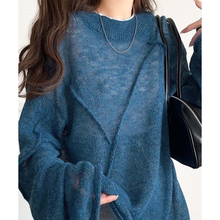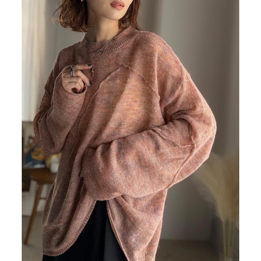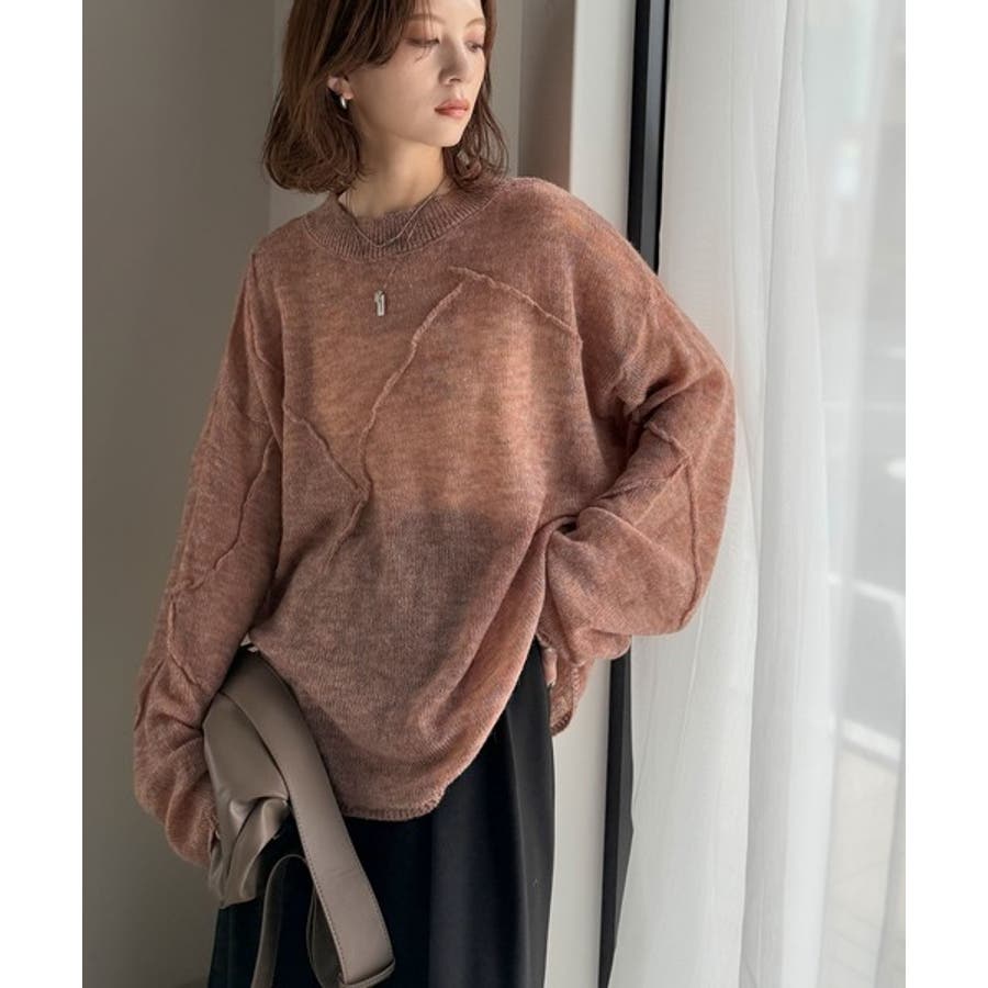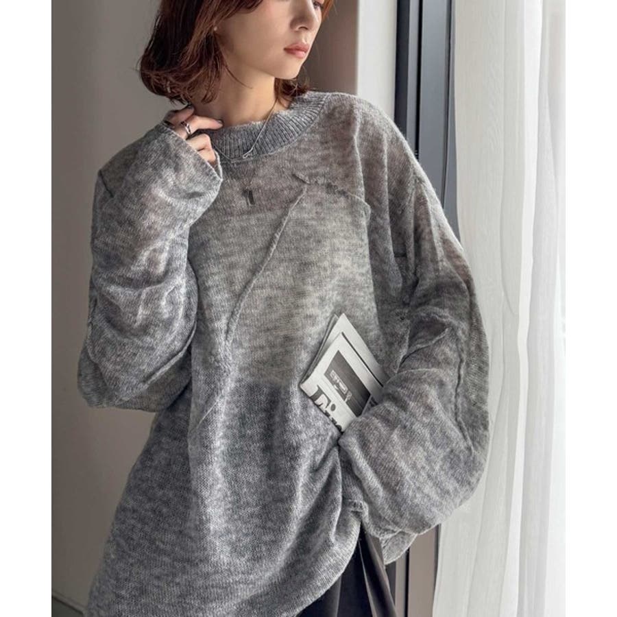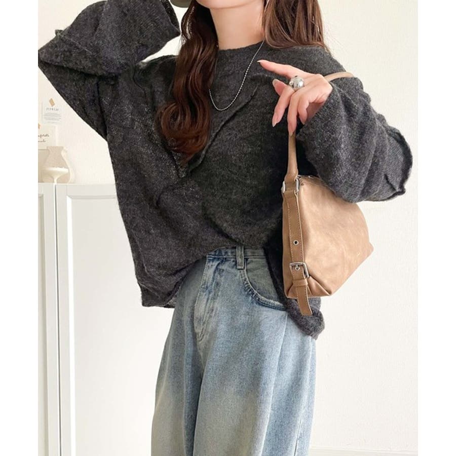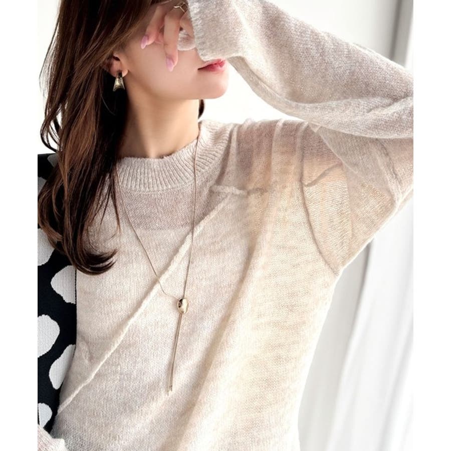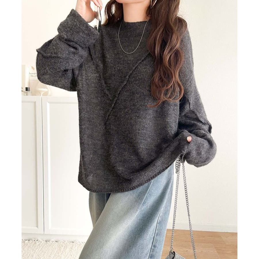 “ゆるっと”が叶える、1秒垢抜け!モヘアタッチシアー変形タック柄ニット(長袖)