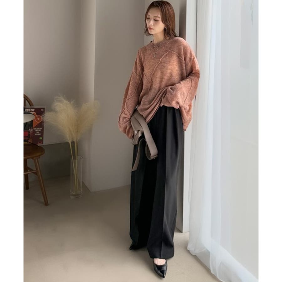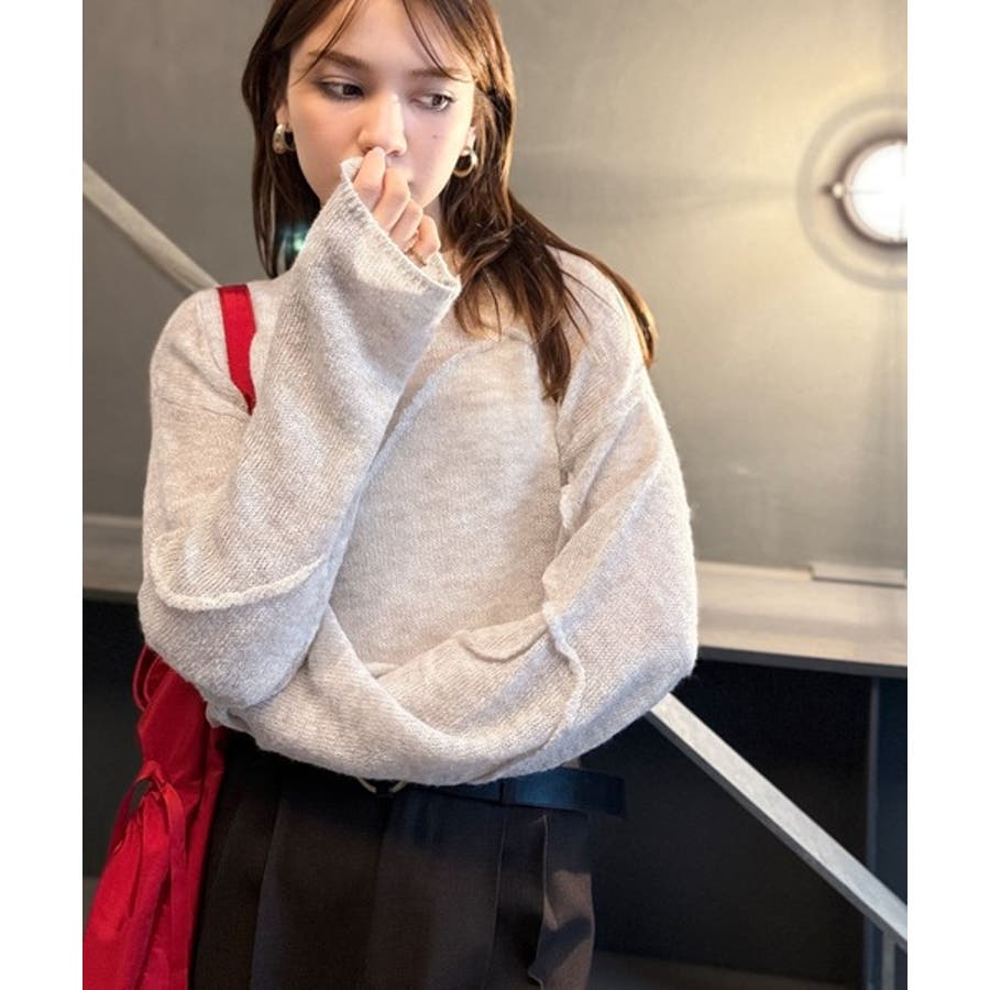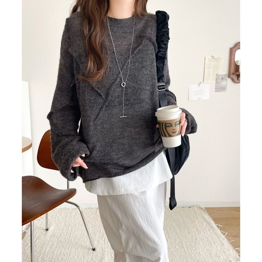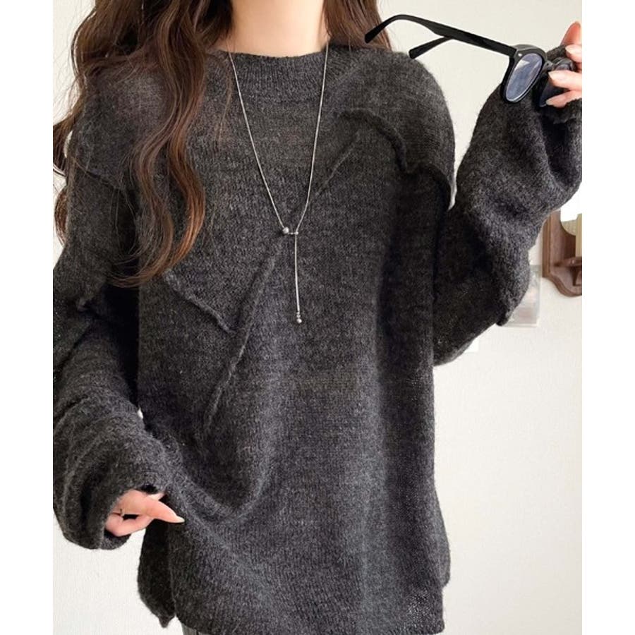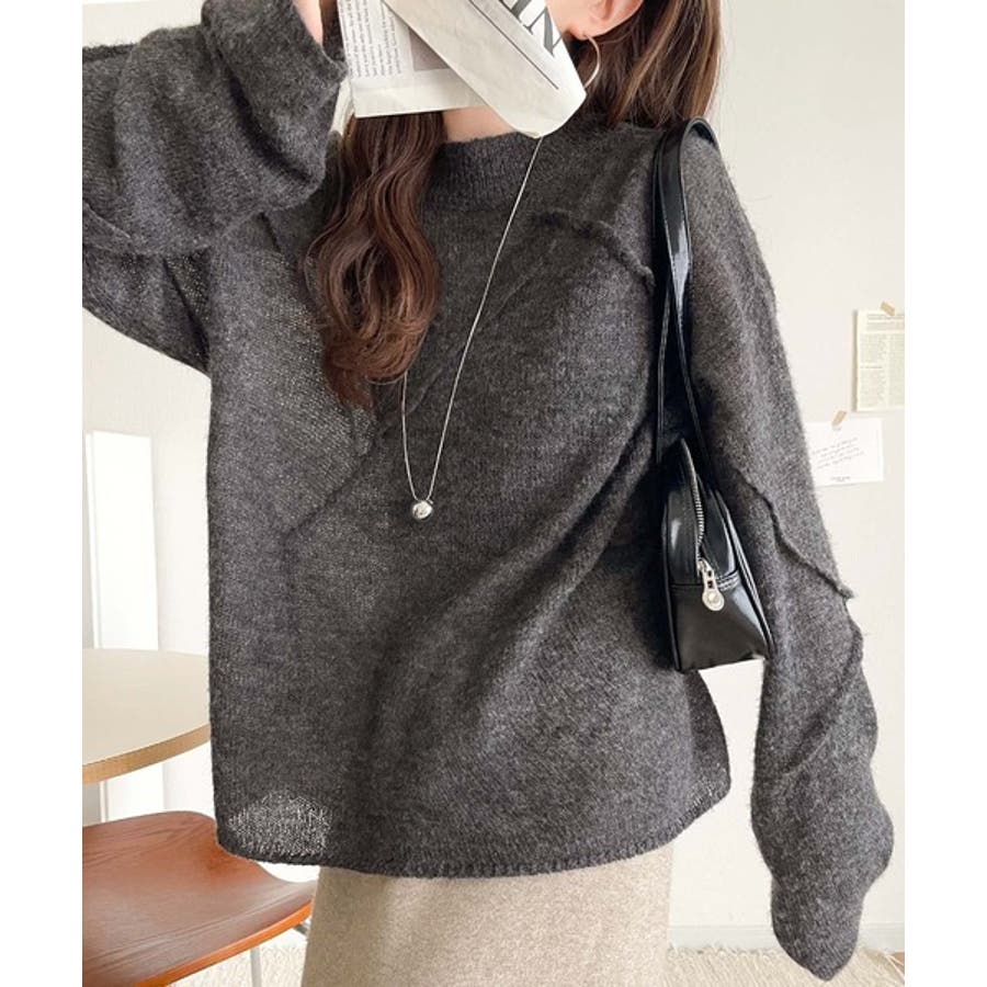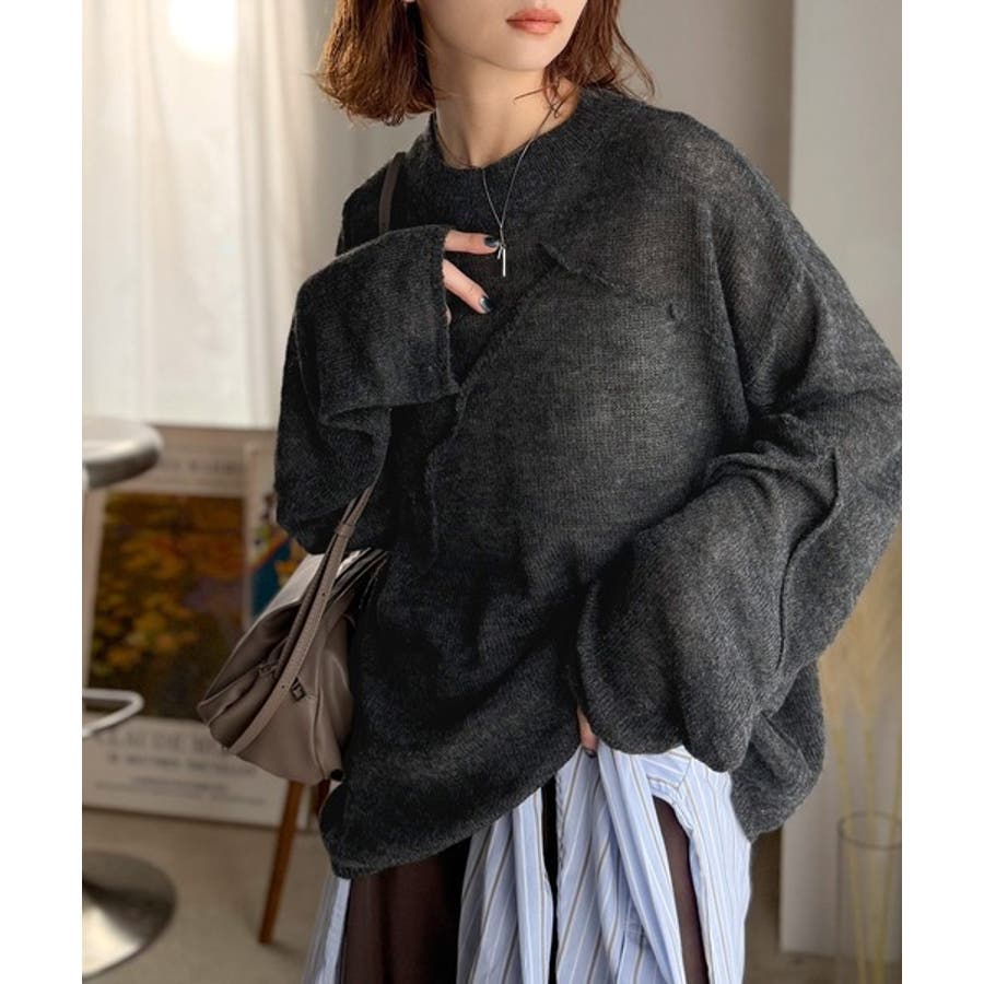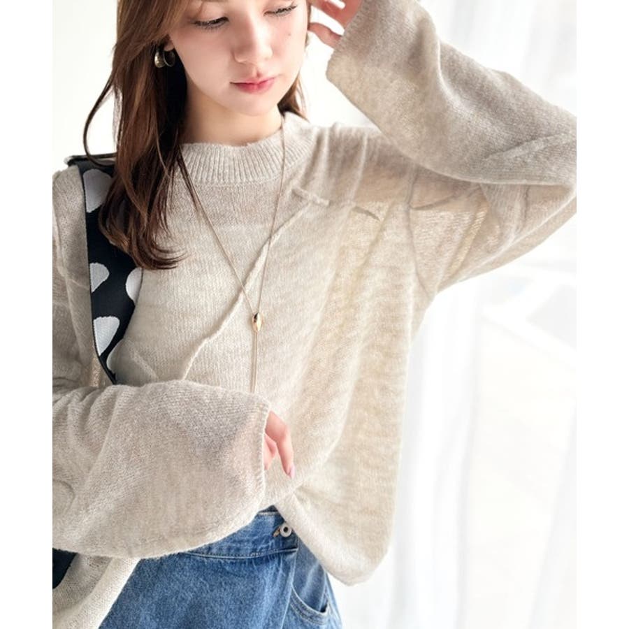 “ゆるっと”が叶える、1秒垢抜け!モヘアタッチシアー変形タック柄ニット(長袖)
