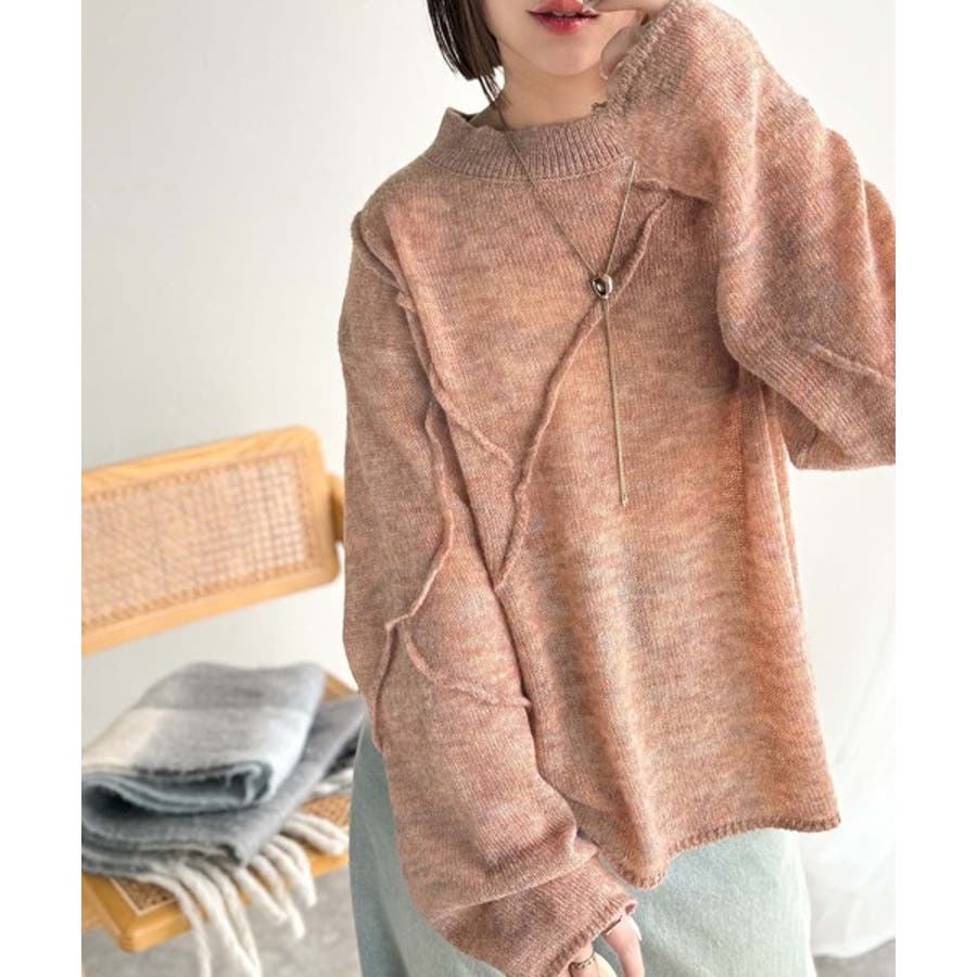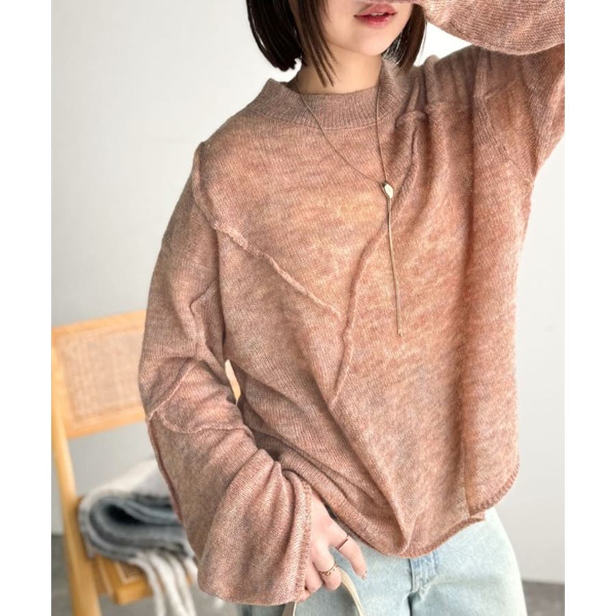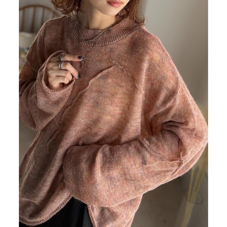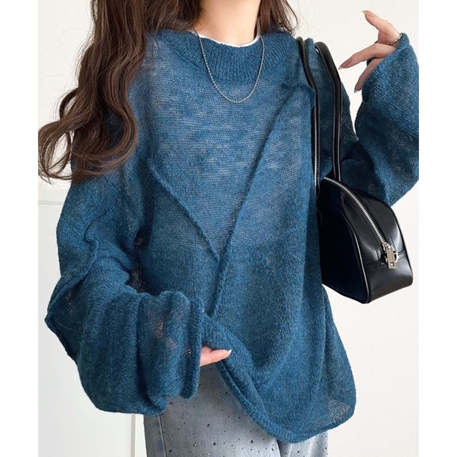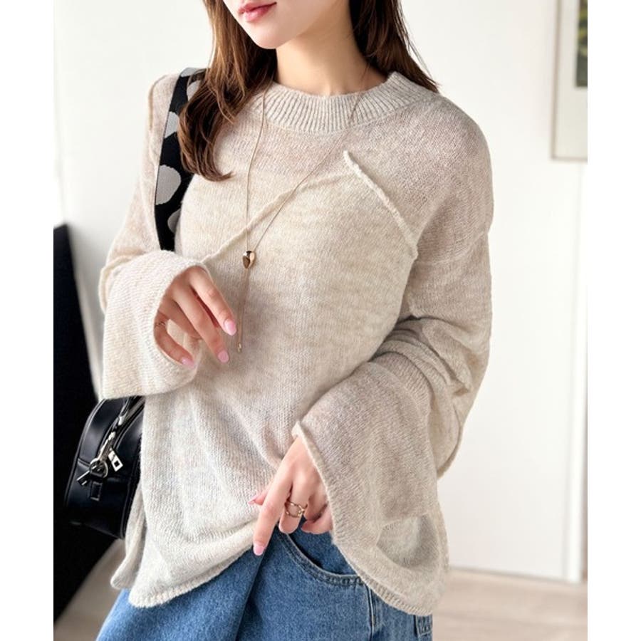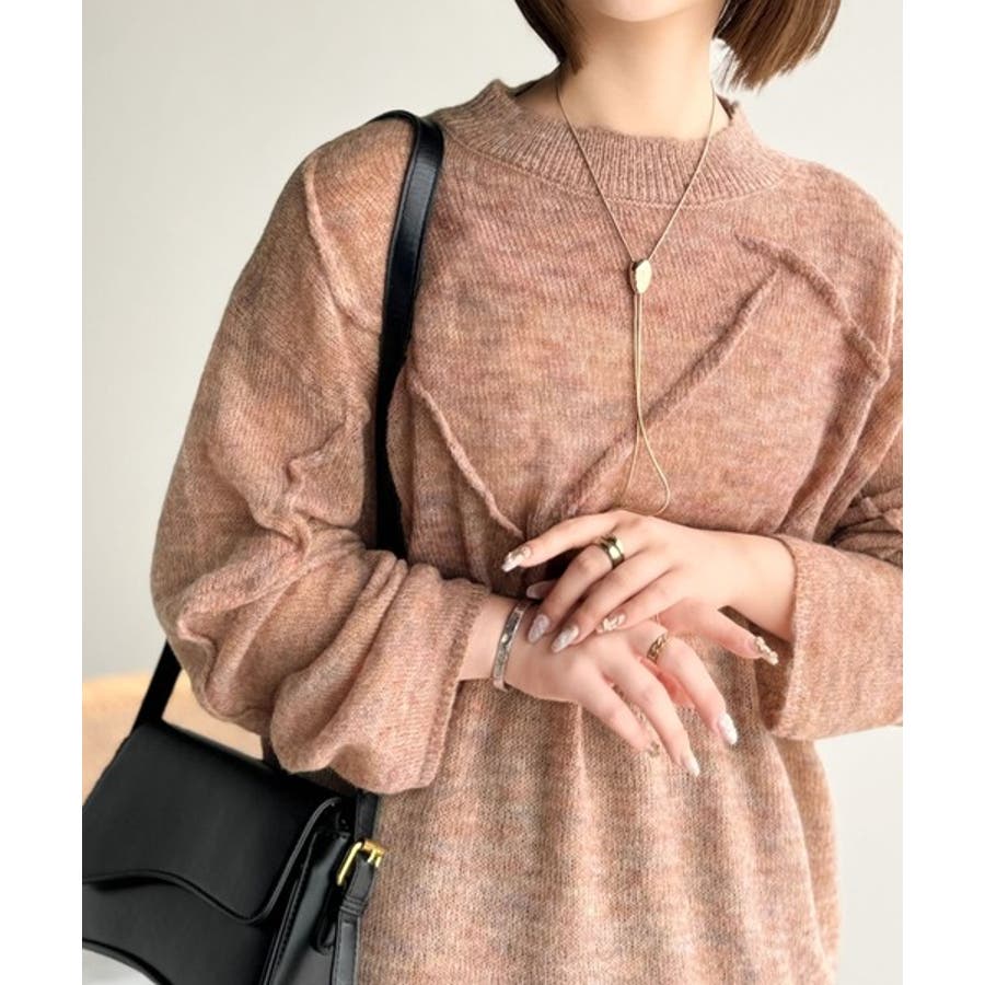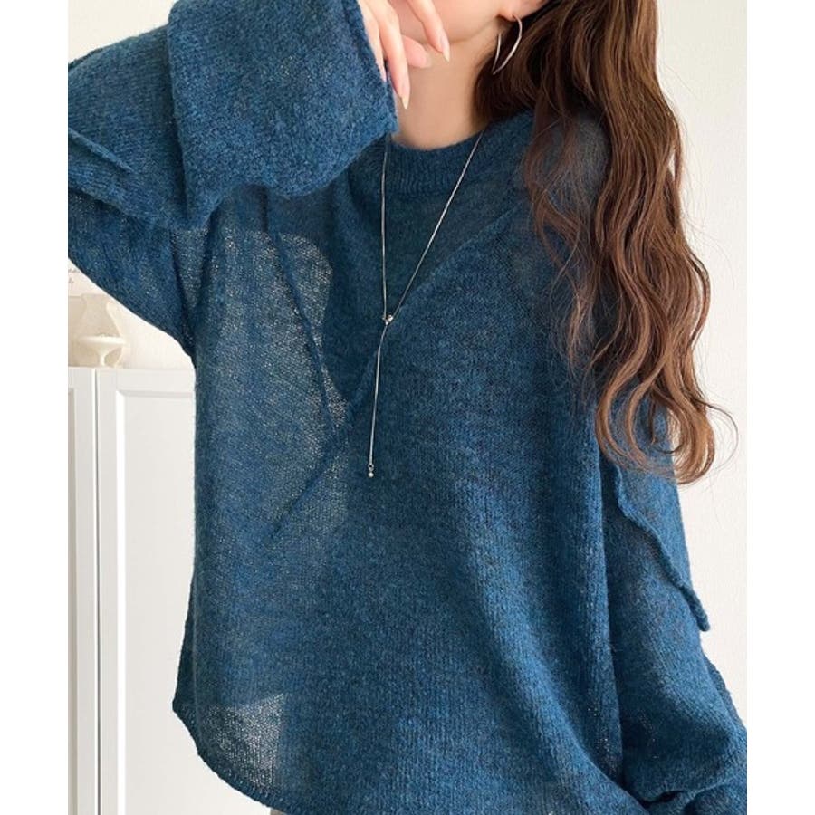 “ゆるっと”が叶える、1秒垢抜け!モヘアタッチシアー変形タック柄ニット(長袖)