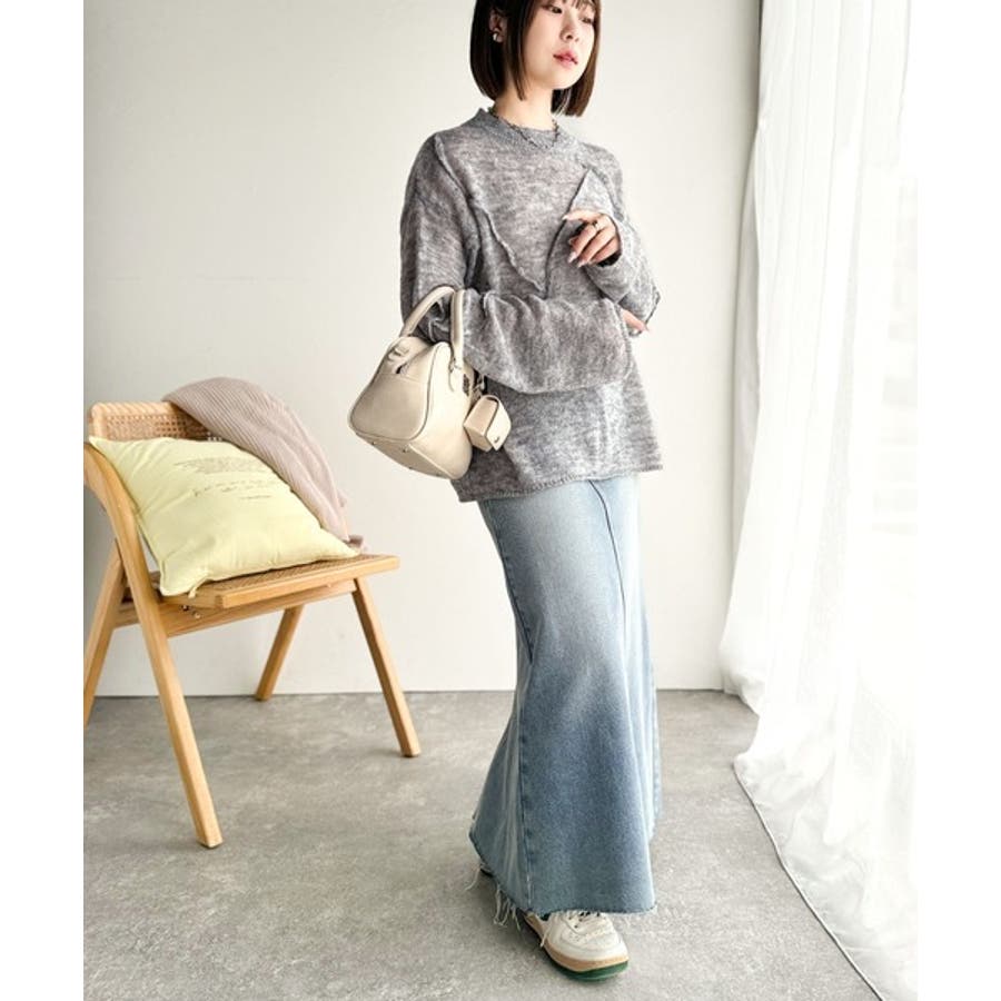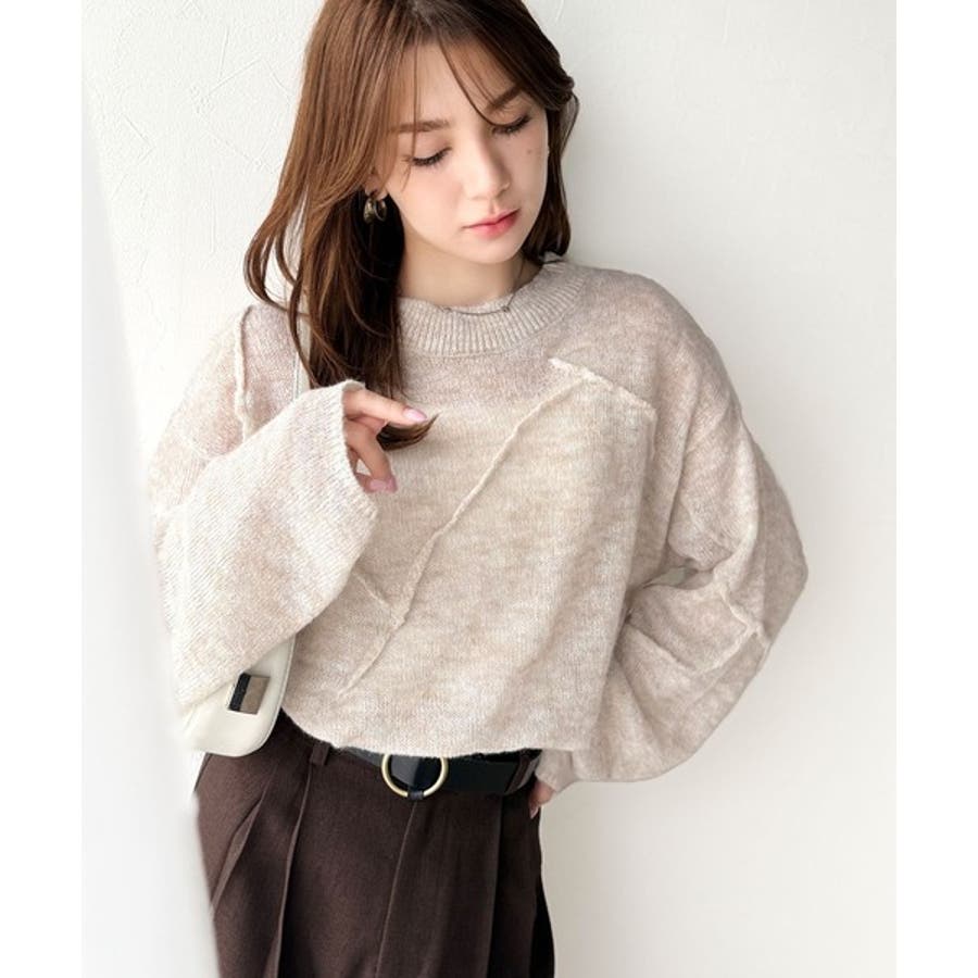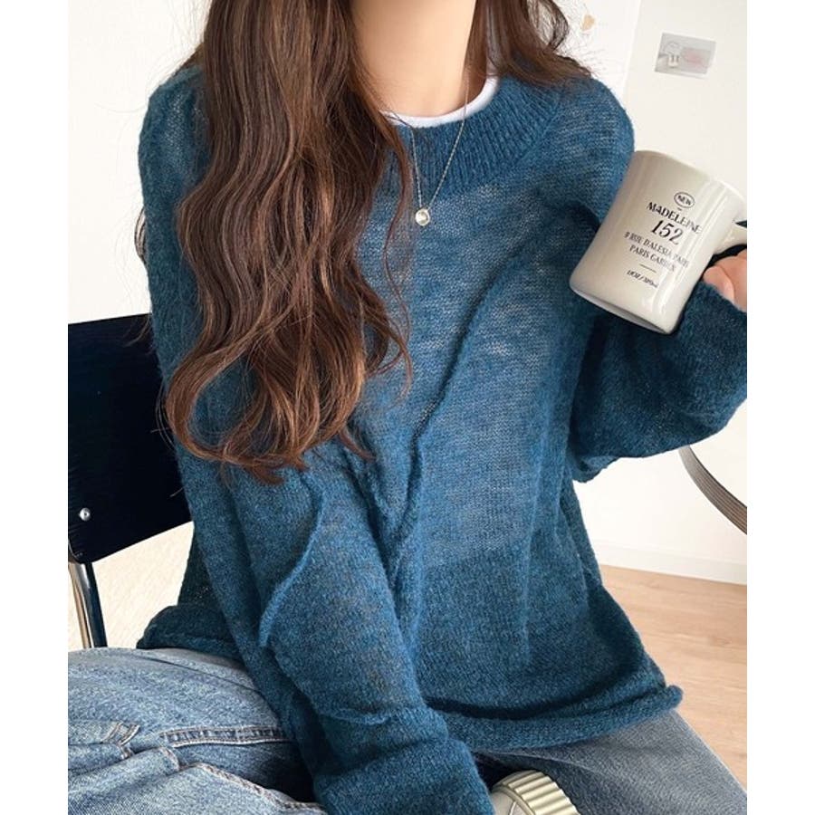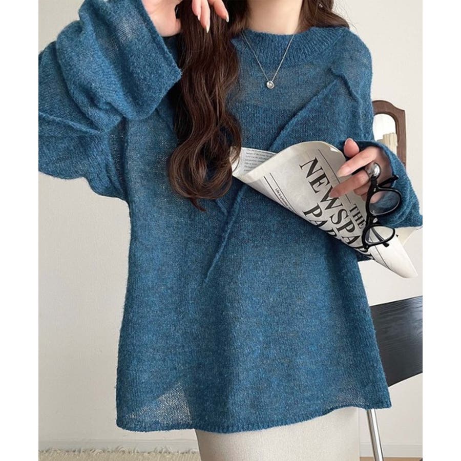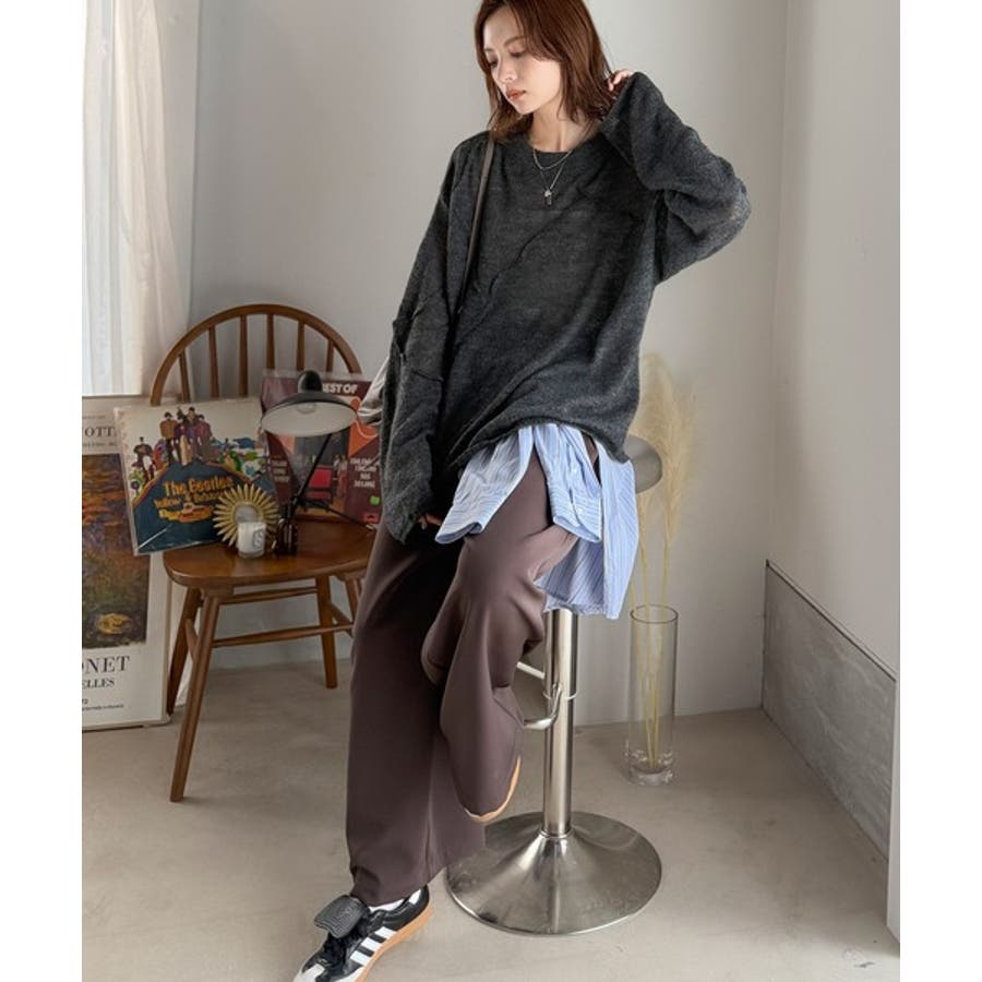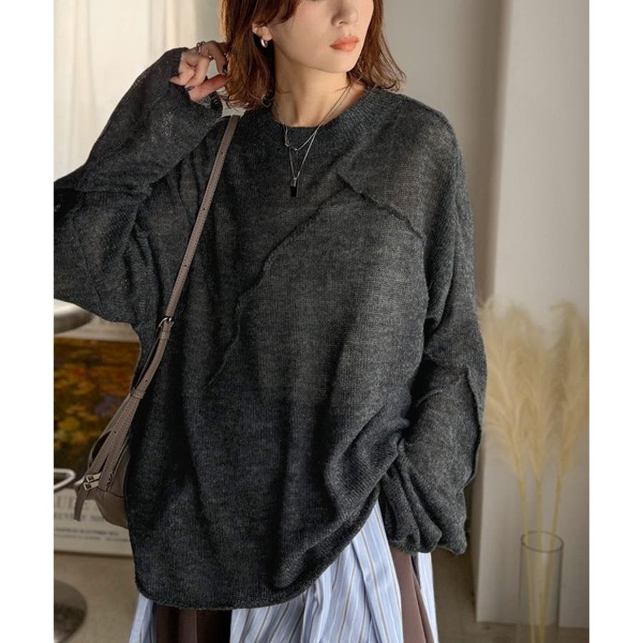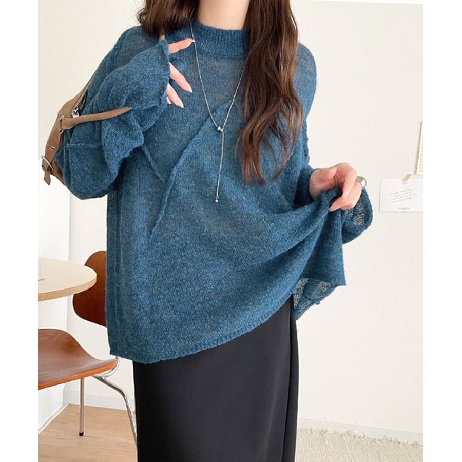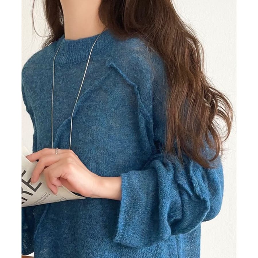 “ゆるっと”が叶える、1秒垢抜け!モヘアタッチシアー変形タック柄ニット(長袖)