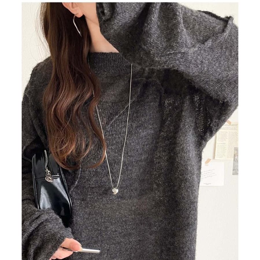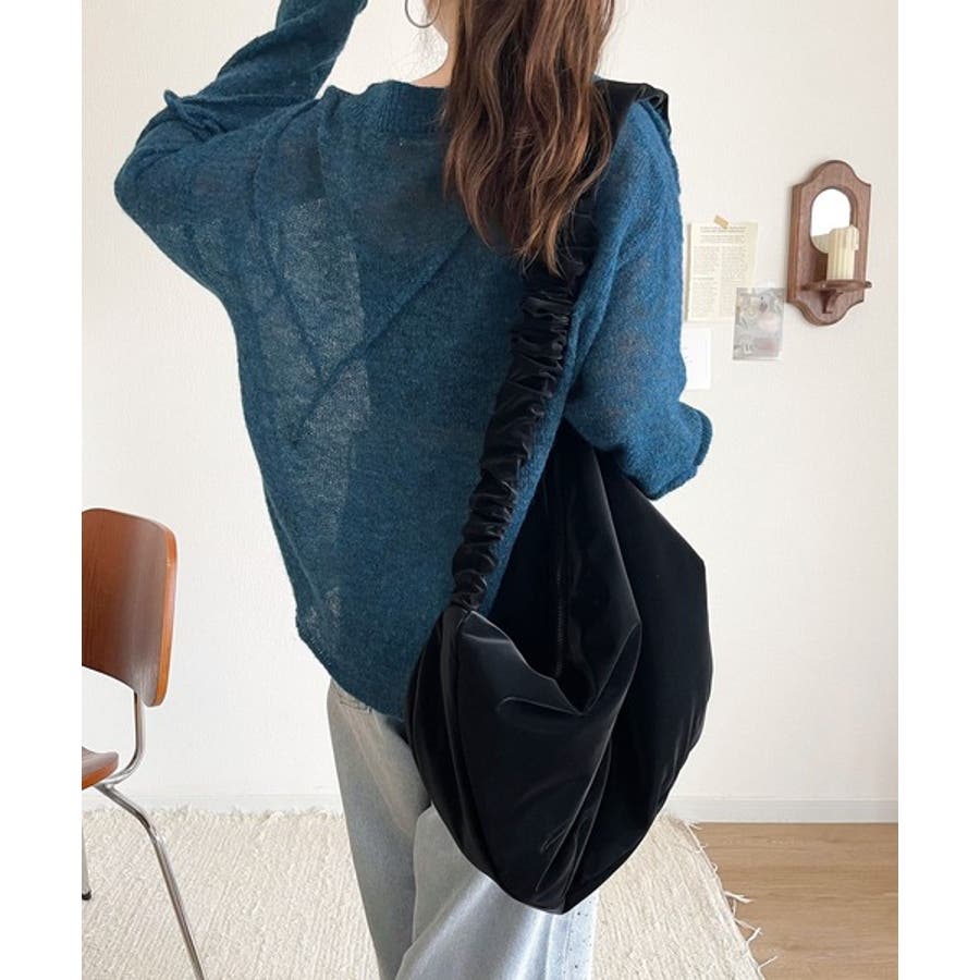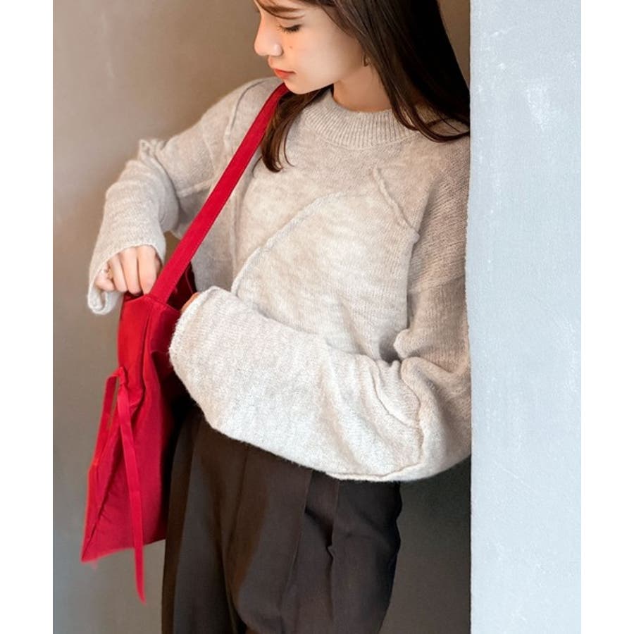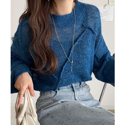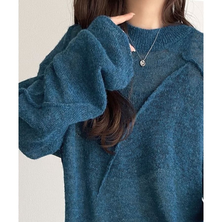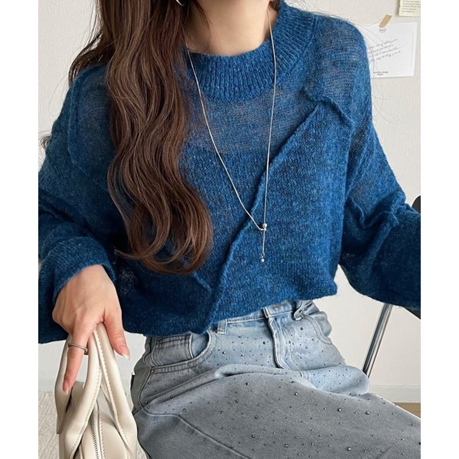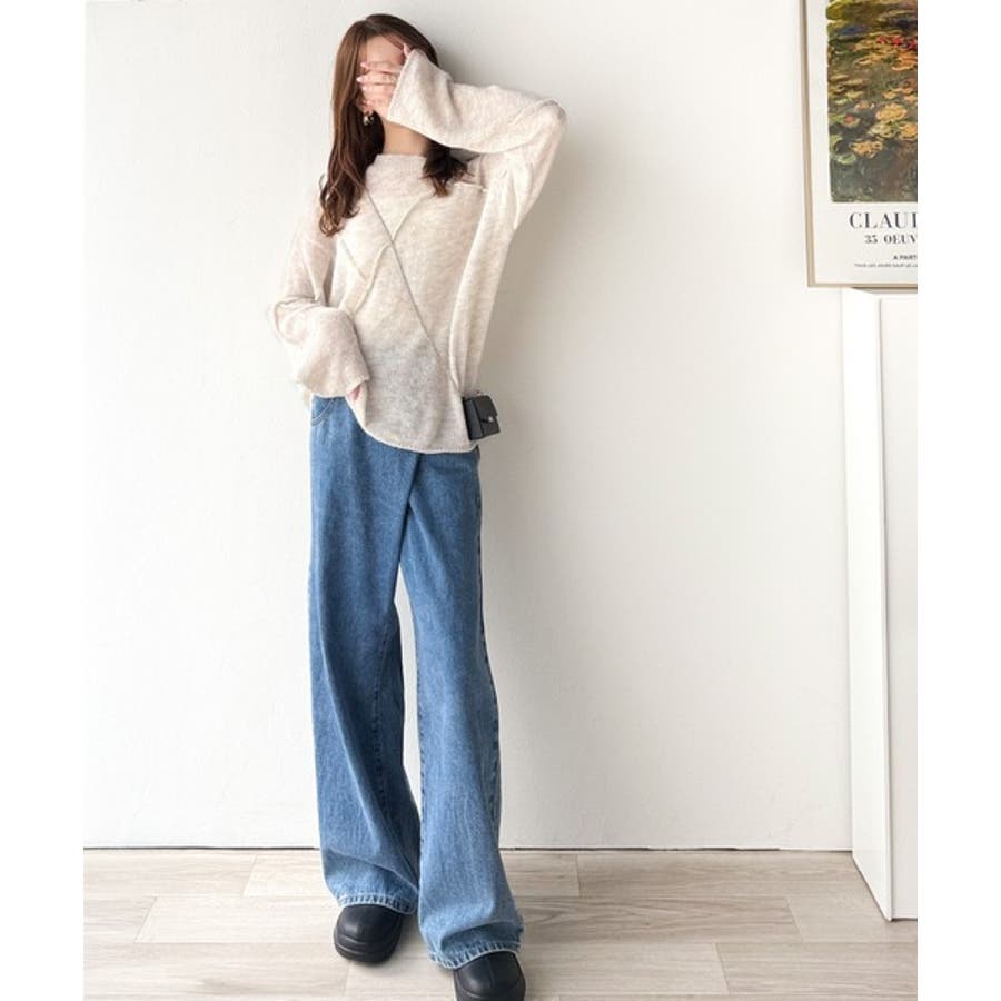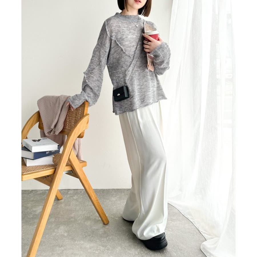 “ゆるっと”が叶える、1秒垢抜け!モヘアタッチシアー変形タック柄ニット(長袖)