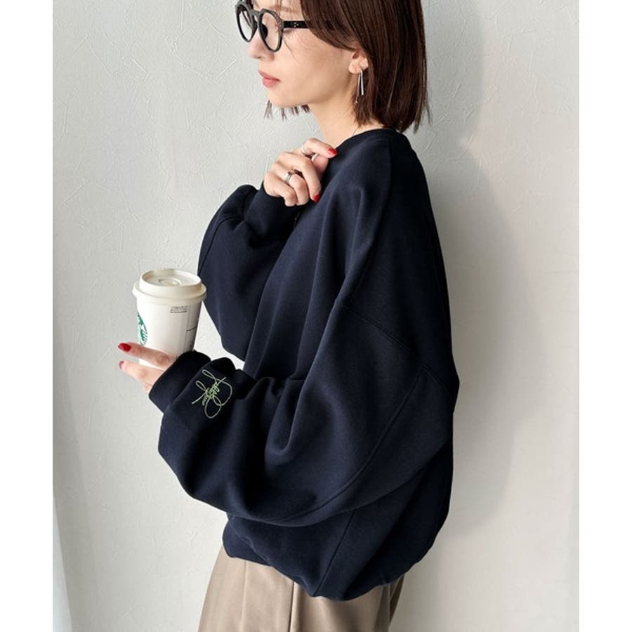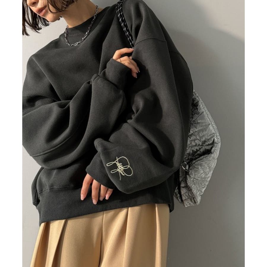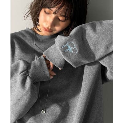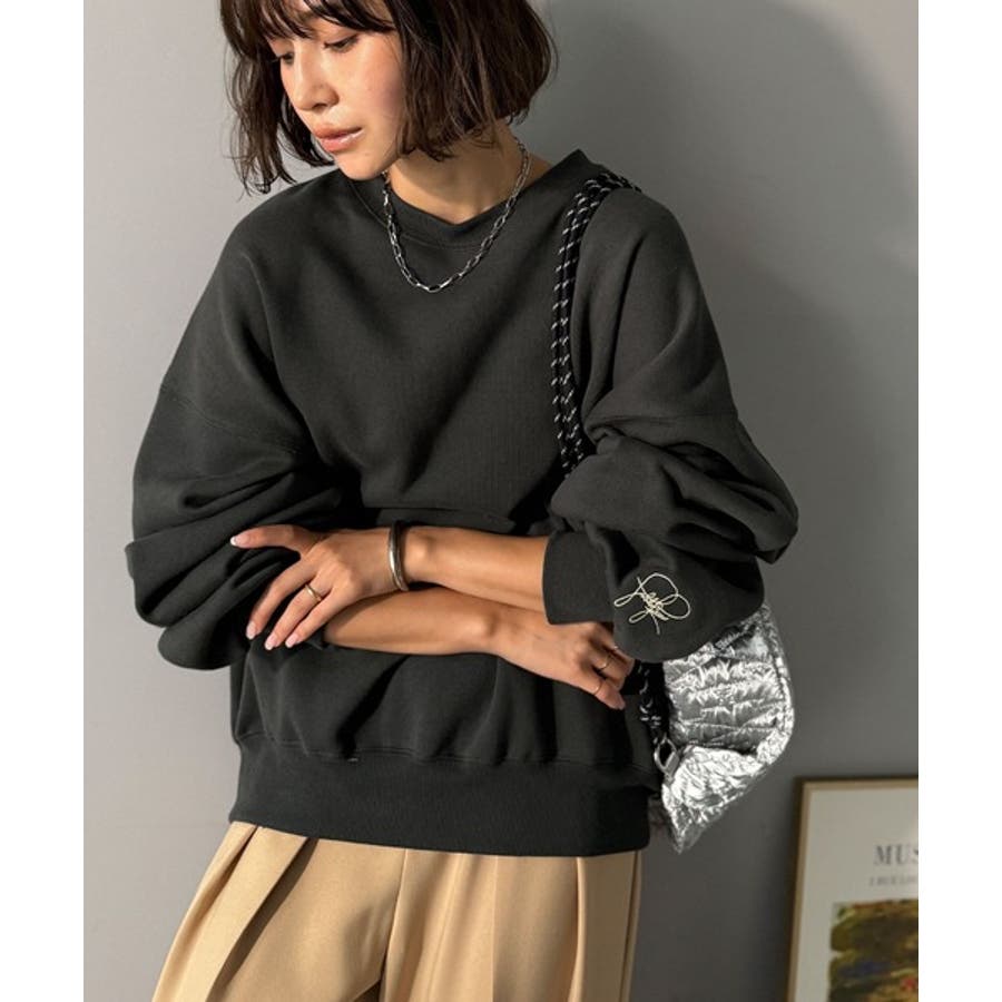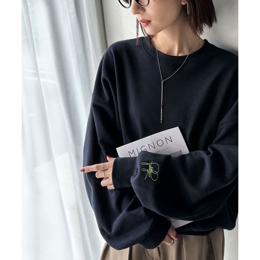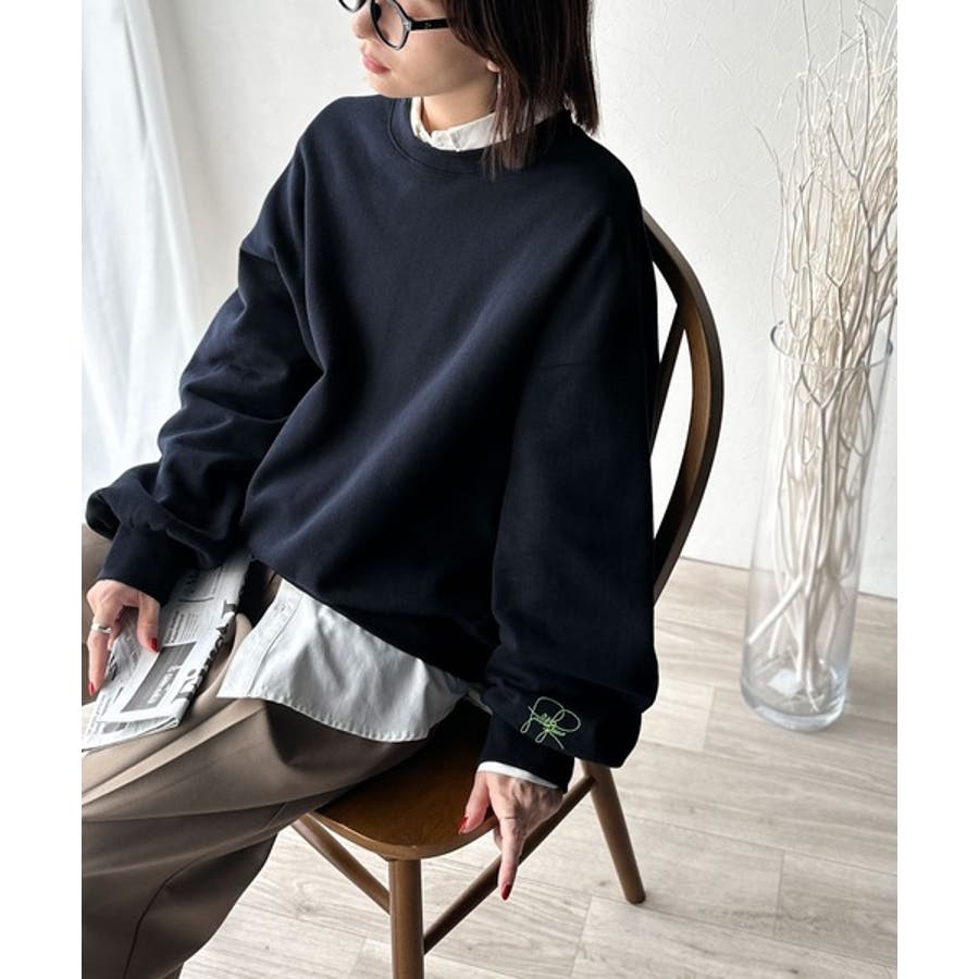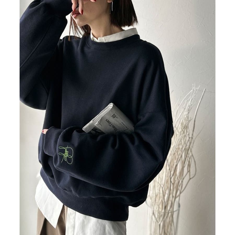 袖先のさりげない刺繍がアクセント。サインロゴ刺繍裏起毛スウェット