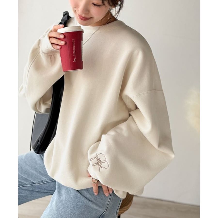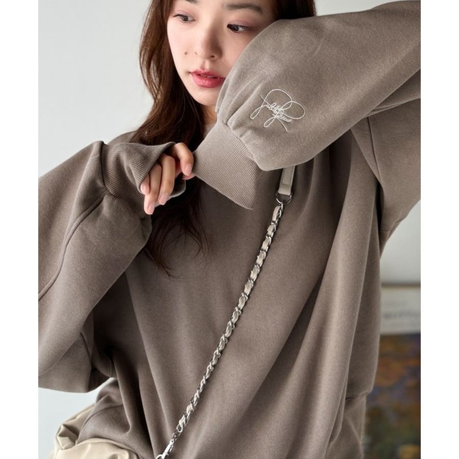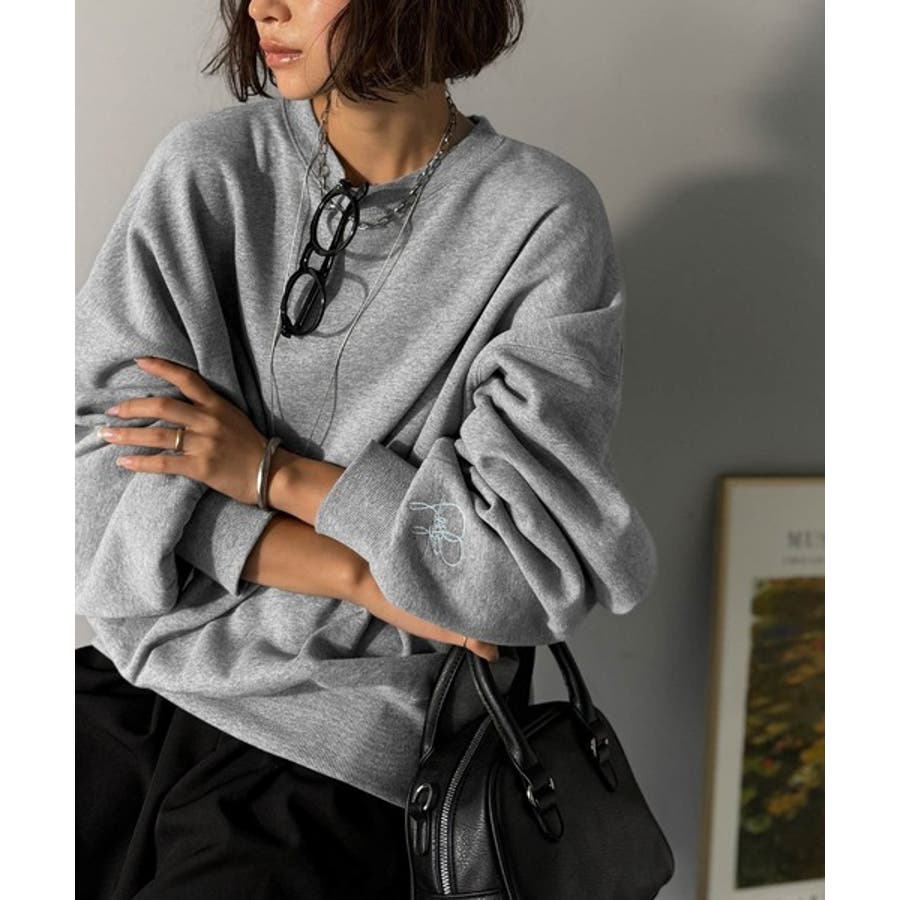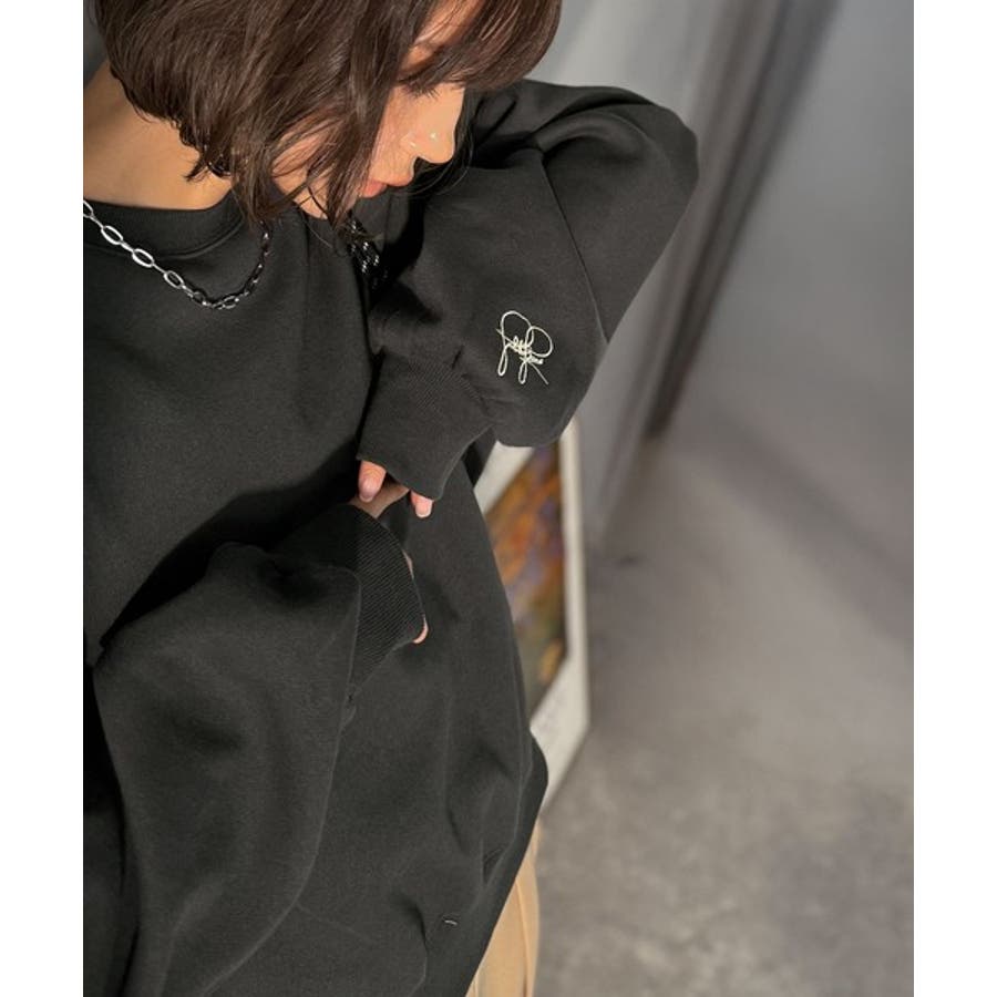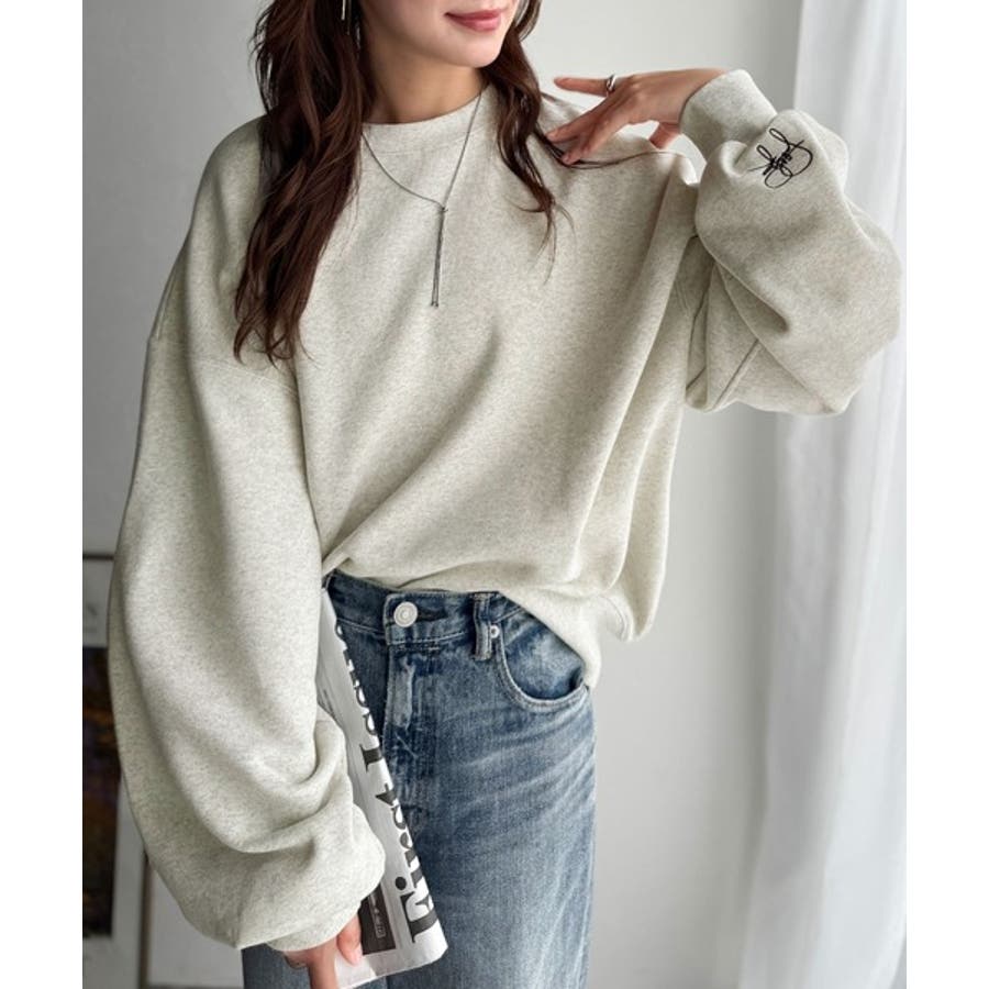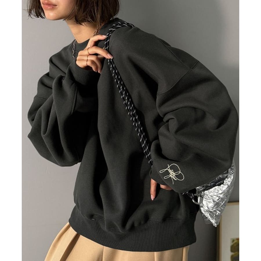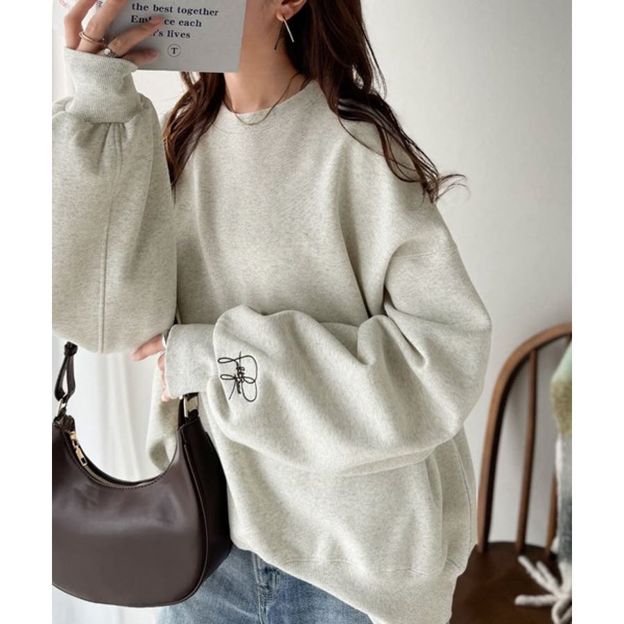 袖先のさりげない刺繍がアクセント。サインロゴ刺繍裏起毛スウェット