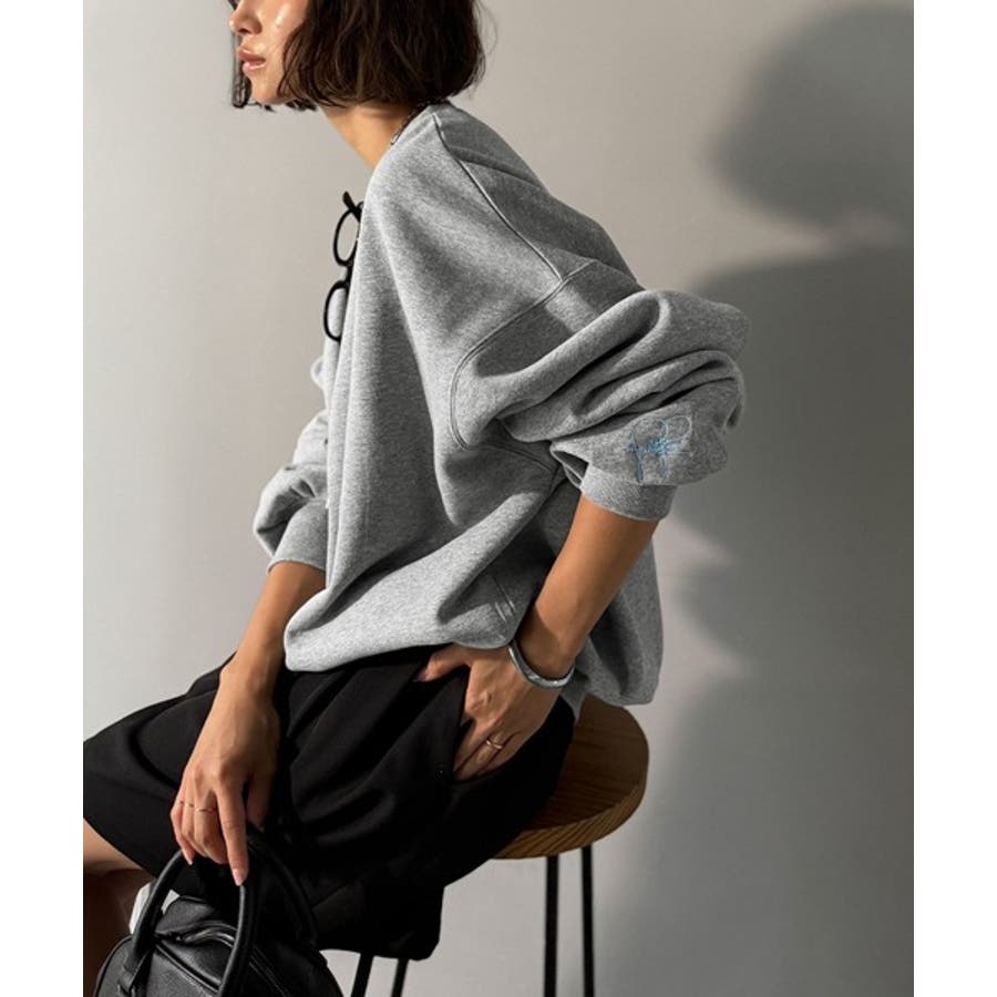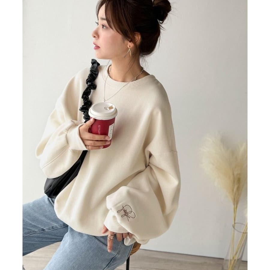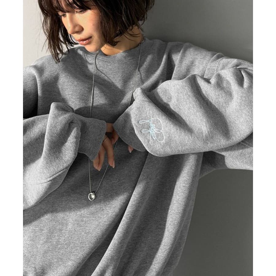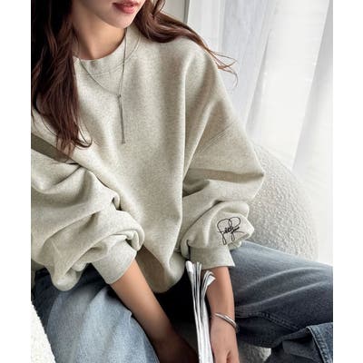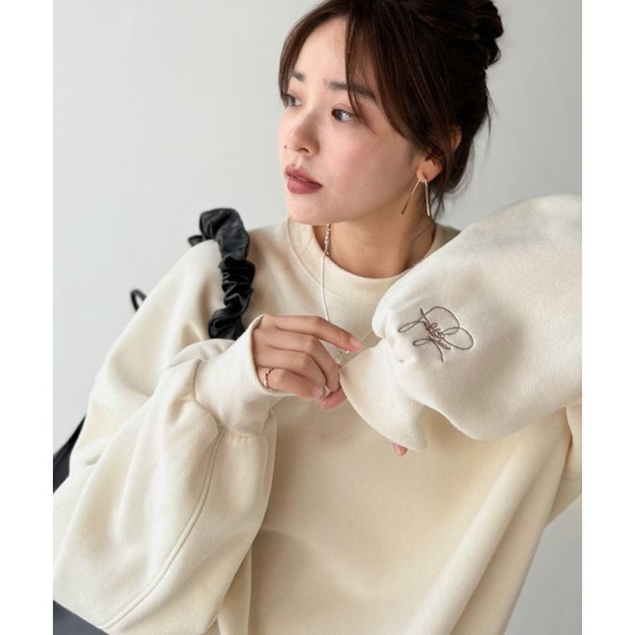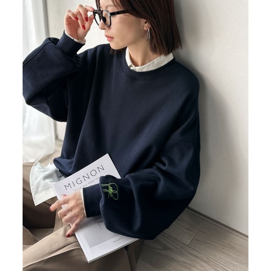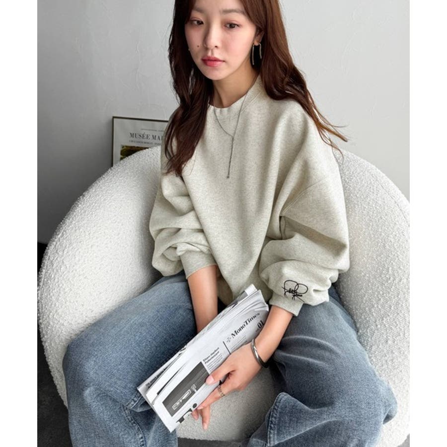 袖先のさりげない刺繍がアクセント。サインロゴ刺繍裏起毛スウェット