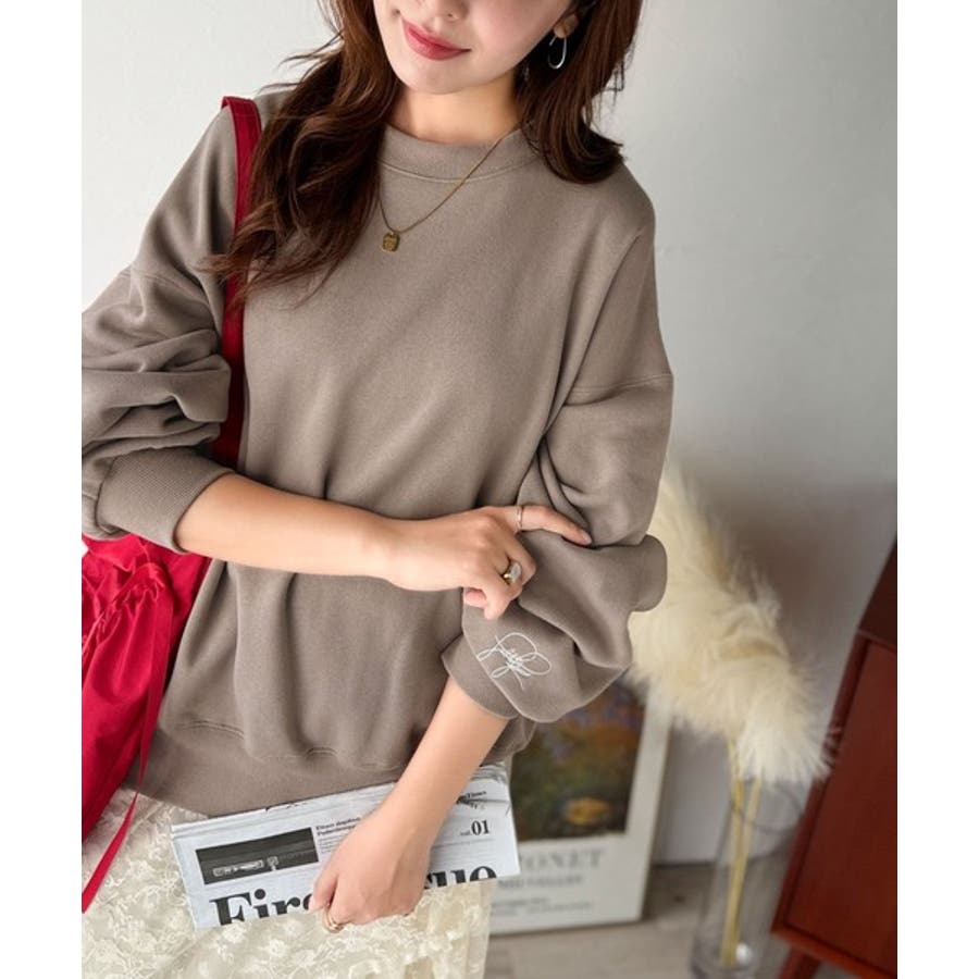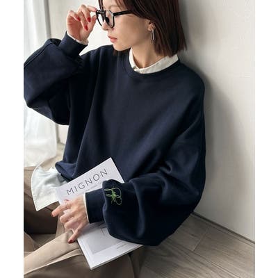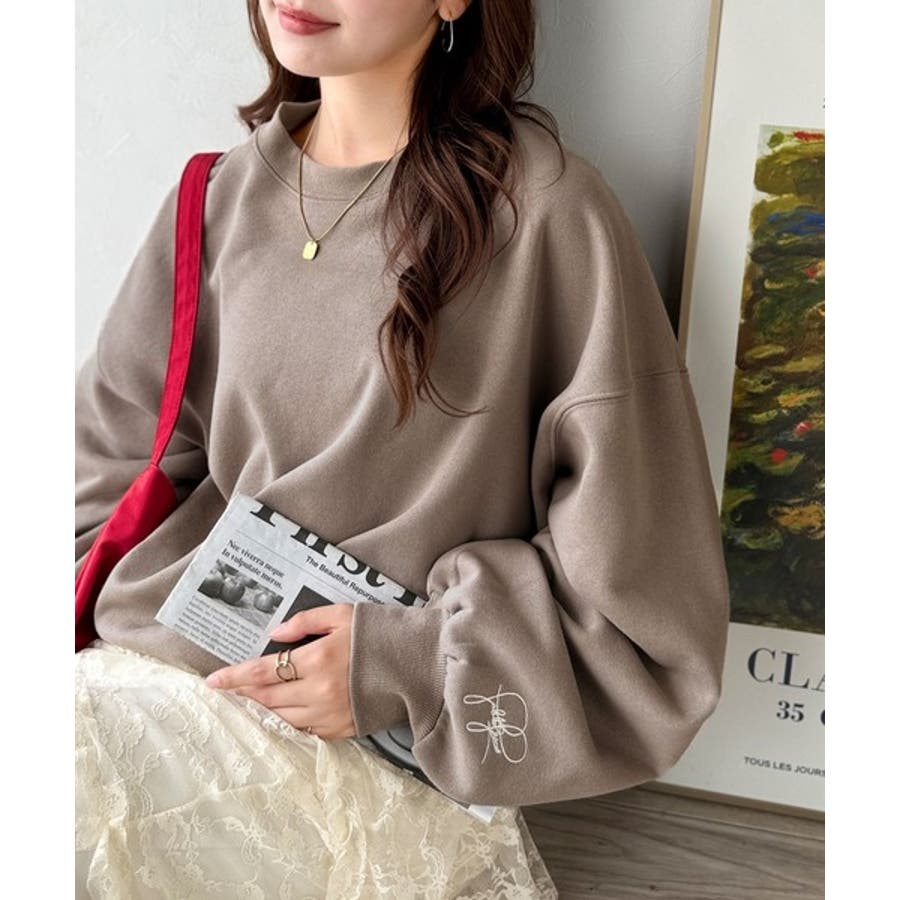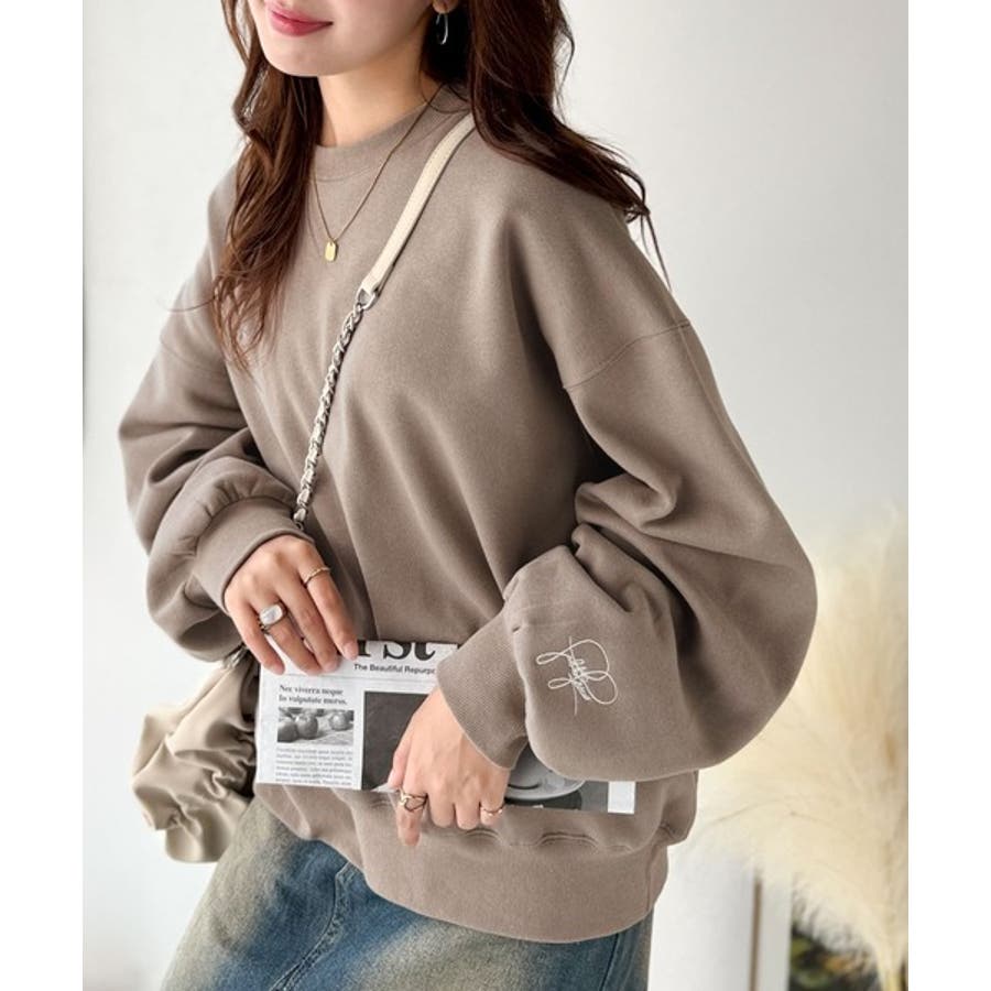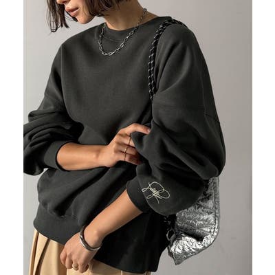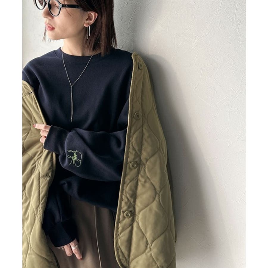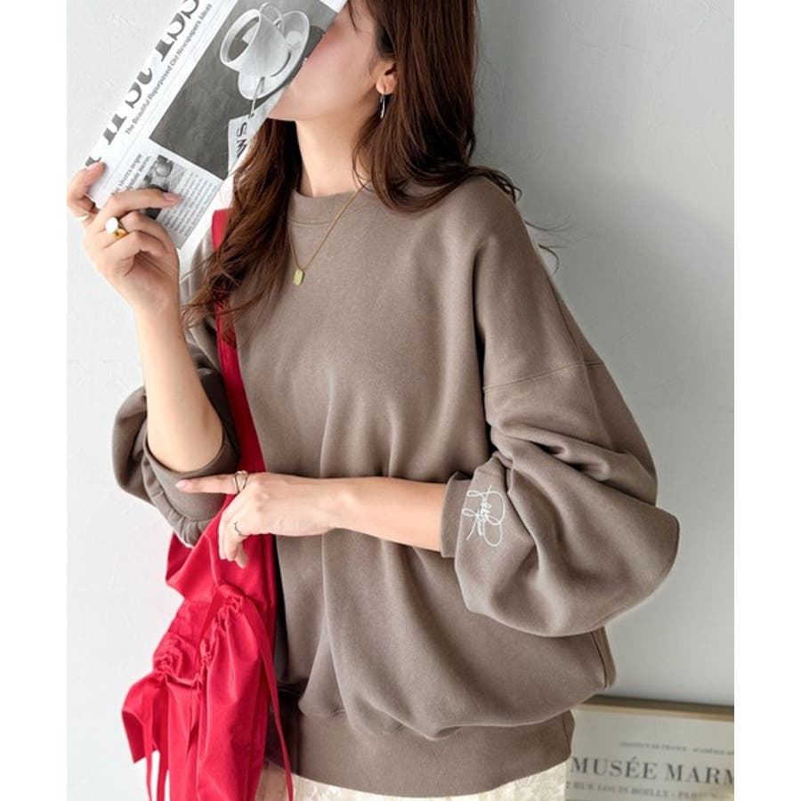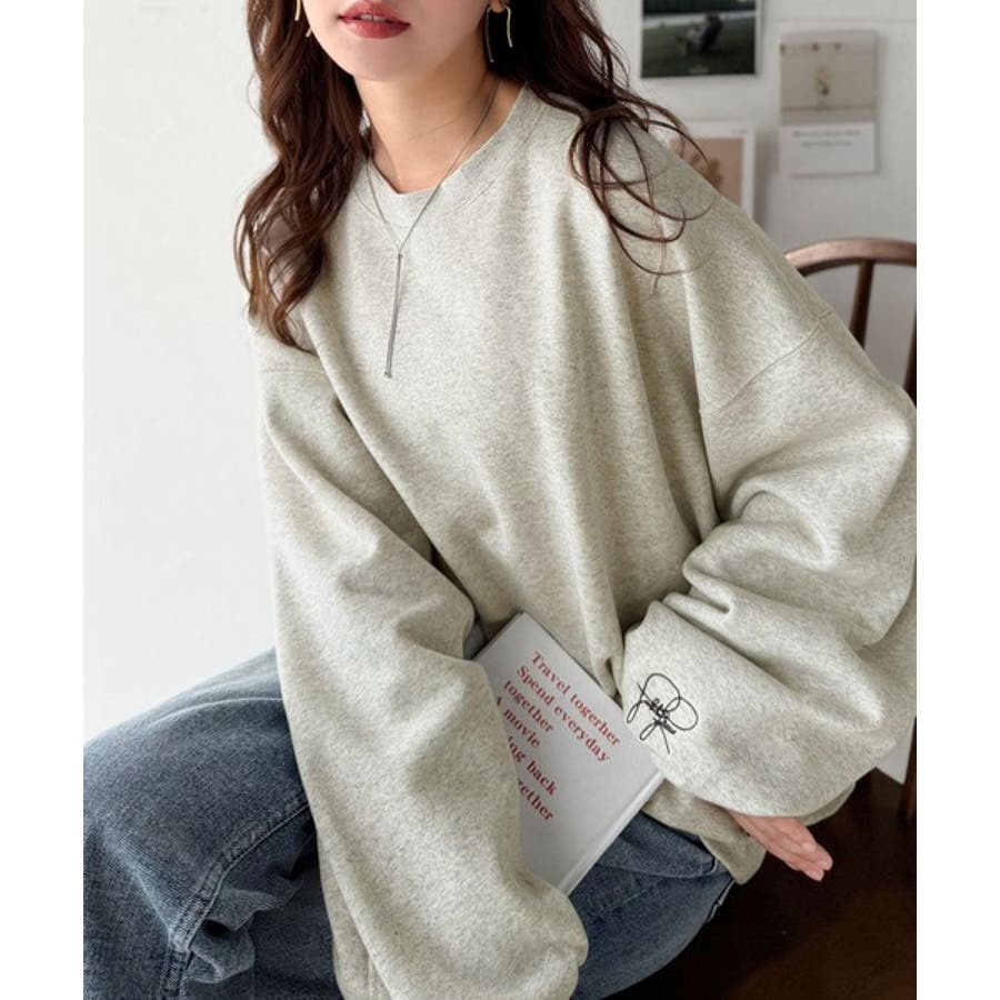 袖先のさりげない刺繍がアクセント。サインロゴ刺繍裏起毛スウェット