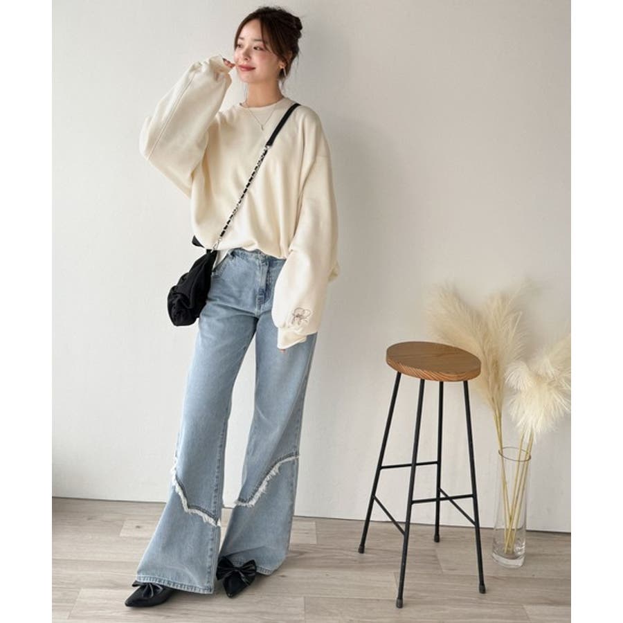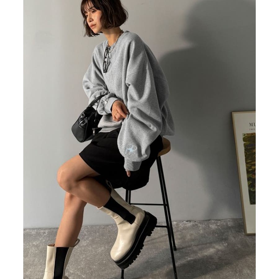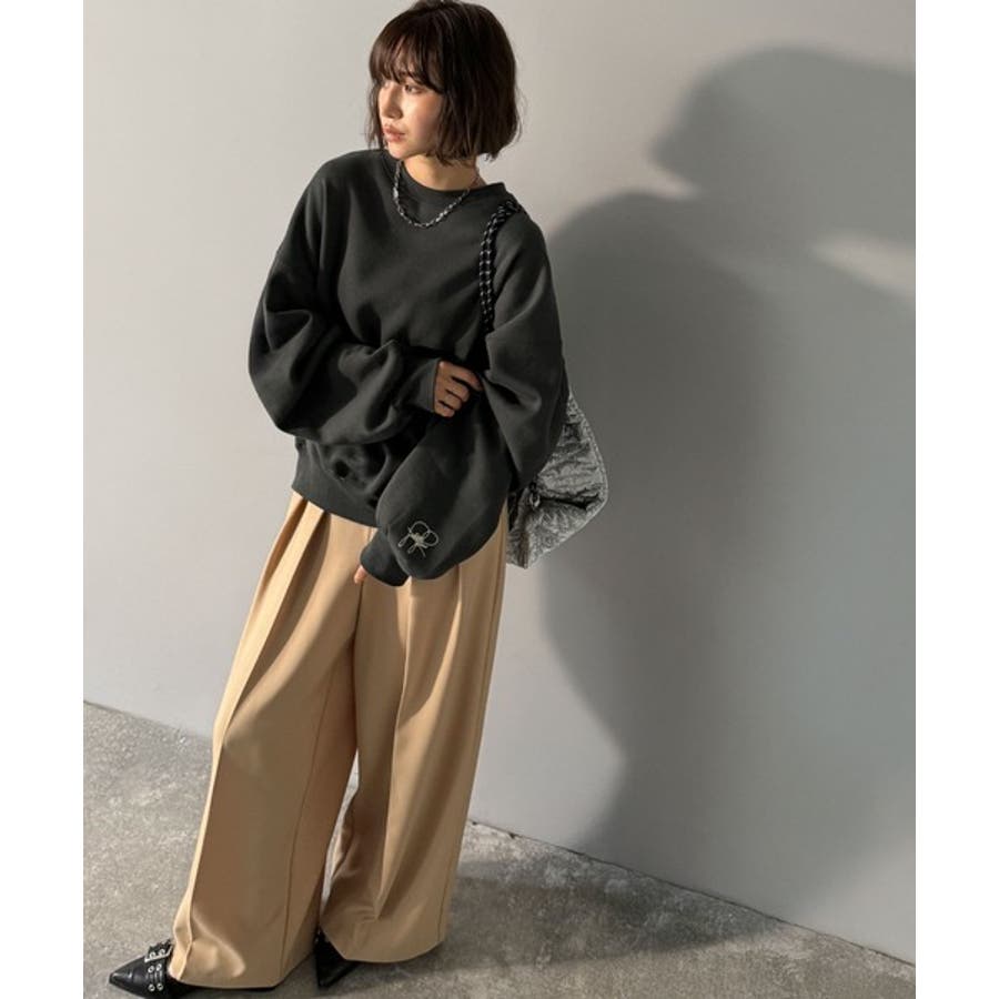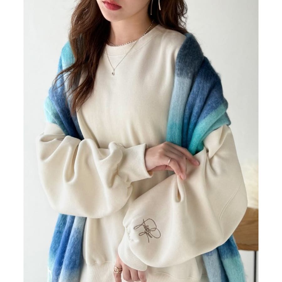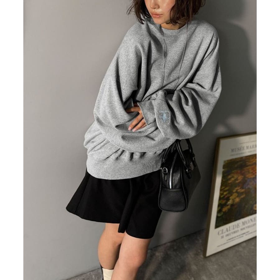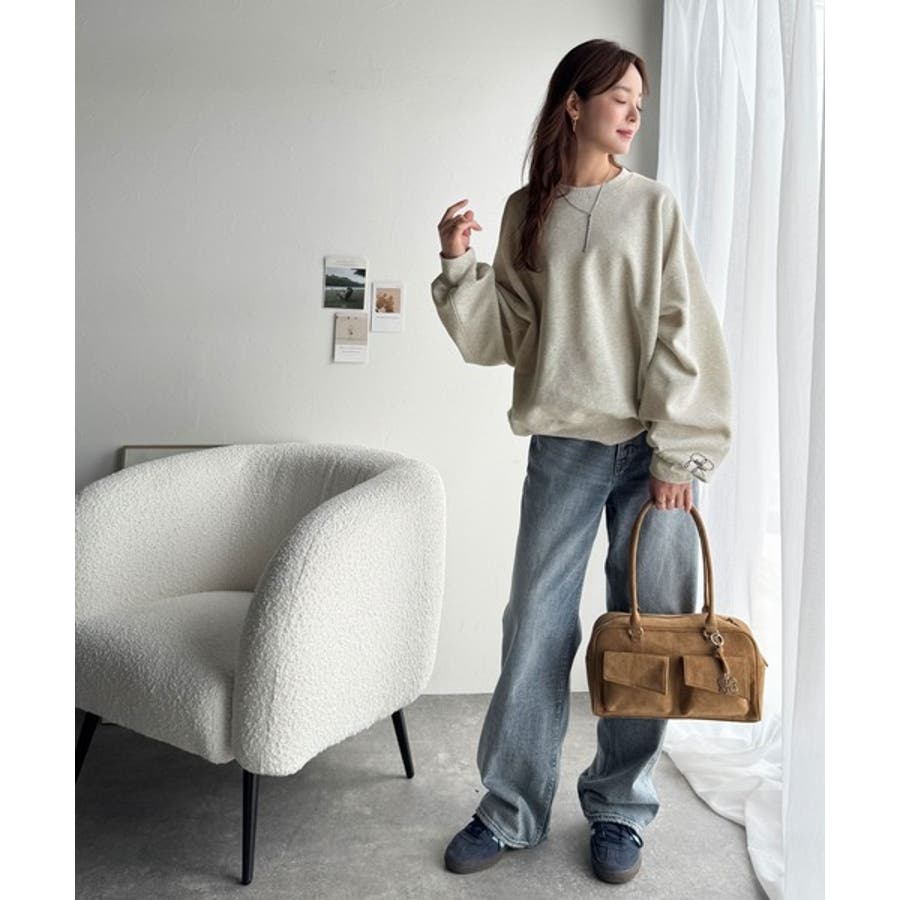 袖先のさりげない刺繍がアクセント。サインロゴ刺繍裏起毛スウェット