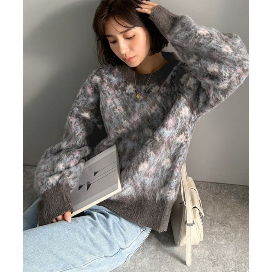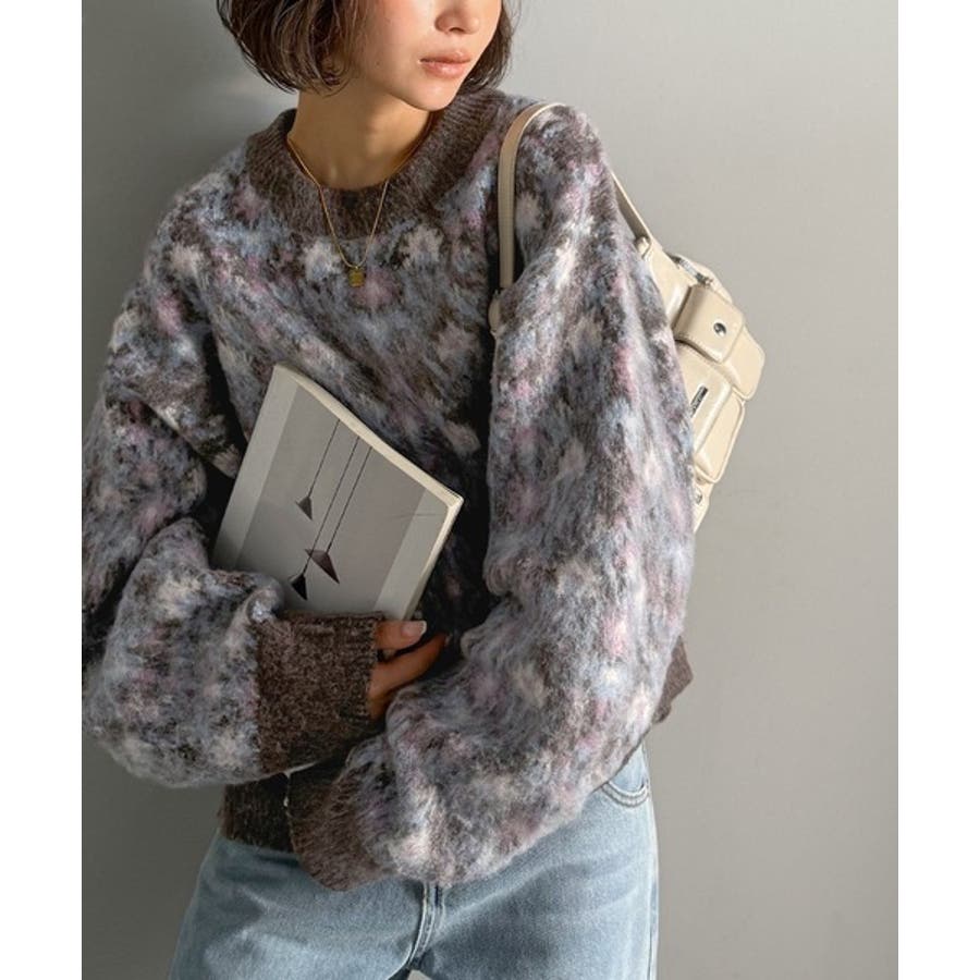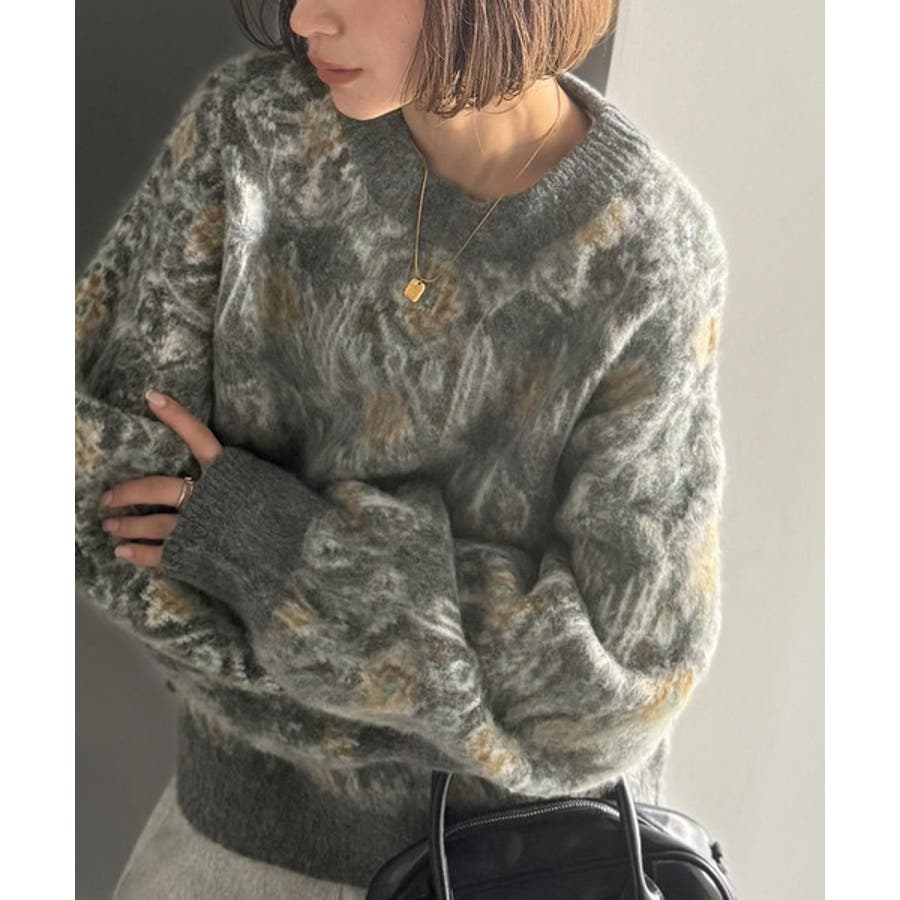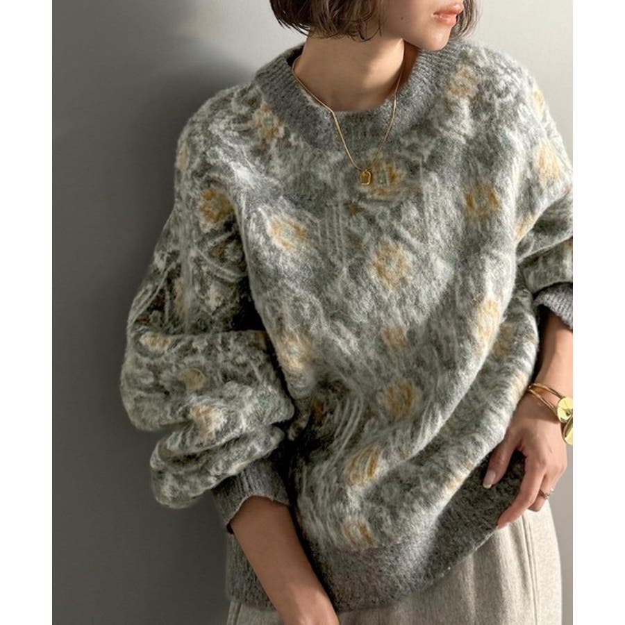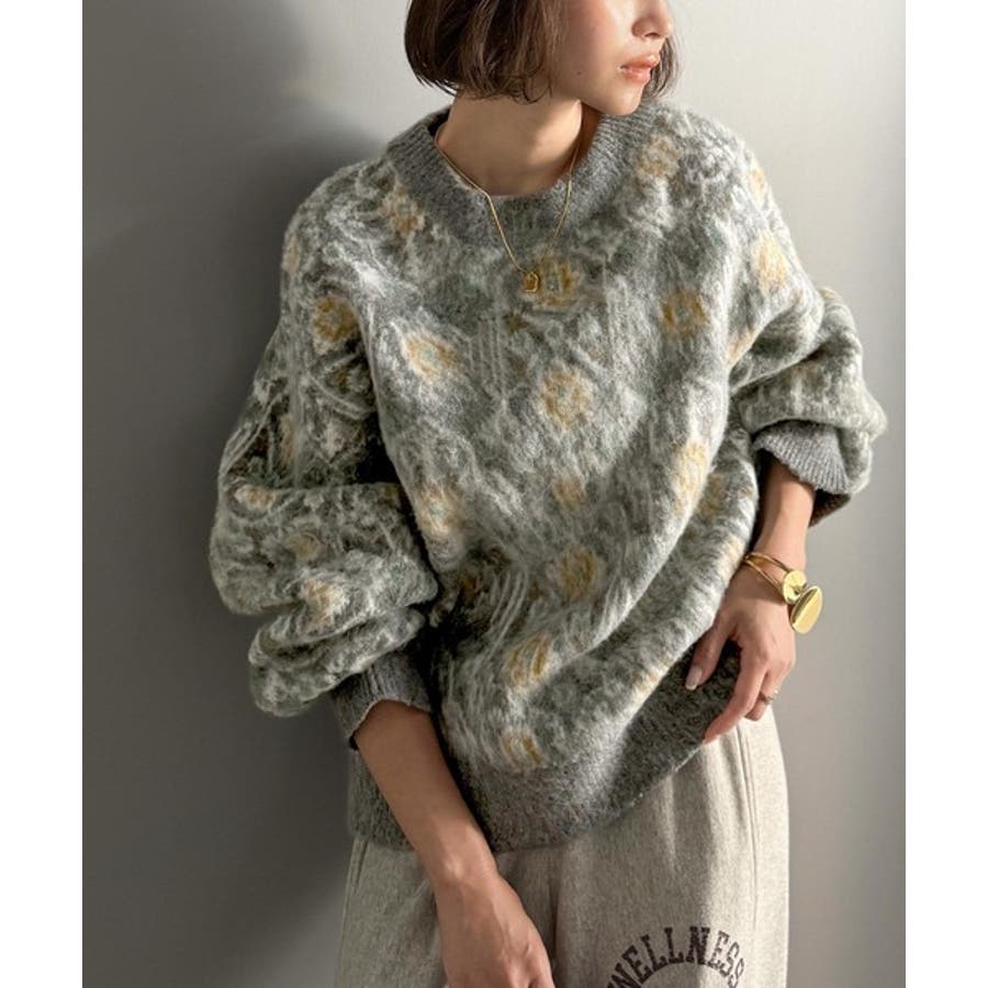 アンティーク調のラグ模様をモチーフにした、存在感抜群のニットプルオーバー。