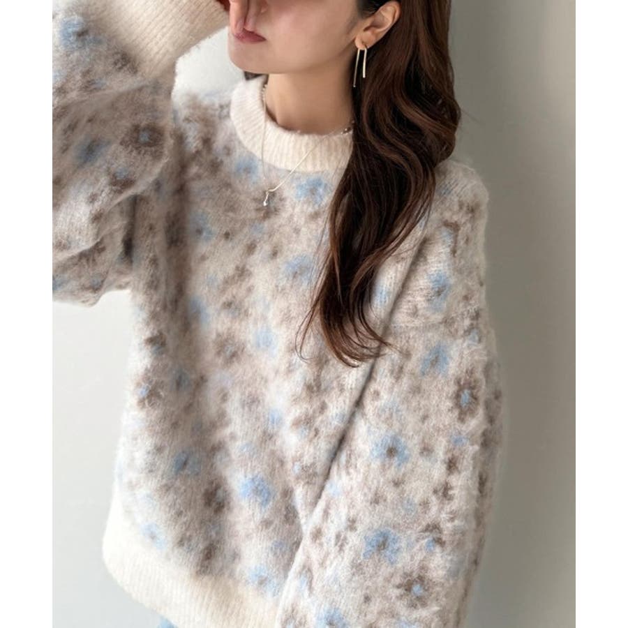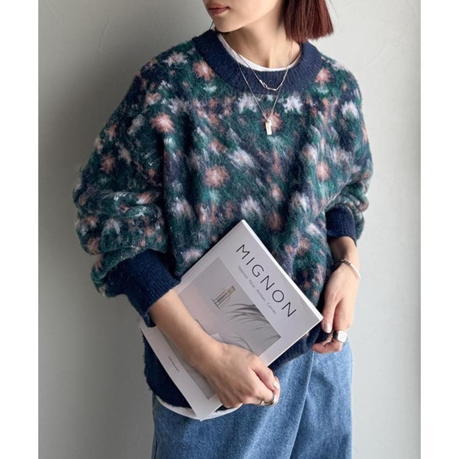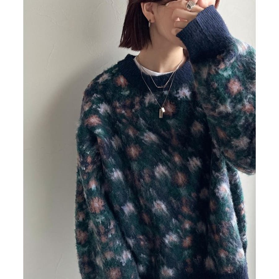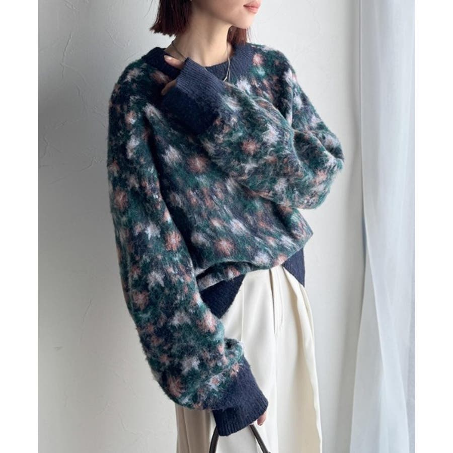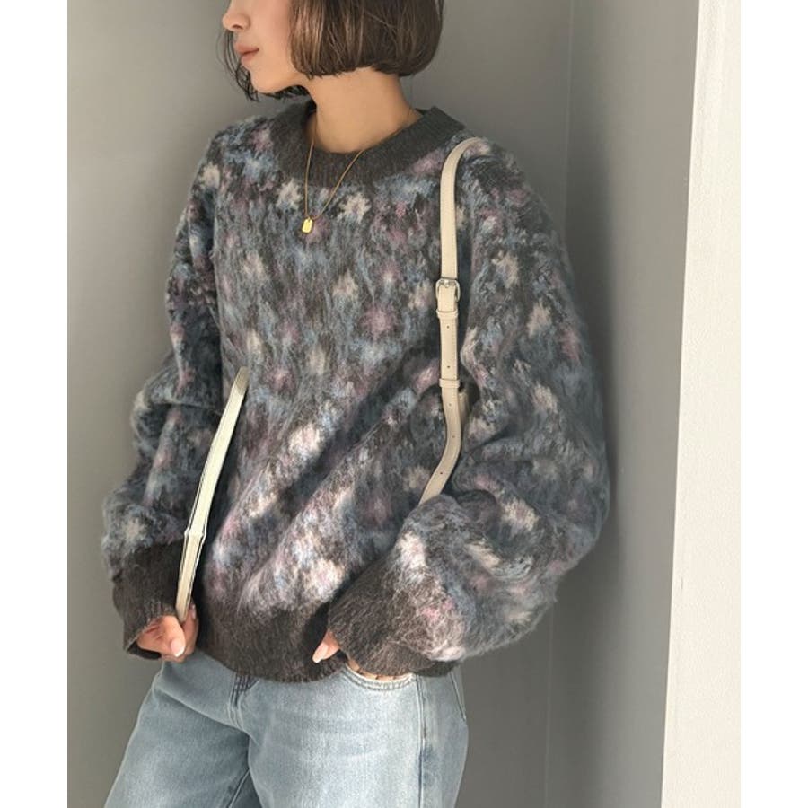 アンティーク調のラグ模様をモチーフにした、存在感抜群のニットプルオーバー。