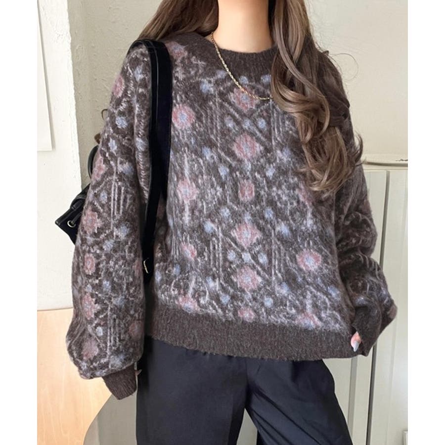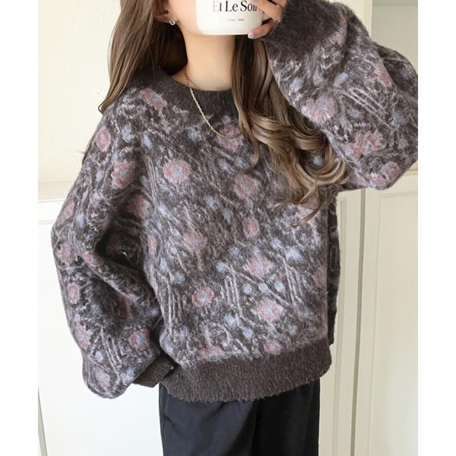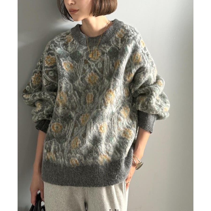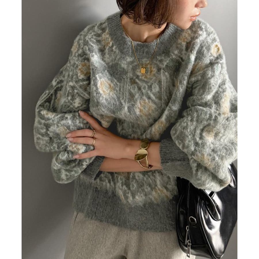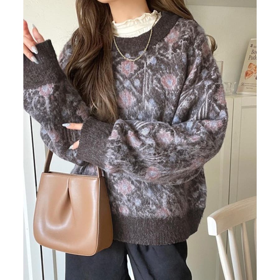 ヴィンテージライクなデザインで上級見え◎アンティークラグモチーフ柄ニットPO