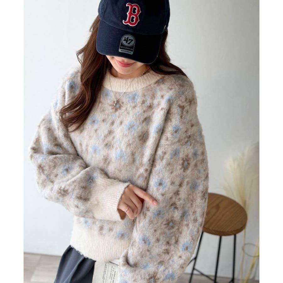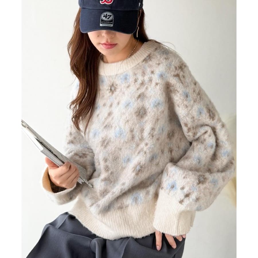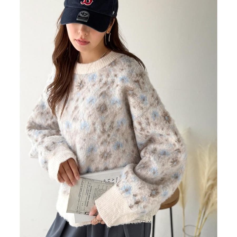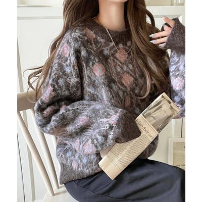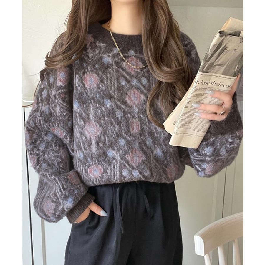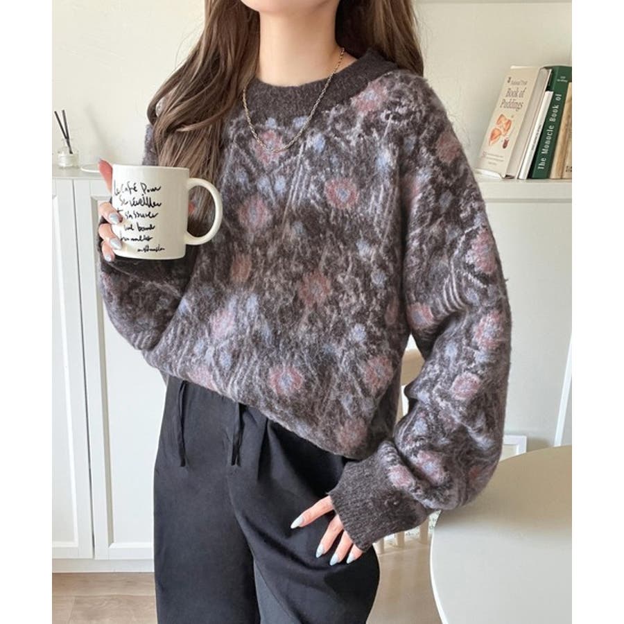 ヴィンテージライクなデザインで上級見え◎アンティークラグモチーフ柄ニットPO