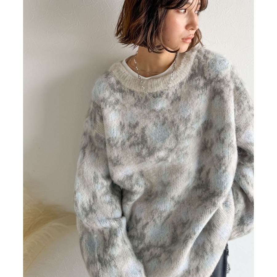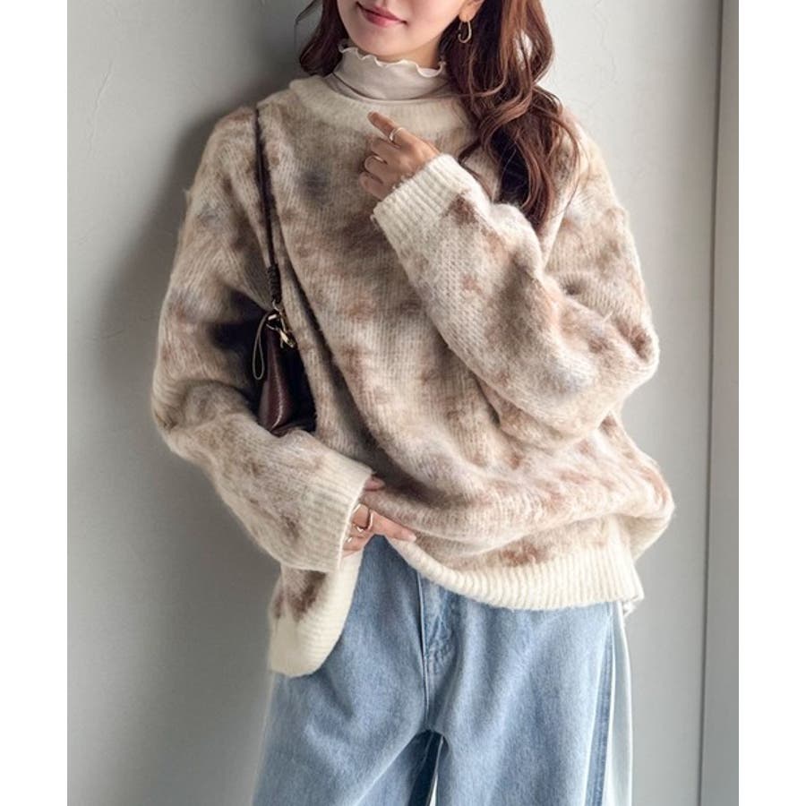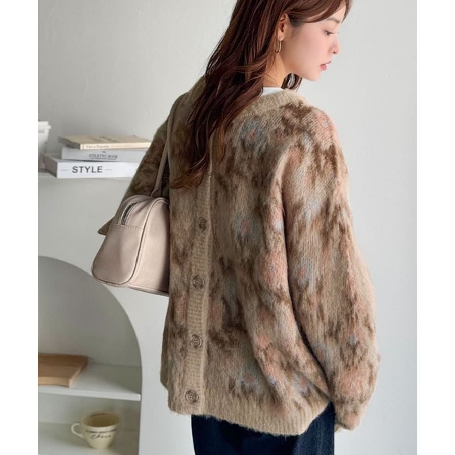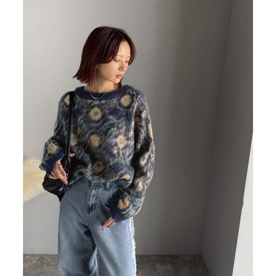 大人可愛いヴィンテージ調。モヘアタッチ前後2wayアンティークラグモチーフ柄ニッ…