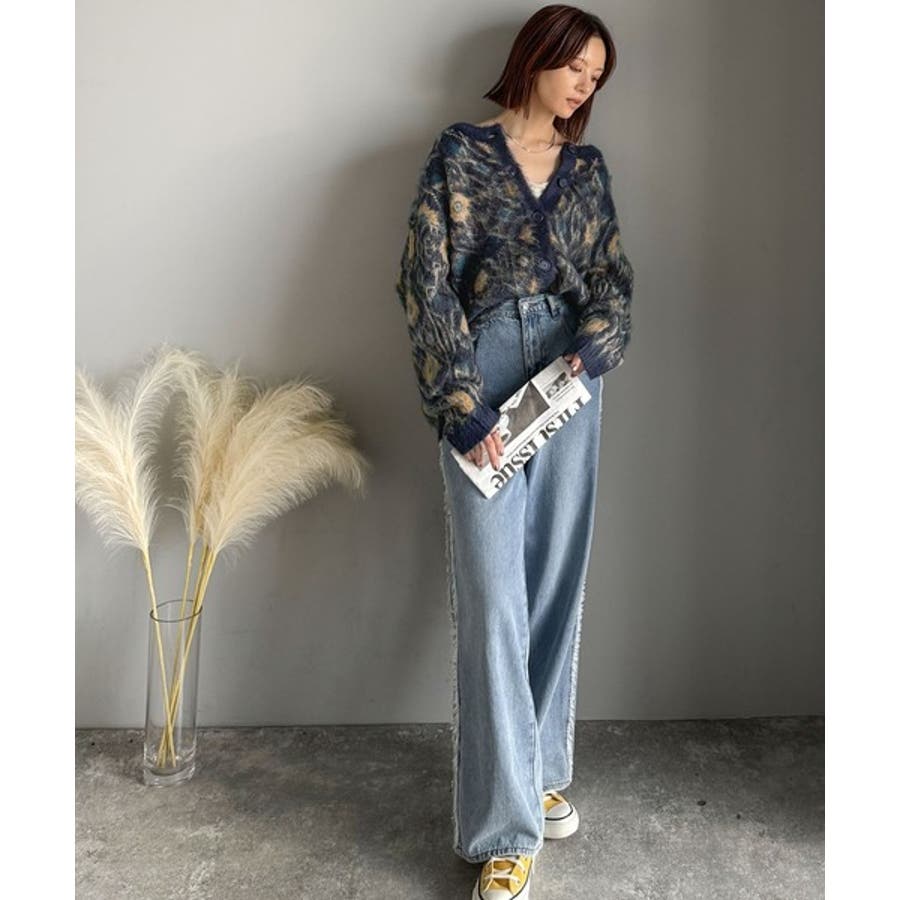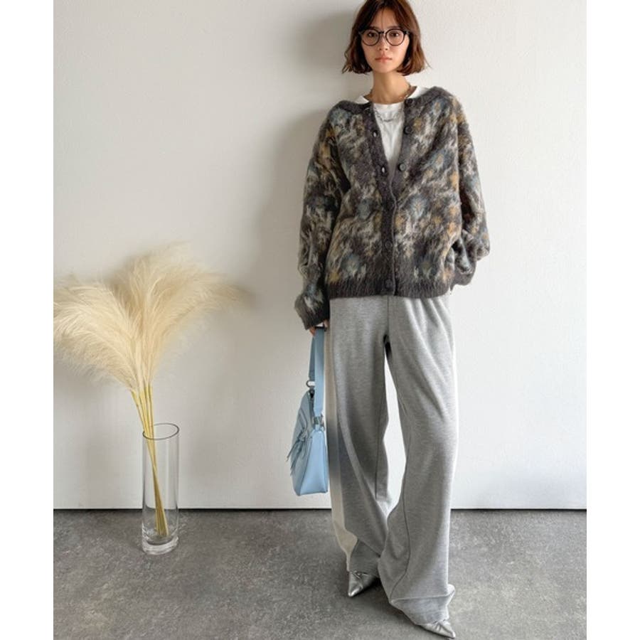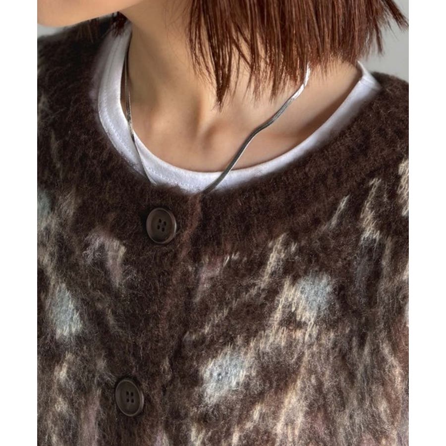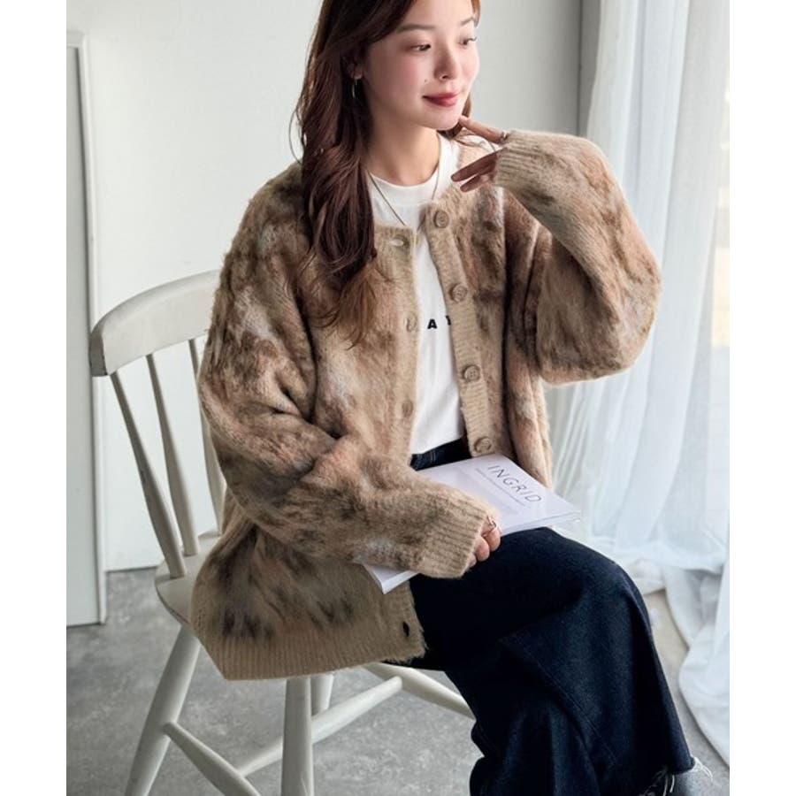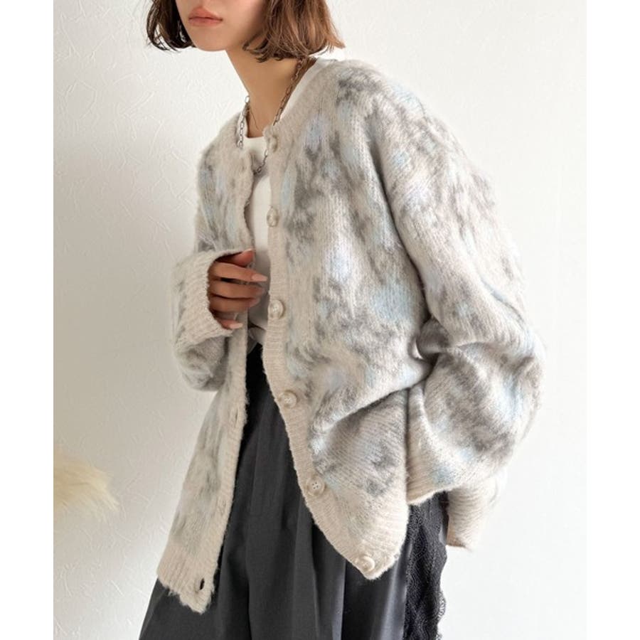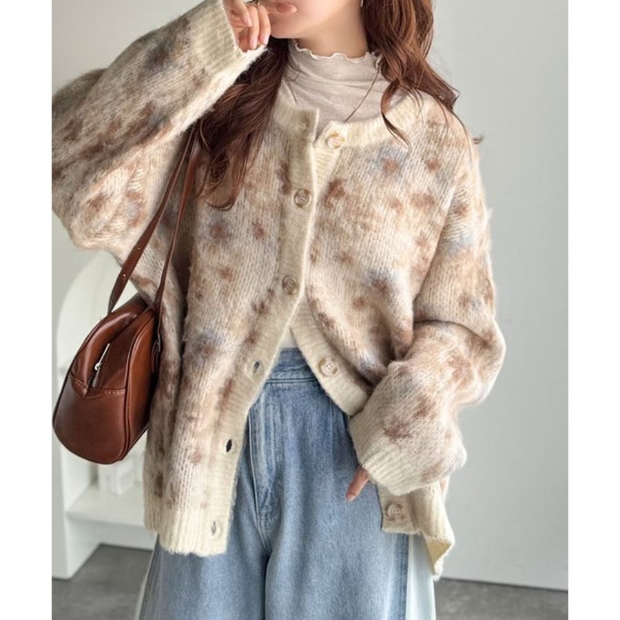 ヴィンテージライクなラグモチーフ柄のニットカーディガン。