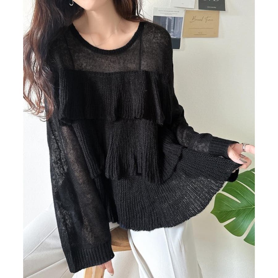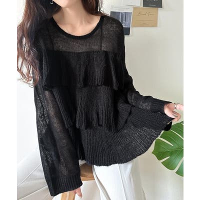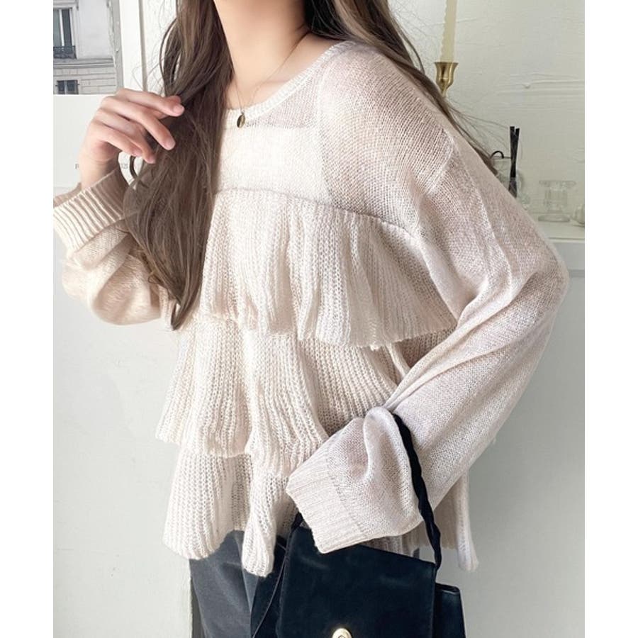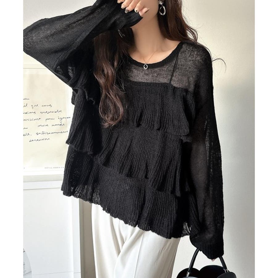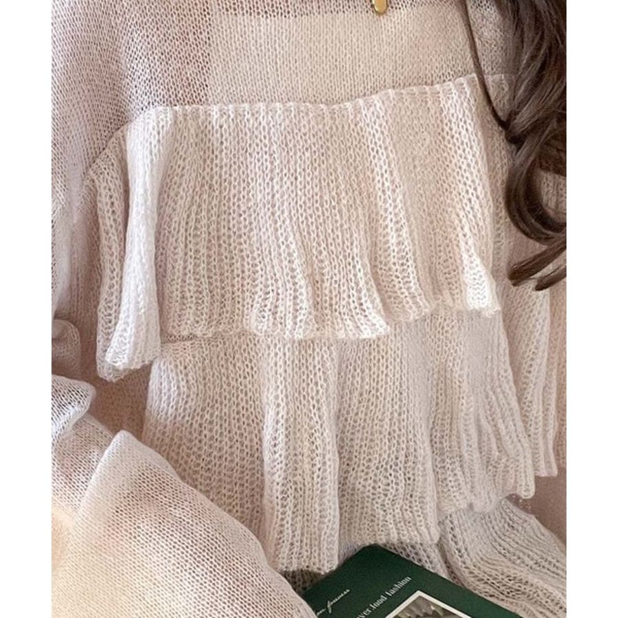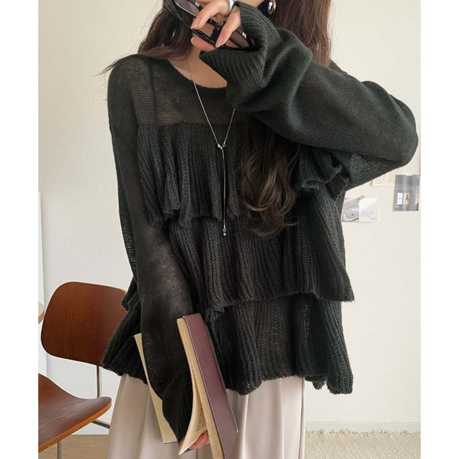 揺れるフリルが目を惹くティアードデザインのメッシュニットです。