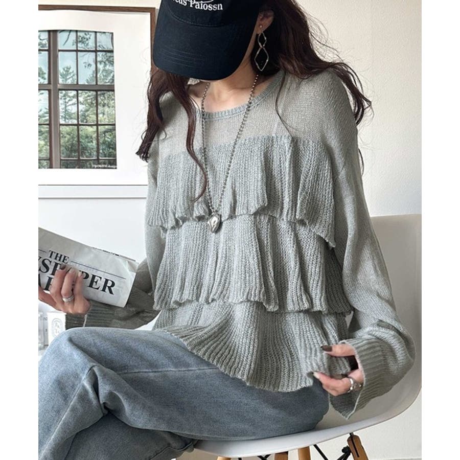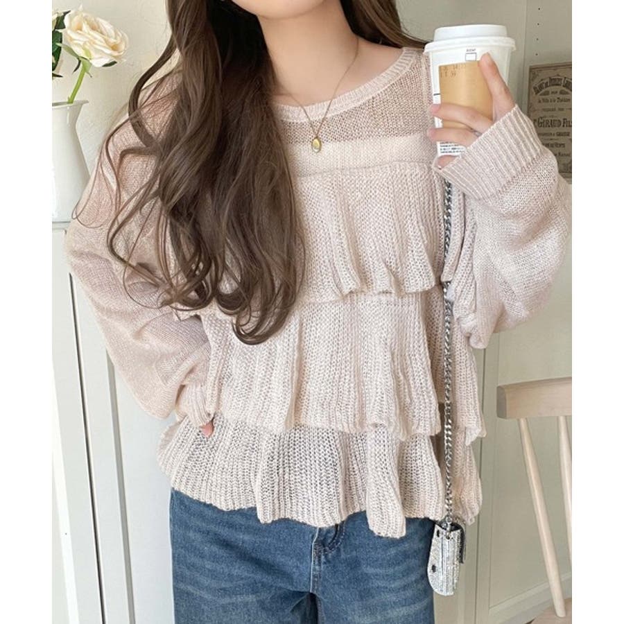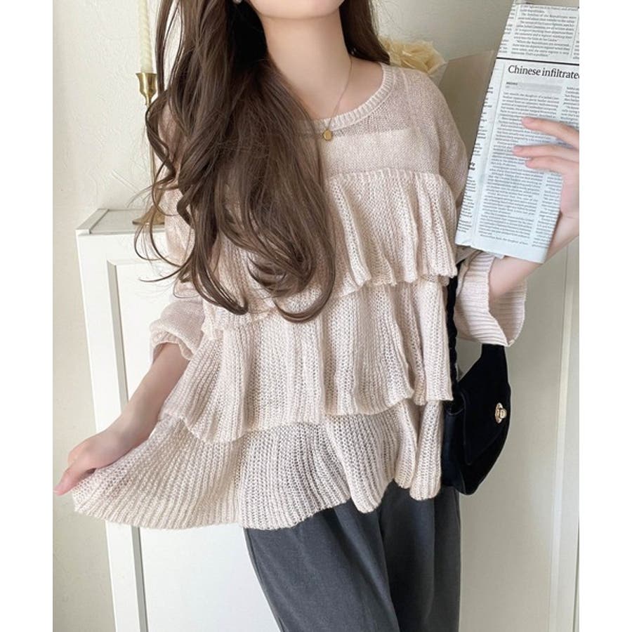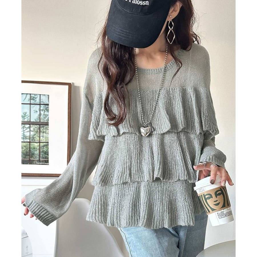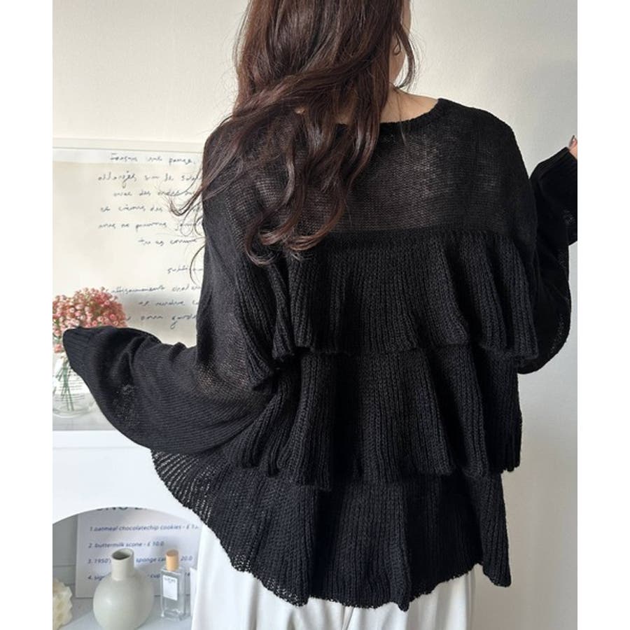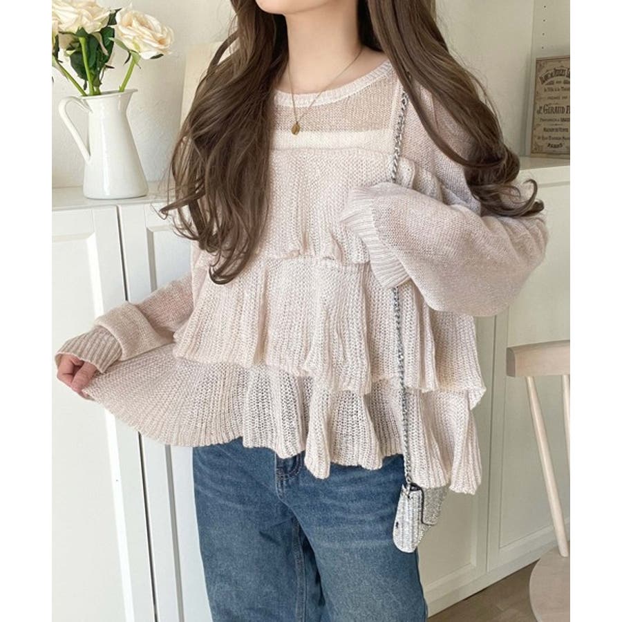 揺れるフリルが目を惹くティアードデザインのメッシュニットです。