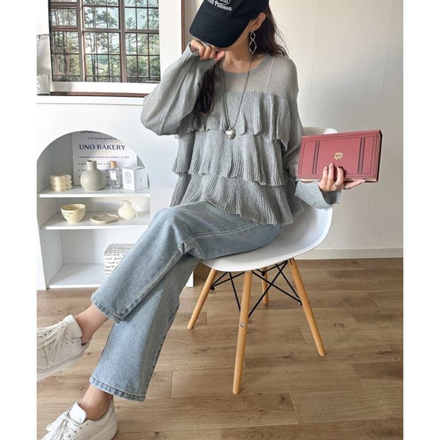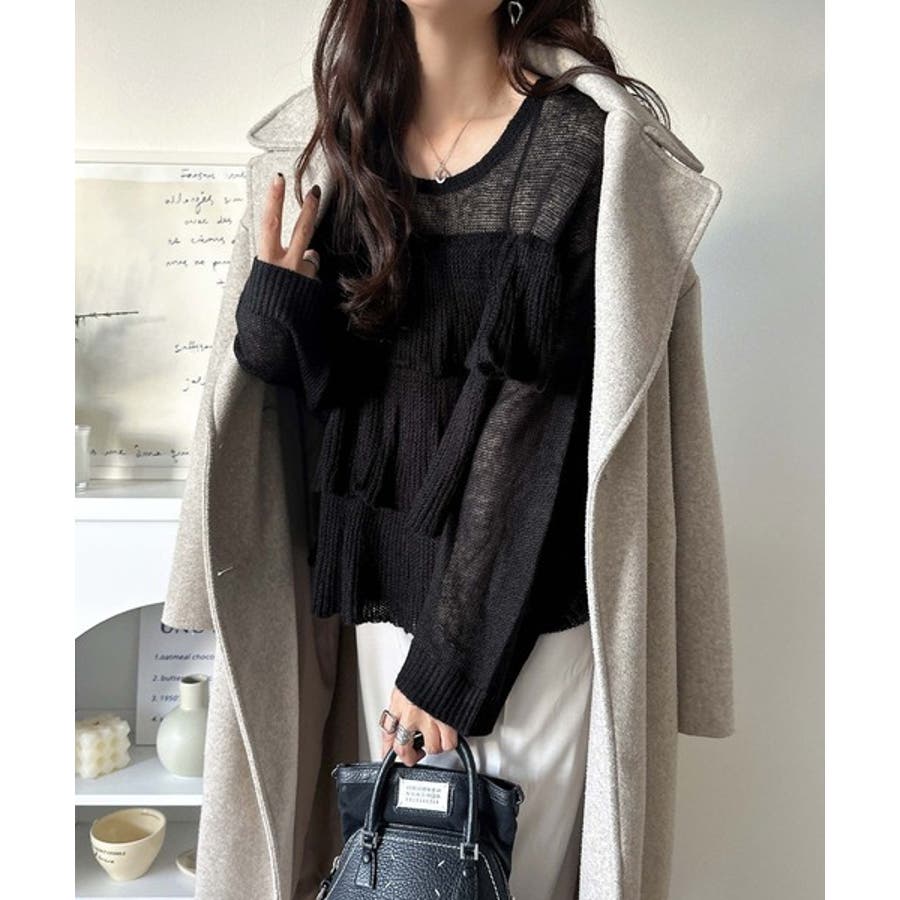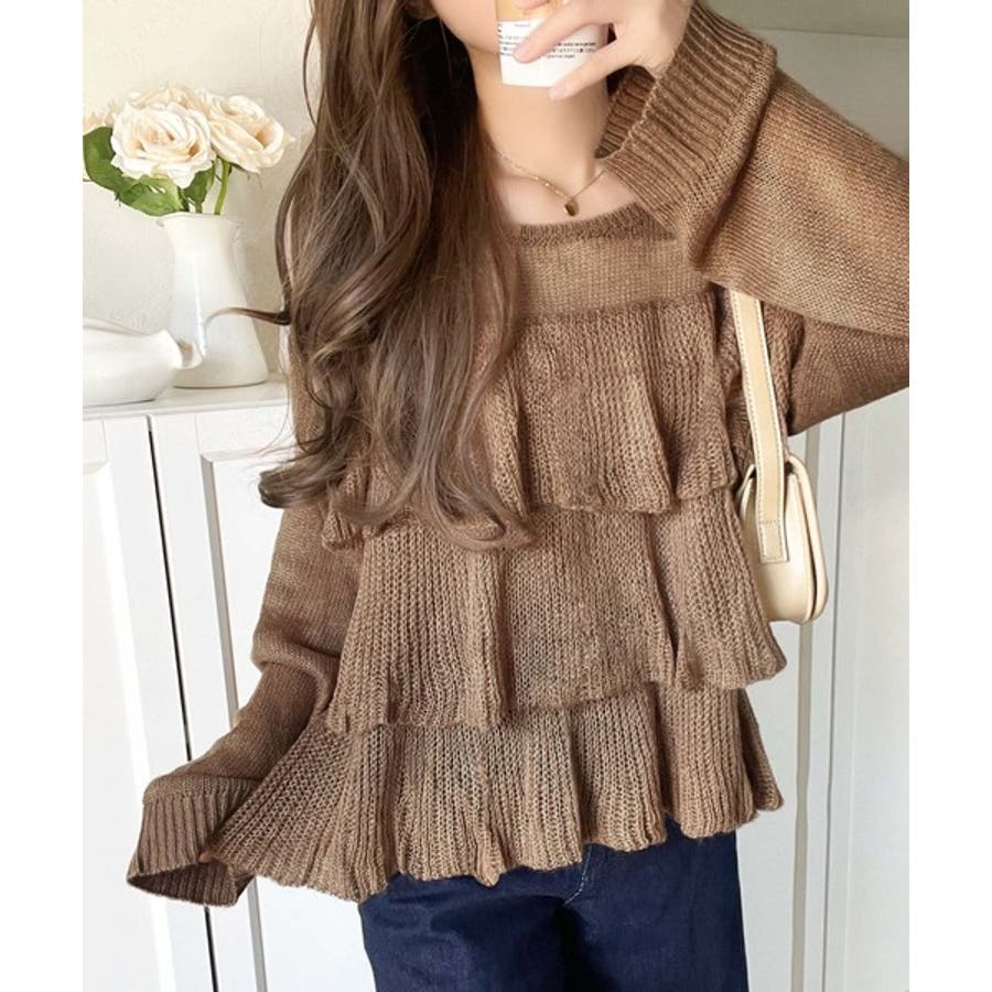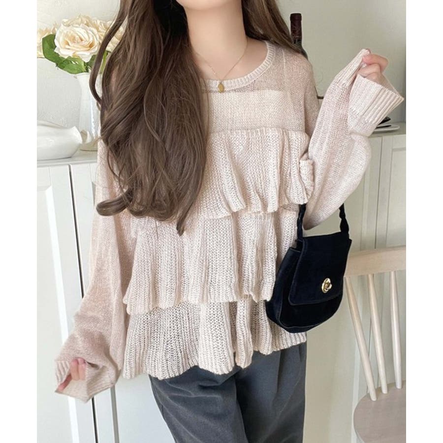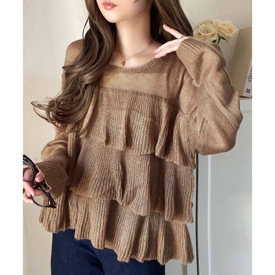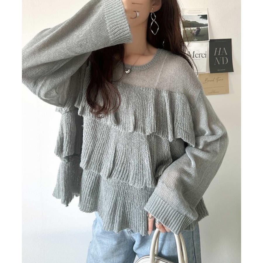 揺れるフリルが目を惹くティアードデザインのメッシュニットです。
