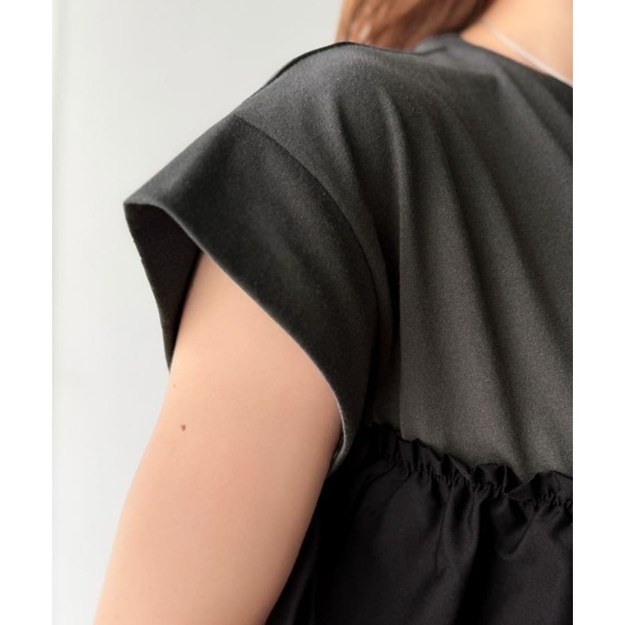 フリル部分は張り感のある布帛素材の異素材ミックス