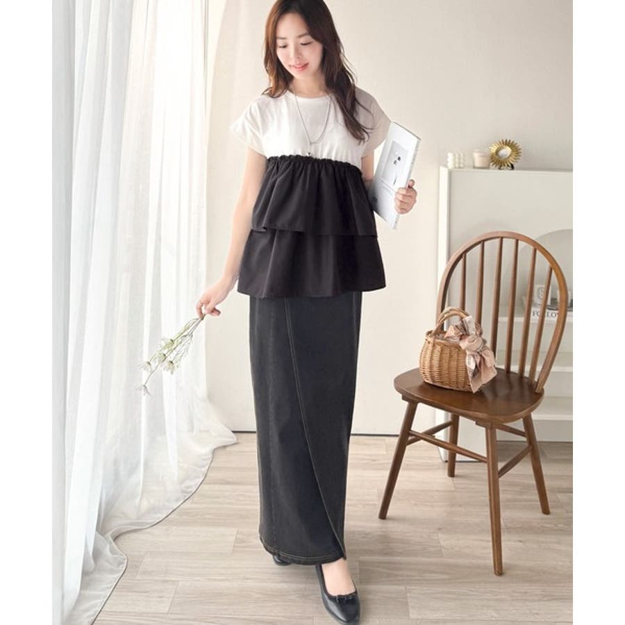 ウエストはふんわりフリルで体型のラインをさり気なくカモフラージュ。