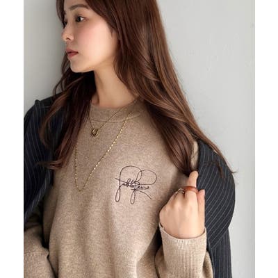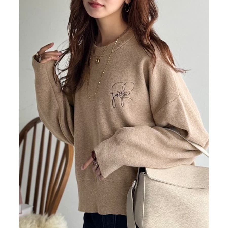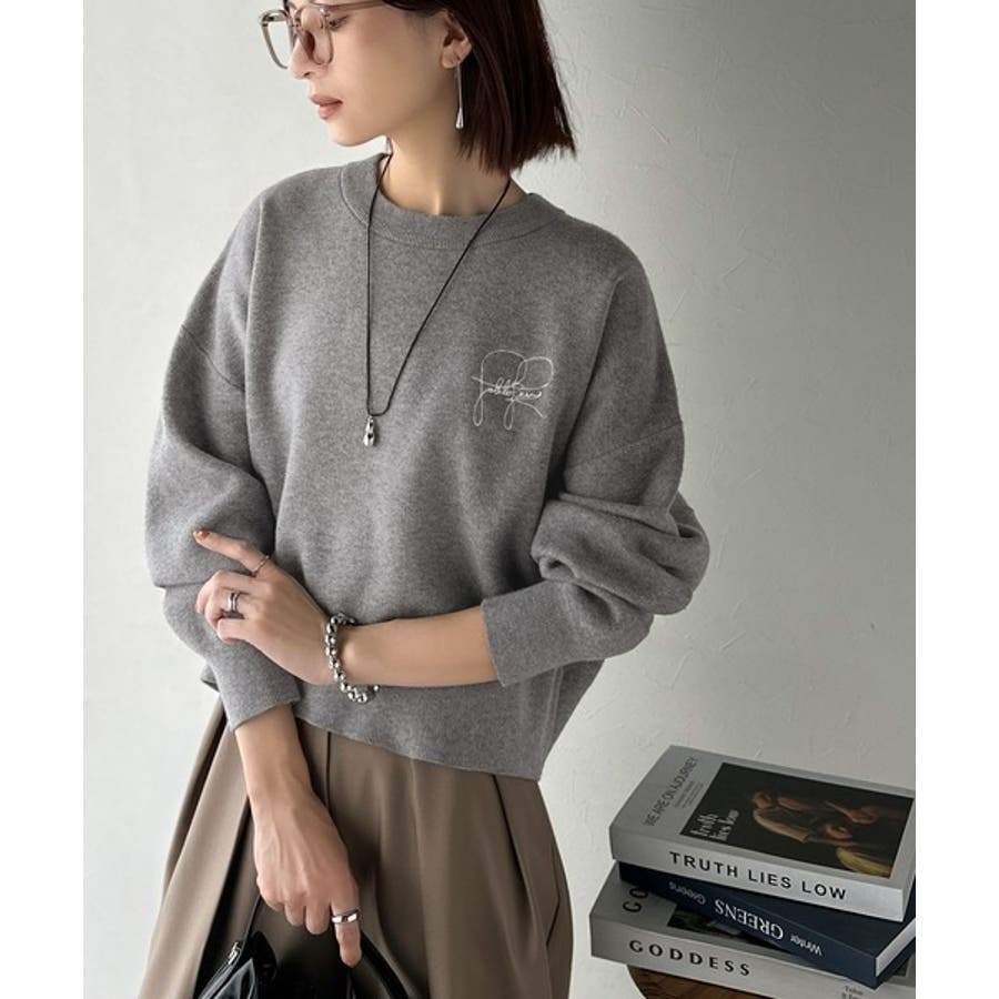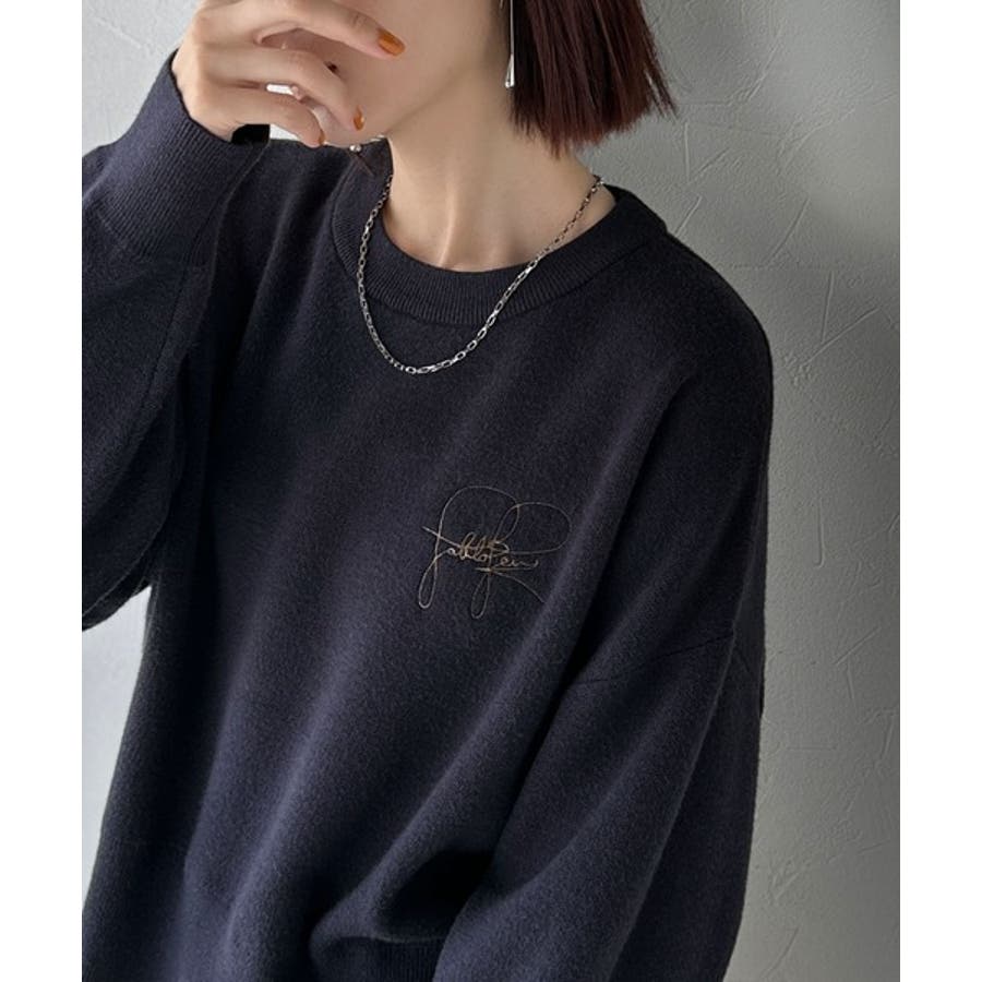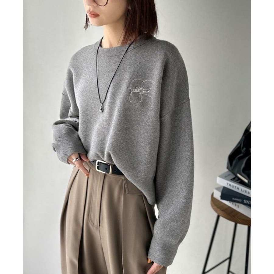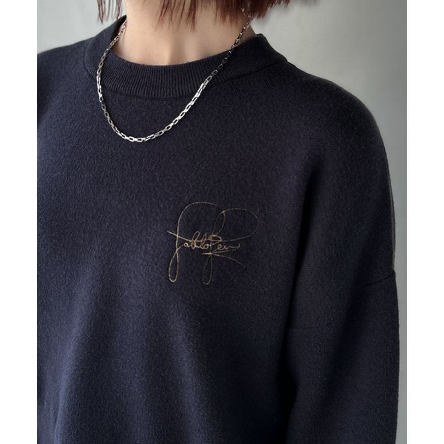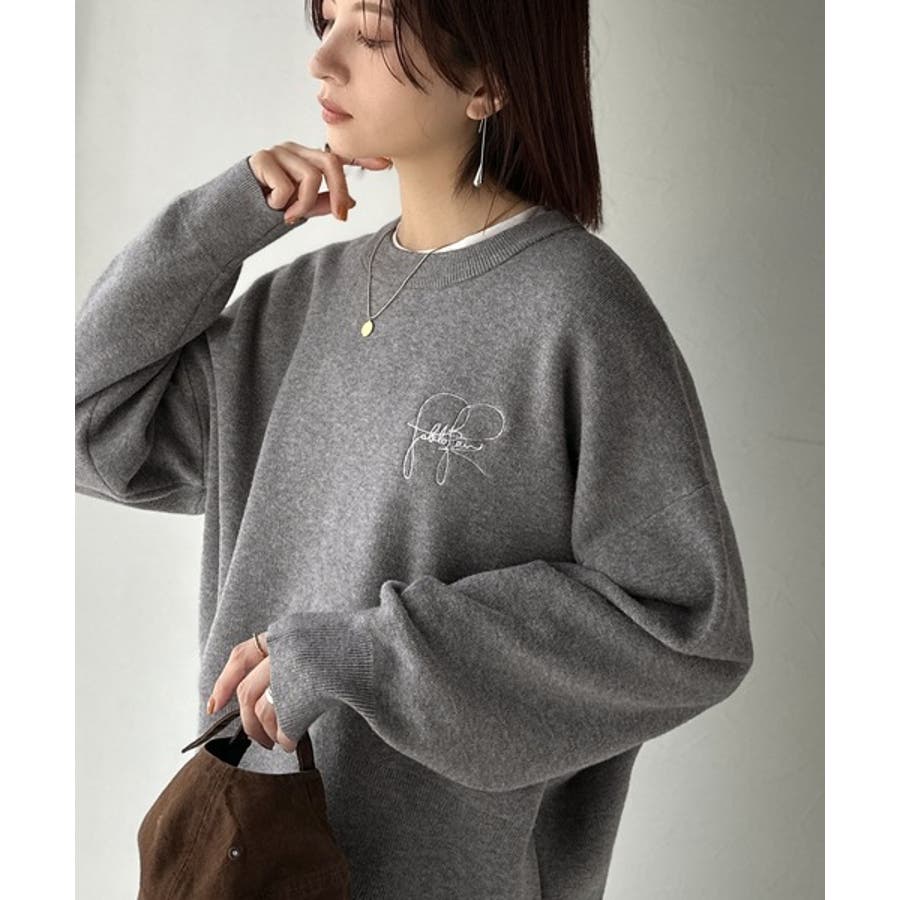スウェットライクで”魅せる”大人のリラクシーな1枚。胸元サインロゴ刺繍入りニット…