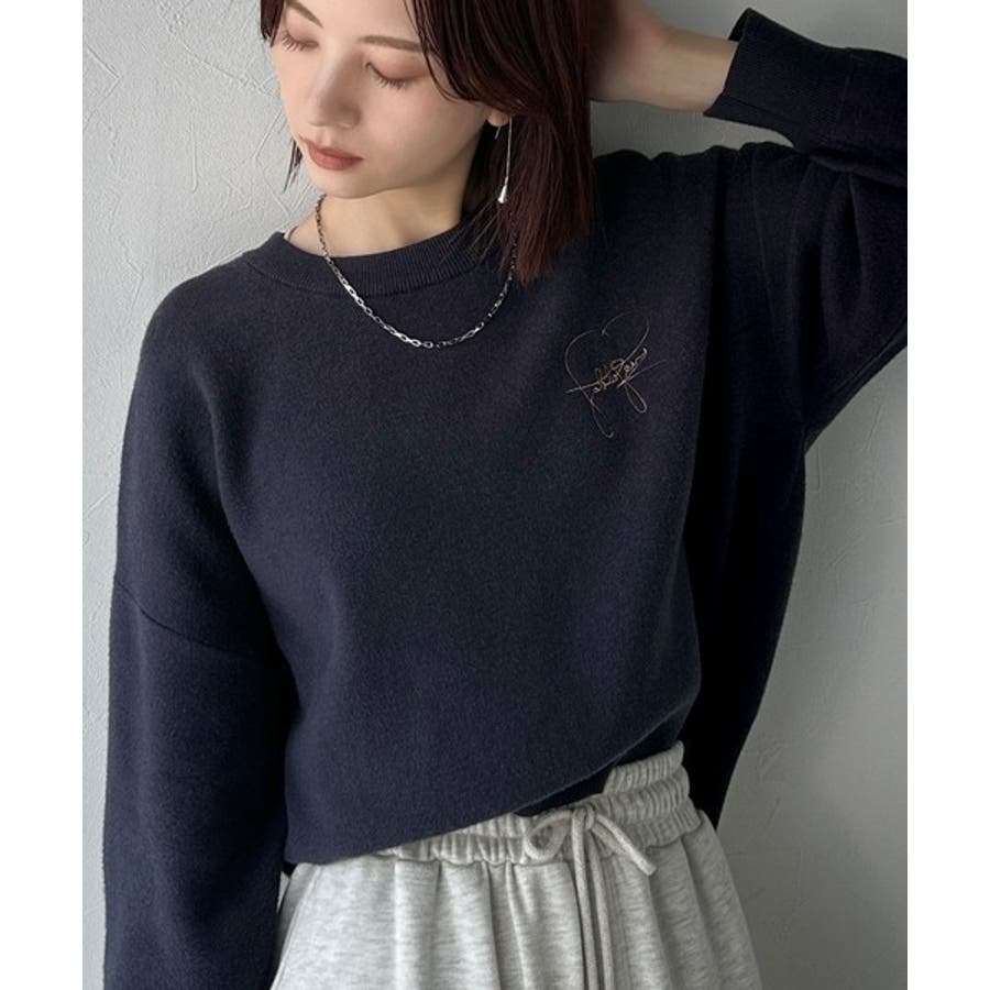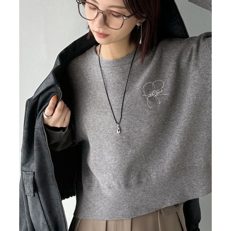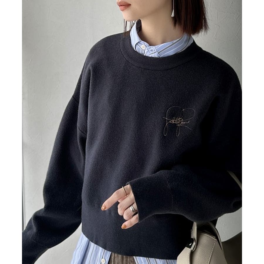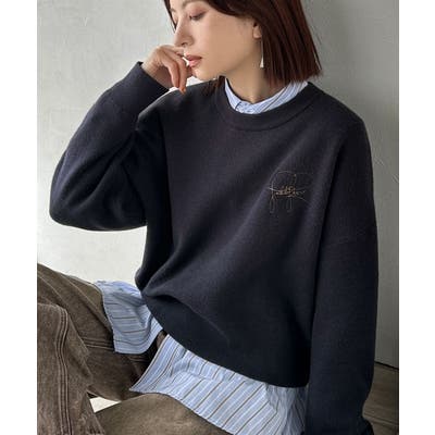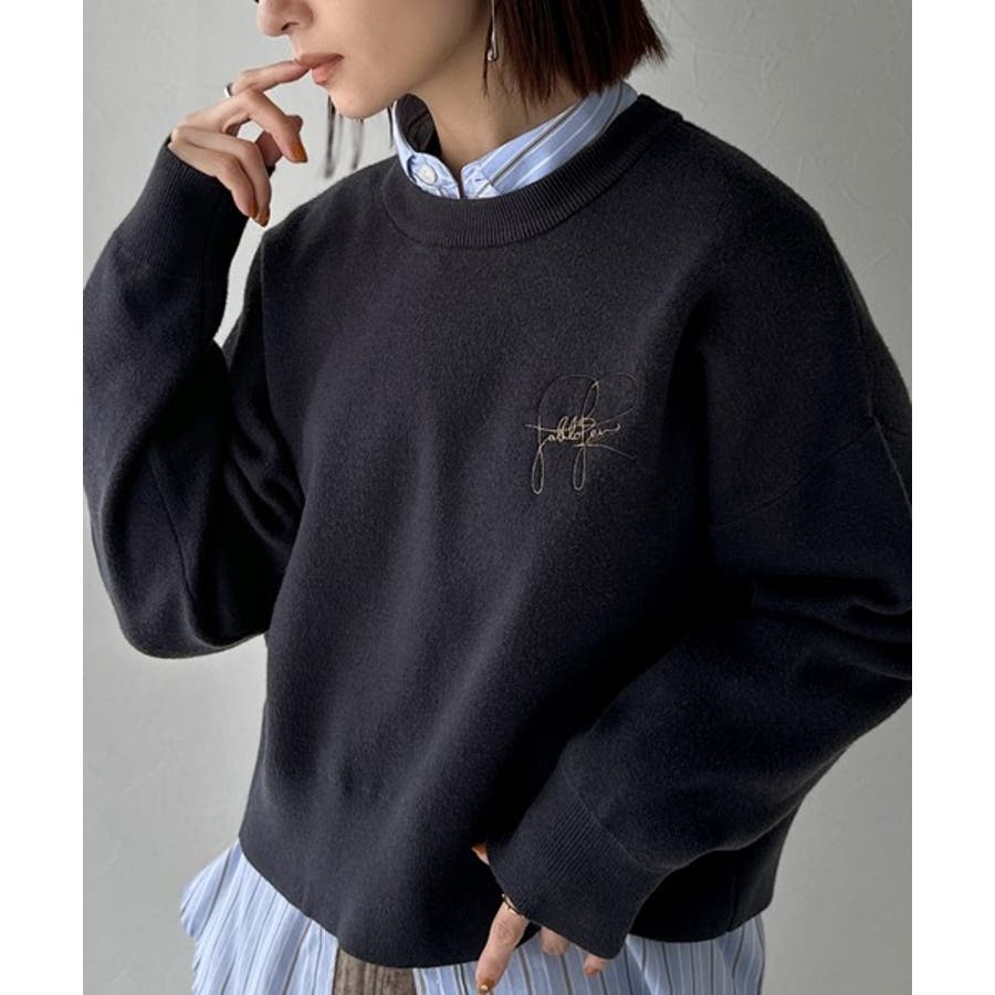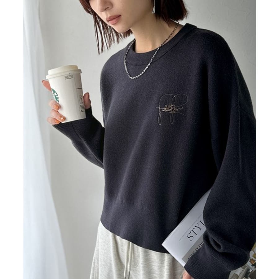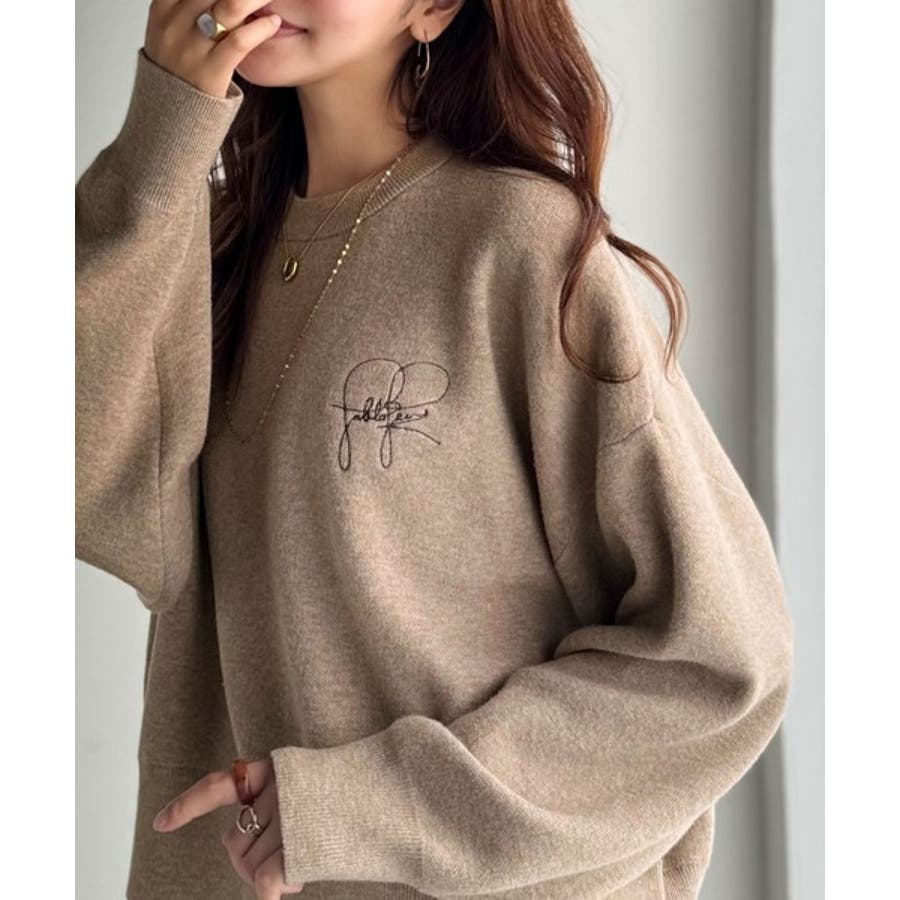 スウェットライクで”魅せる”大人のリラクシーな1枚。胸元サインロゴ刺繍入りニット…