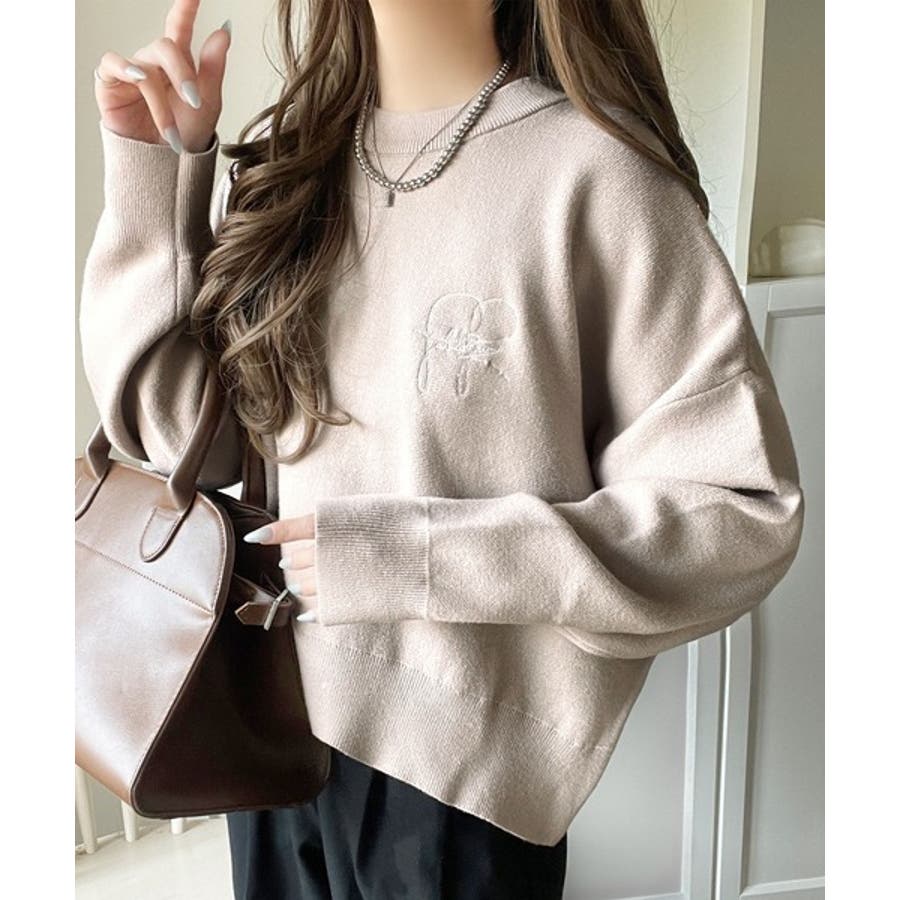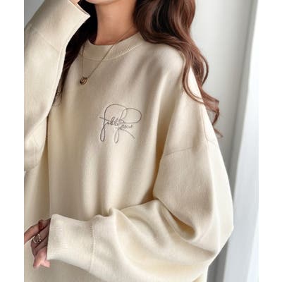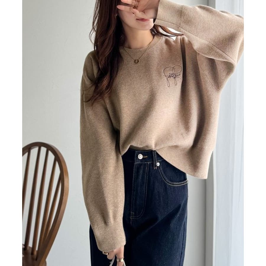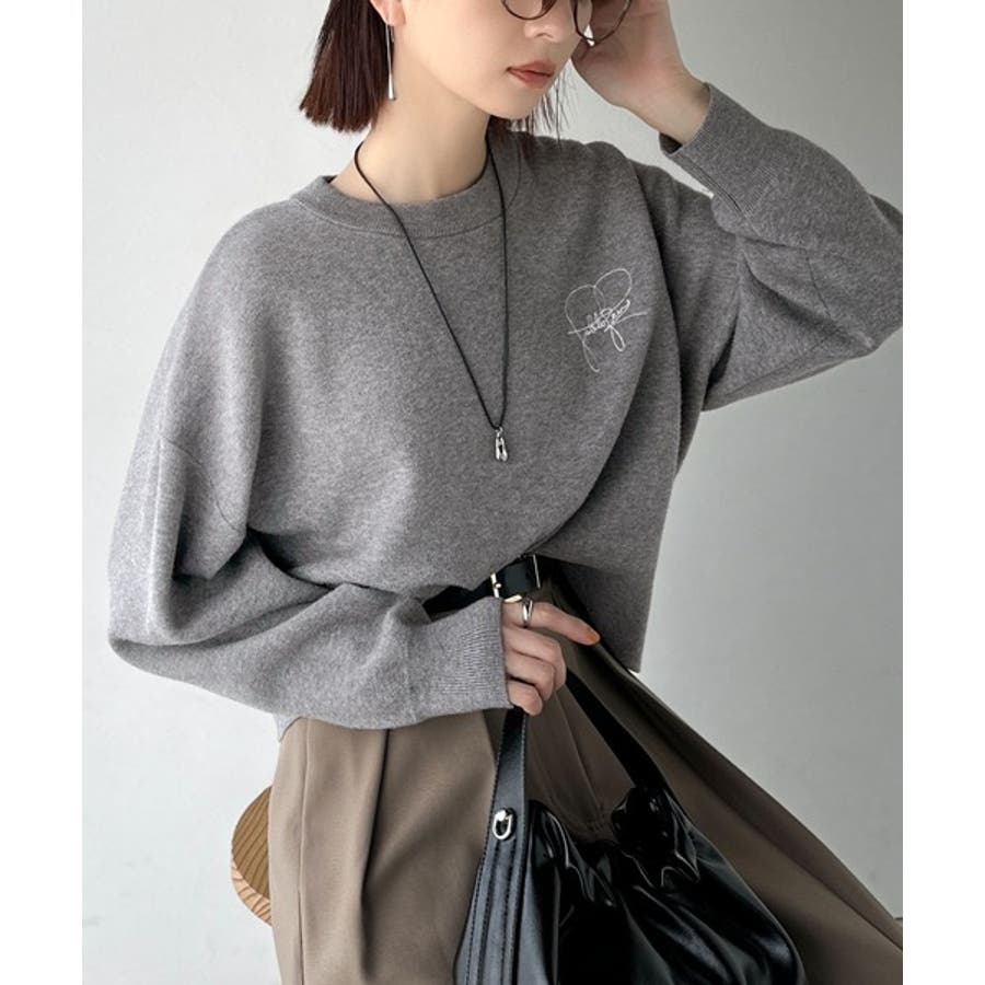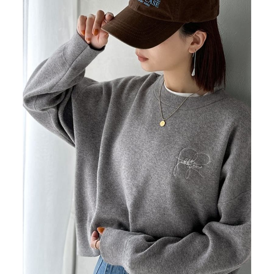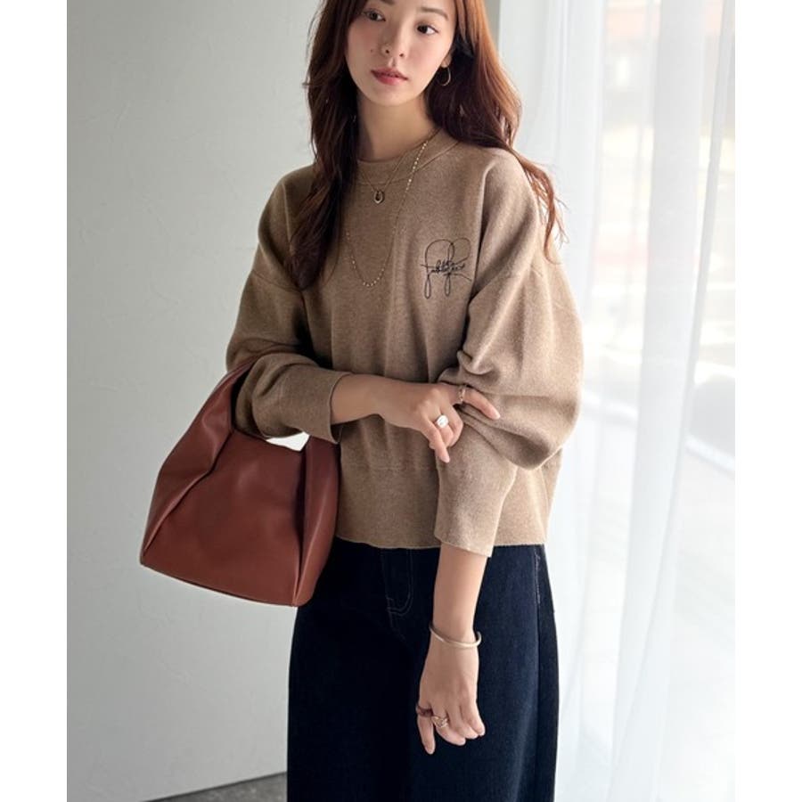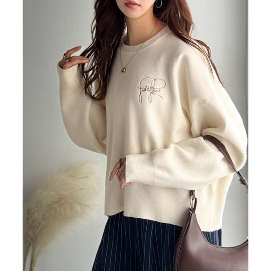 スウェットライクで”魅せる”大人のリラクシーな1枚。胸元サインロゴ刺繍入りニット…