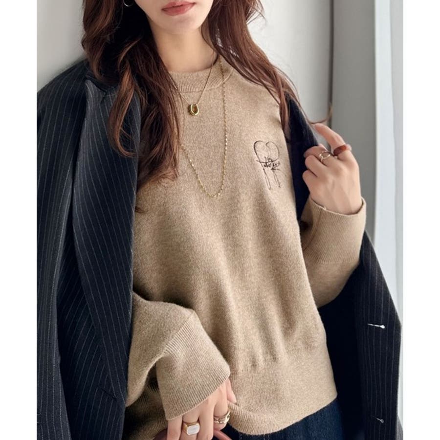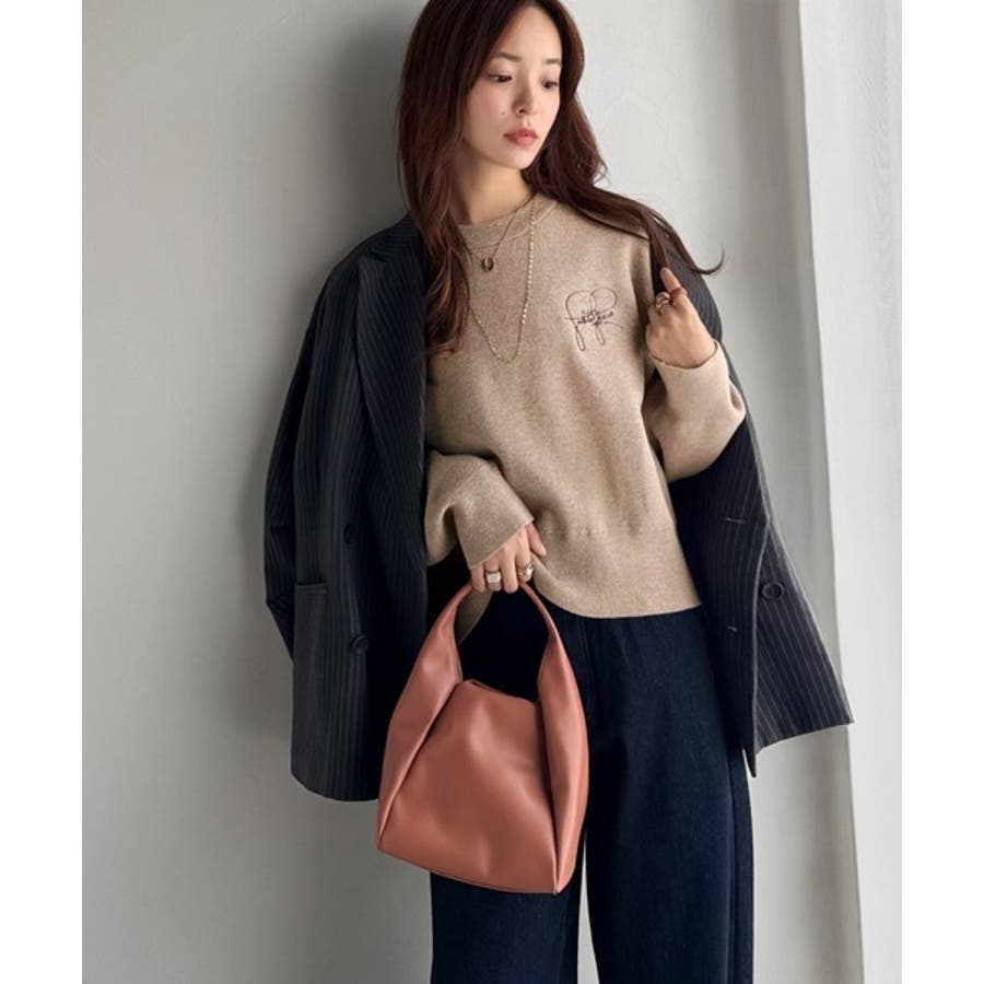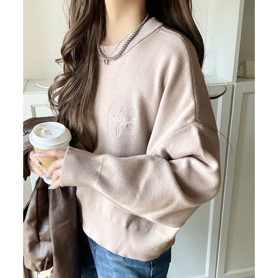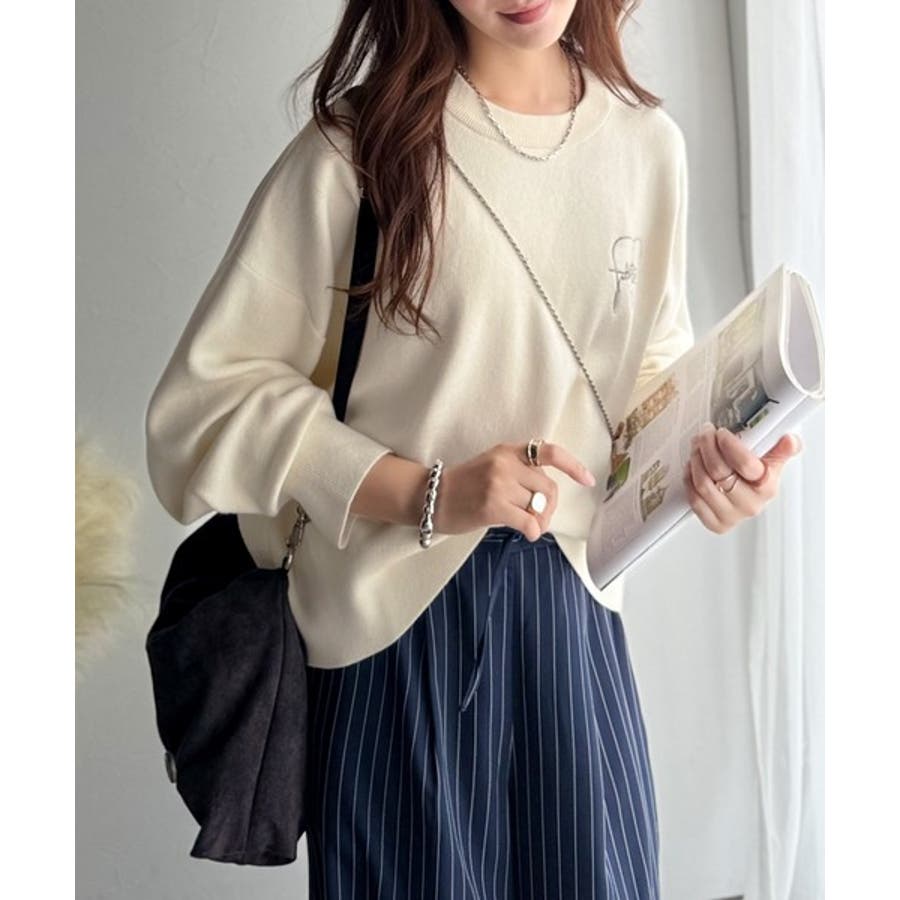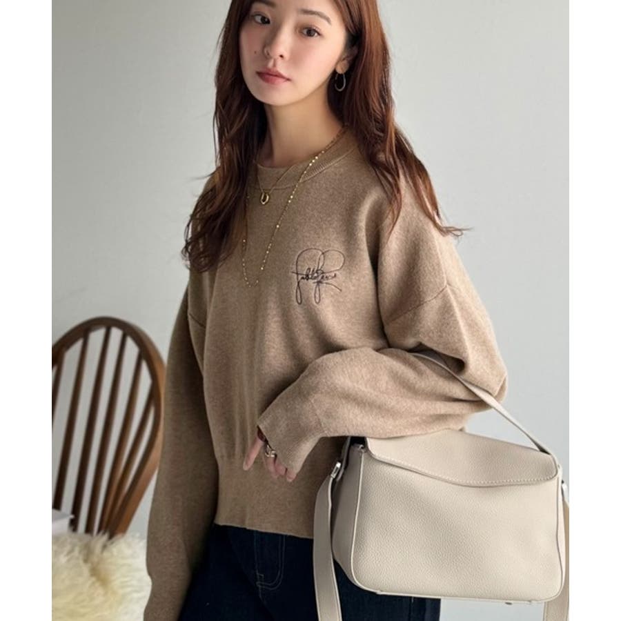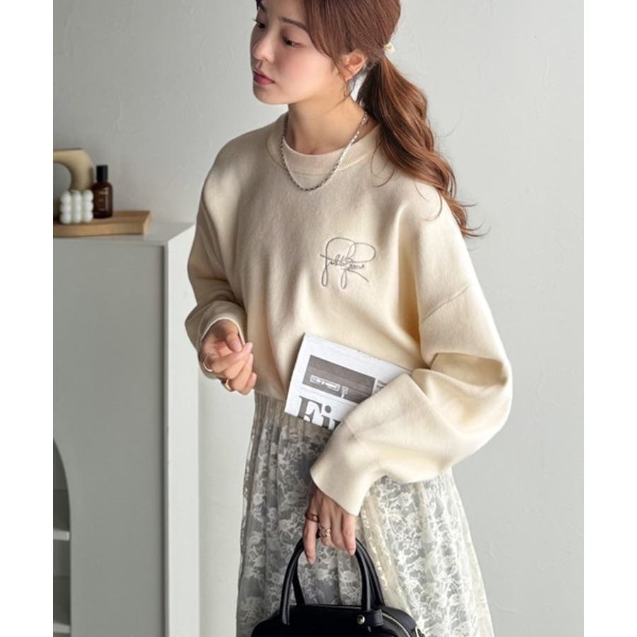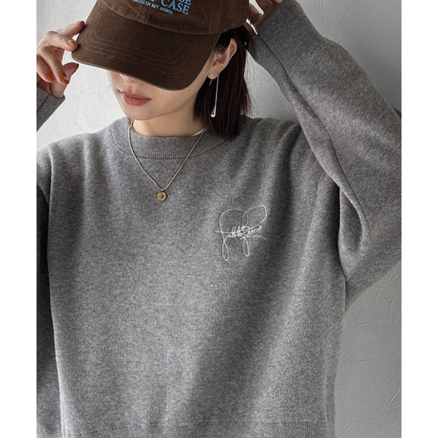 スウェットライクで”魅せる”大人のリラクシーな1枚。胸元サインロゴ刺繍入りニット…