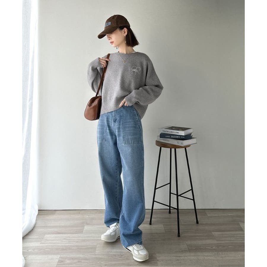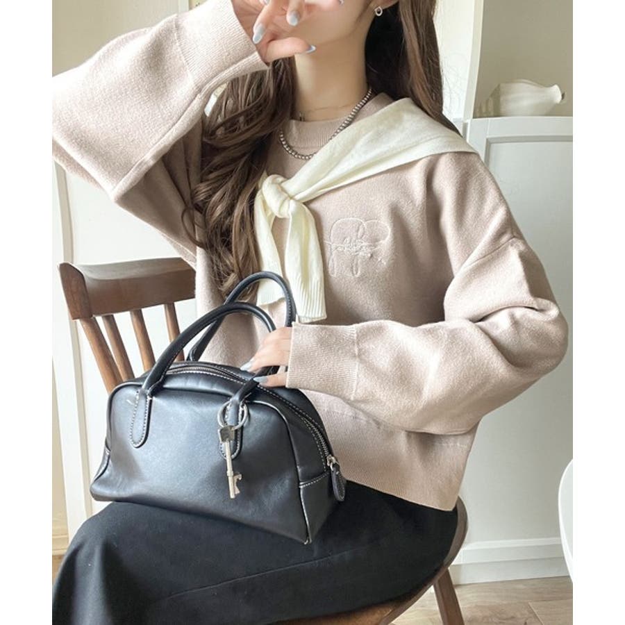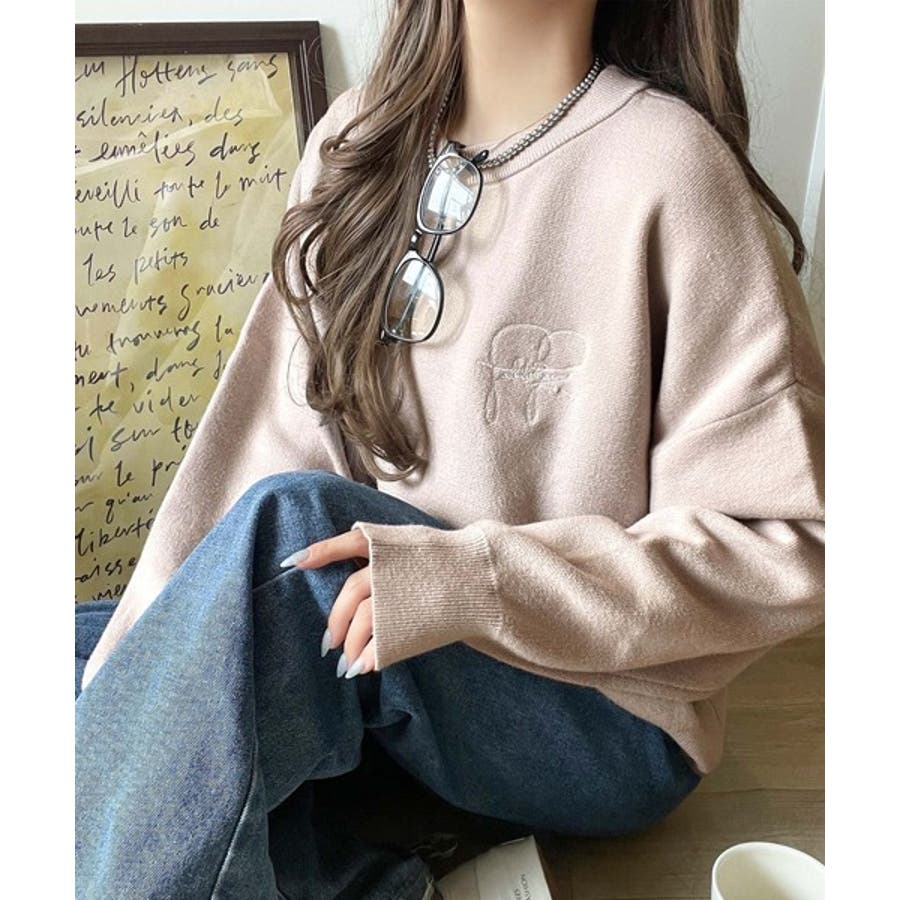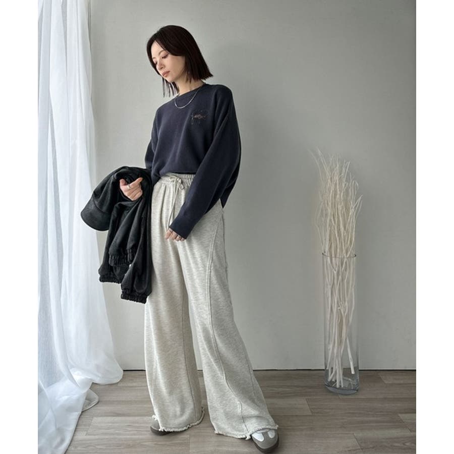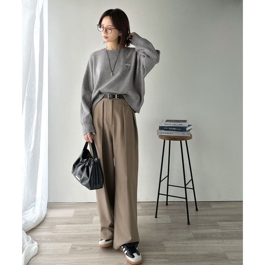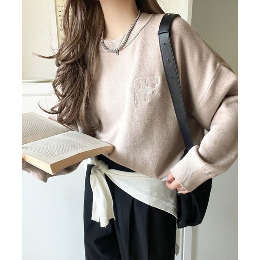スウェットライクで”魅せる”大人のリラクシーな1枚。胸元サインロゴ刺繍入りニット…