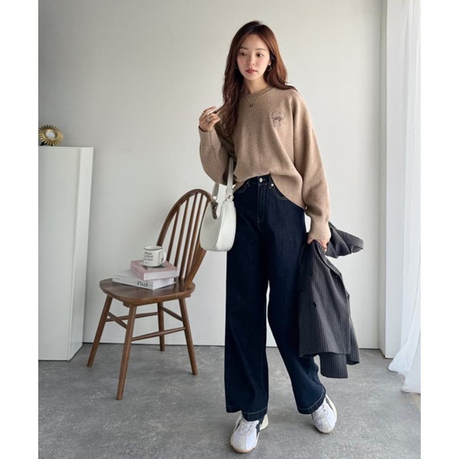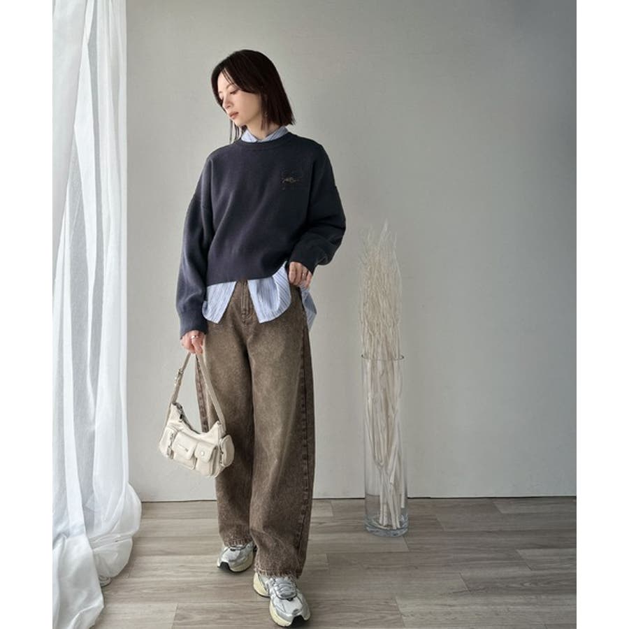秋冬はシャツやタートルをINして暖かく着られる万能ニットです♪