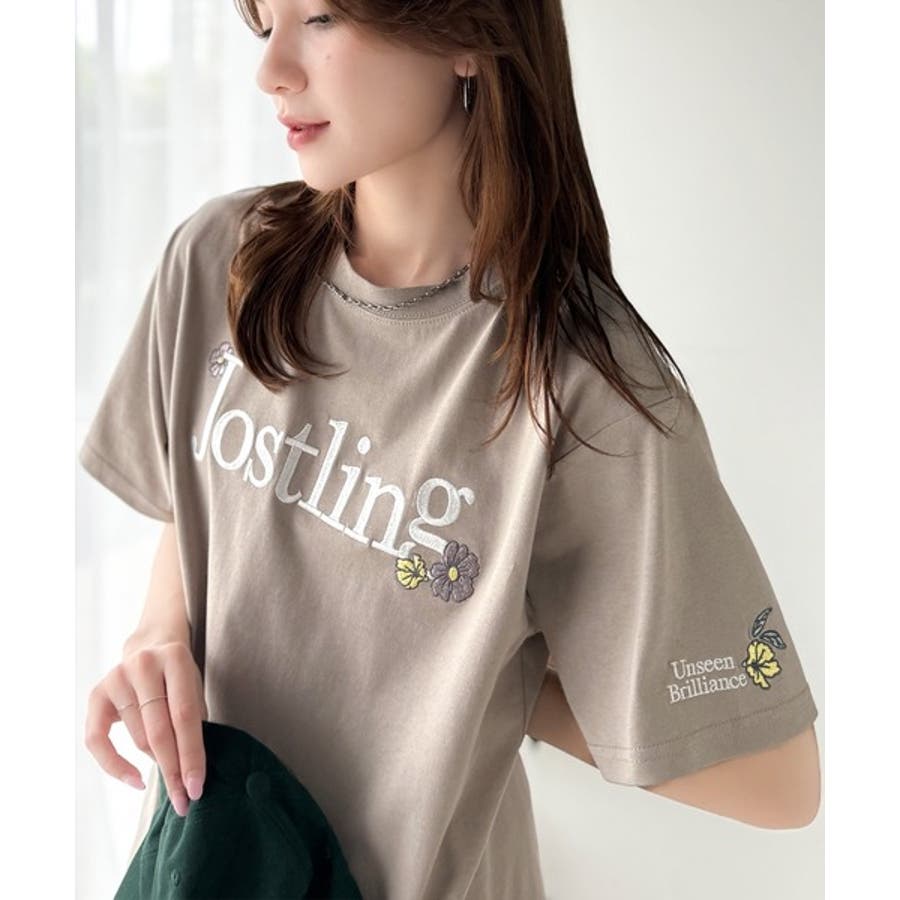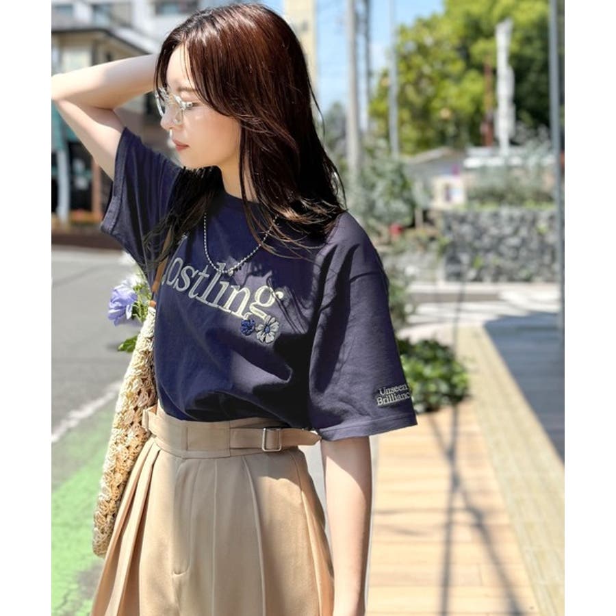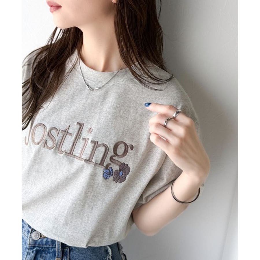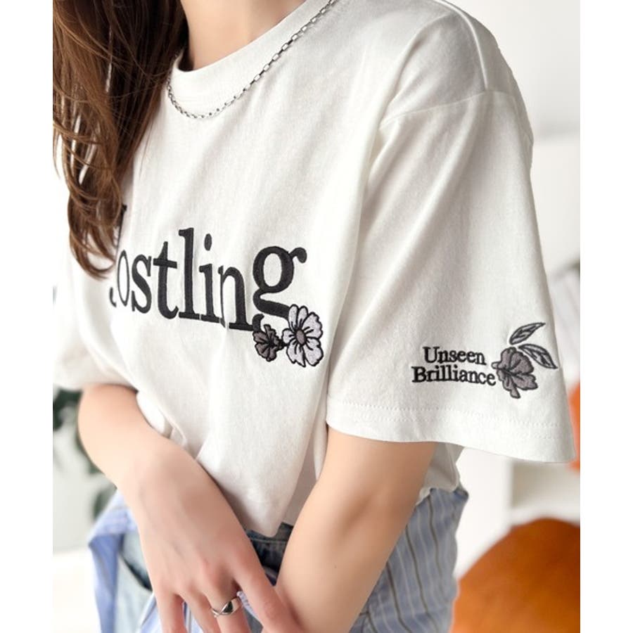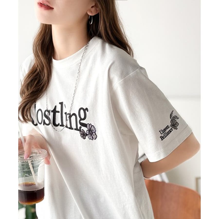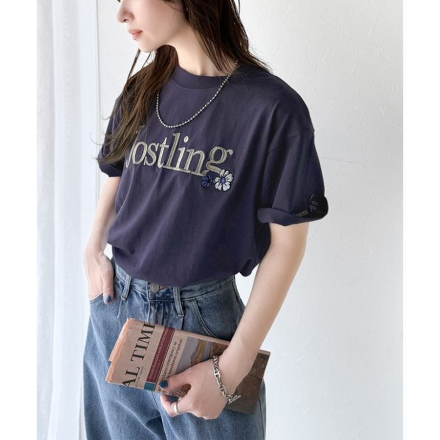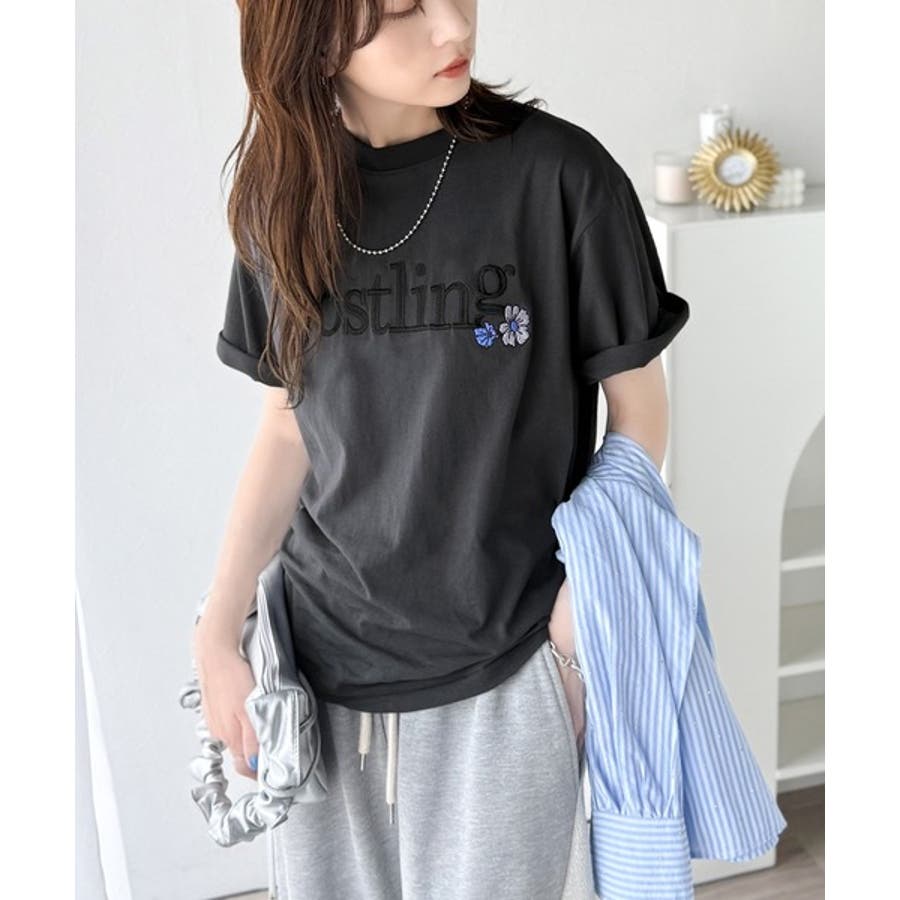ナチュラルな中に、さりげない華。綿100%ロゴ×フラワー刺繍ビッグTシャツ(半袖…