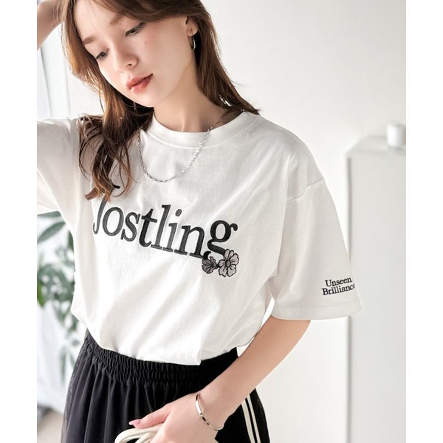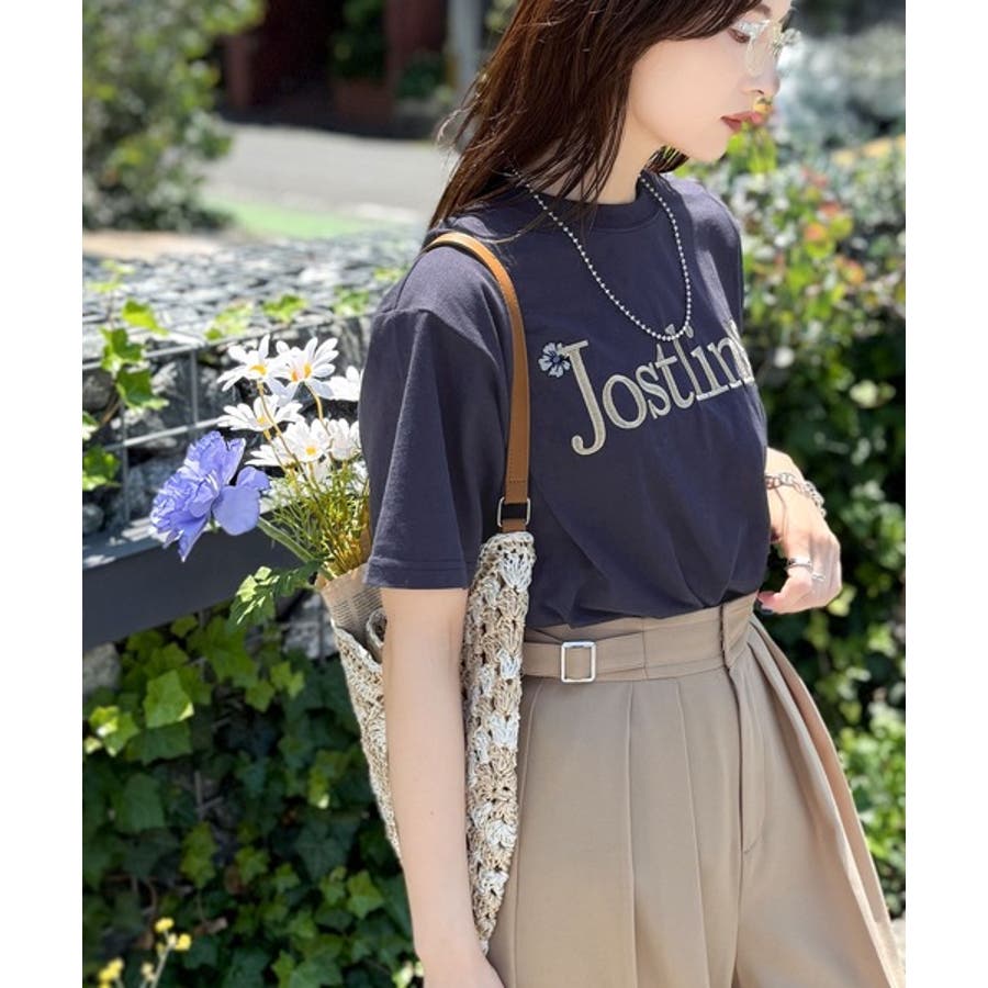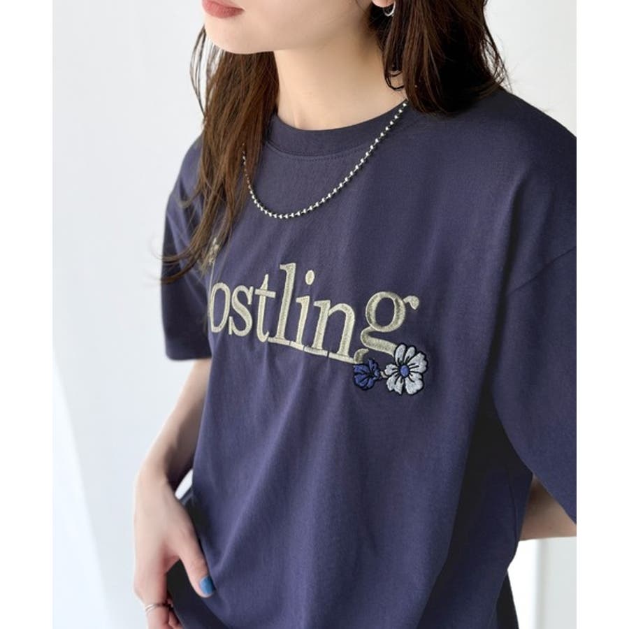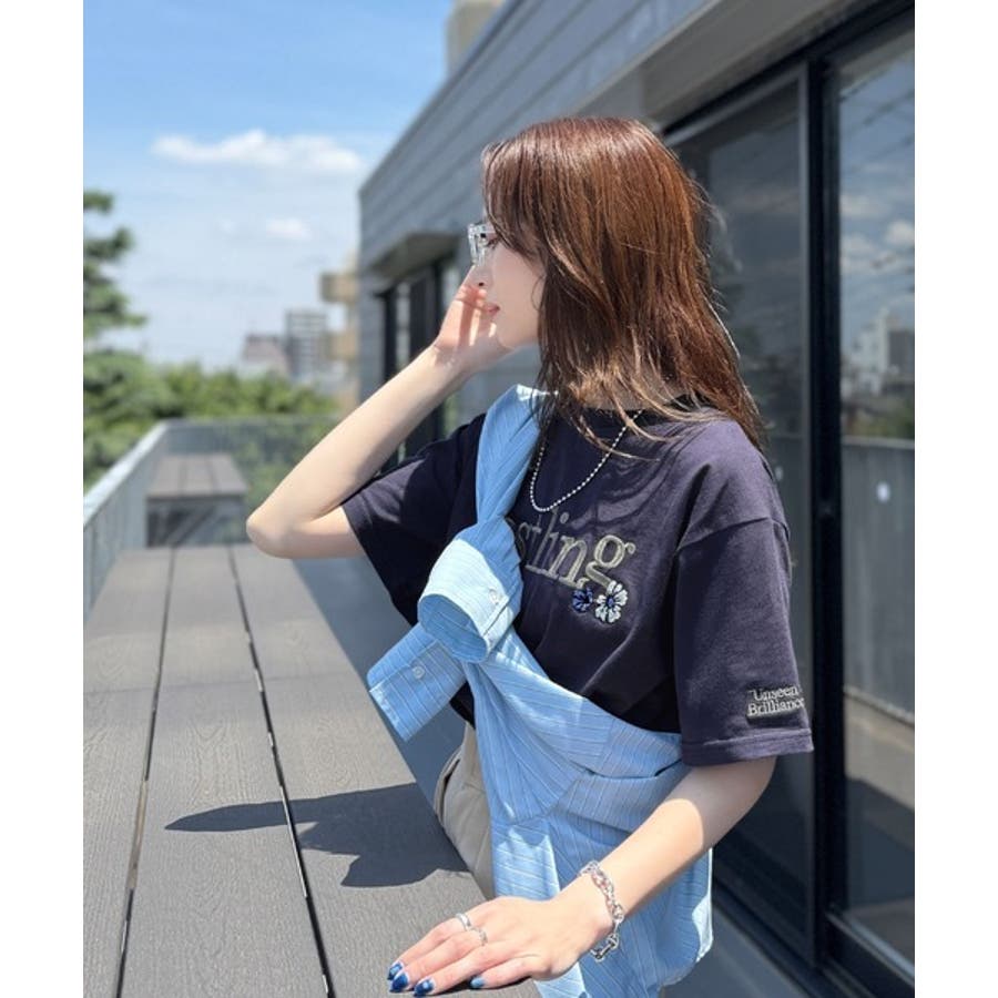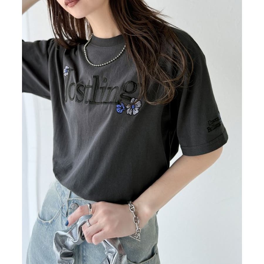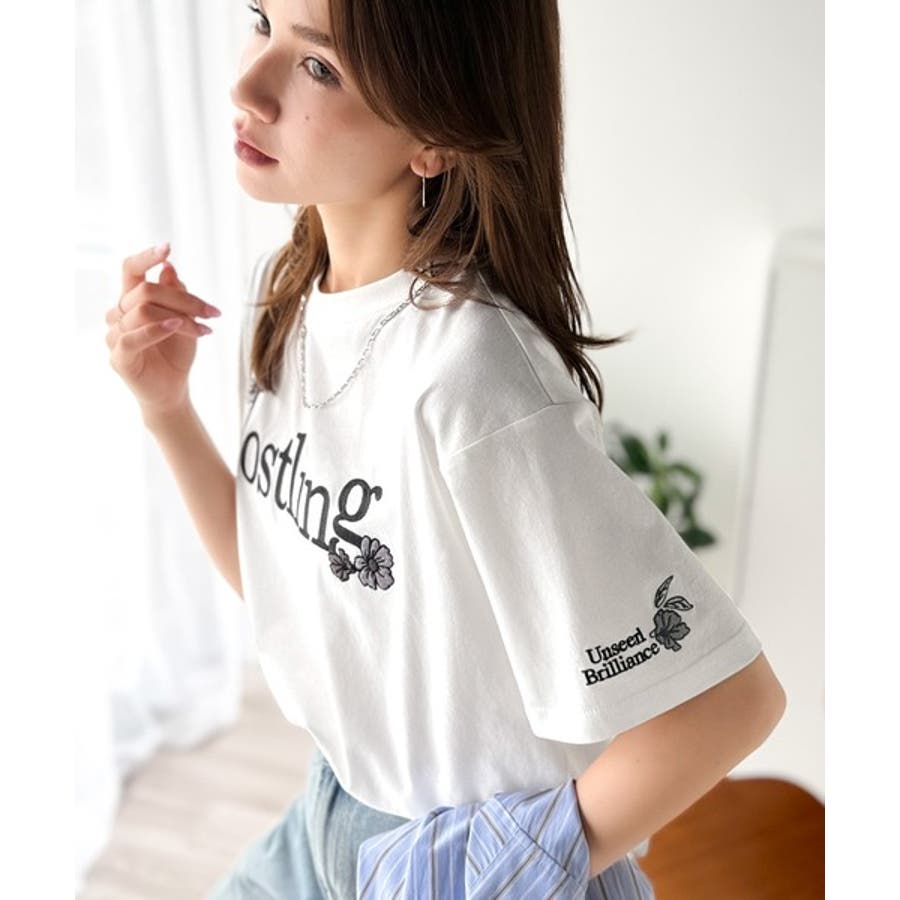 ナチュラルな中に、さりげない華。綿100%ロゴ×フラワー刺繍ビッグTシャツ(半袖…