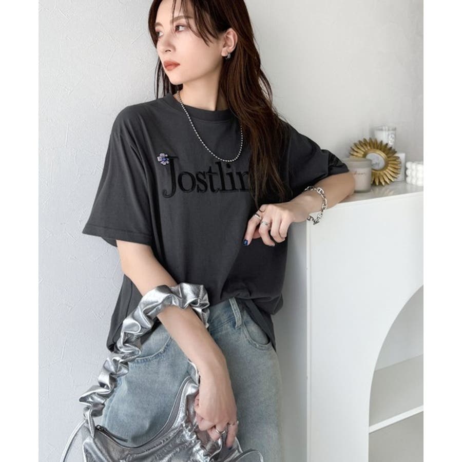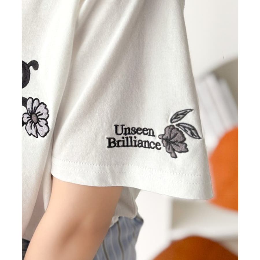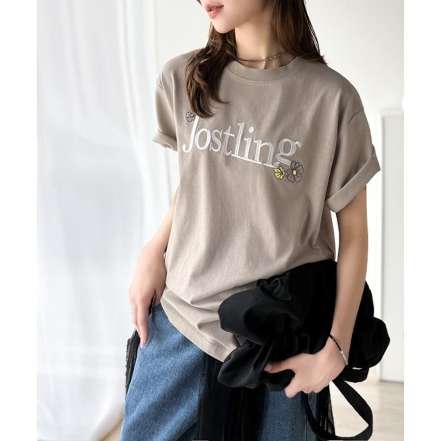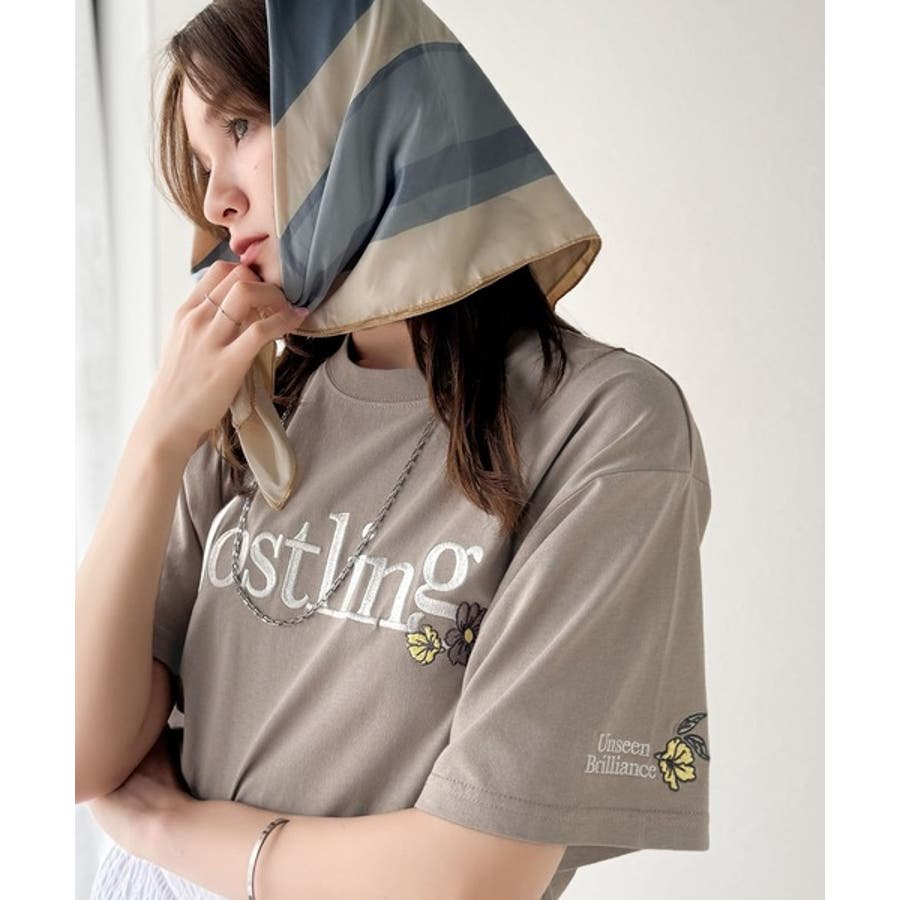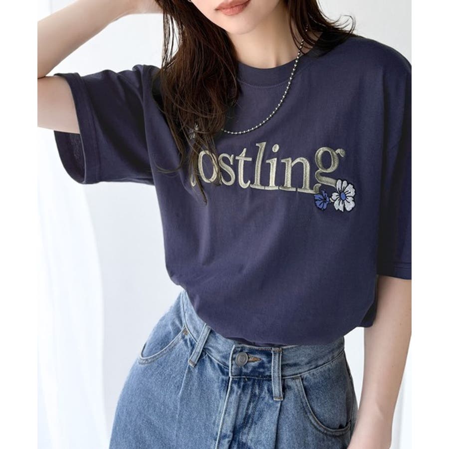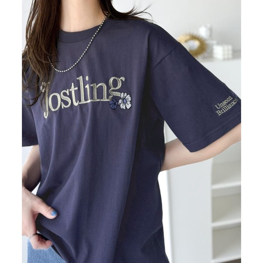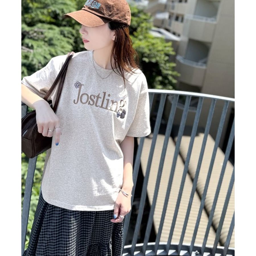 ナチュラルな中に、さりげない華。綿100%ロゴ×フラワー刺繍ビッグTシャツ(半袖…