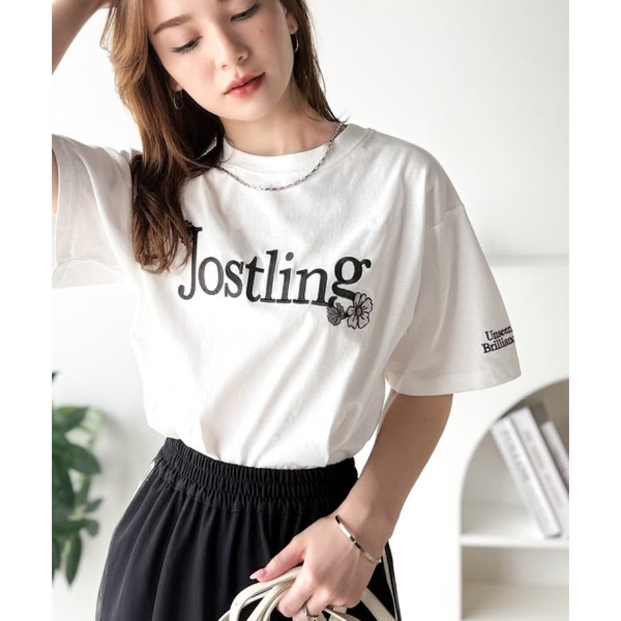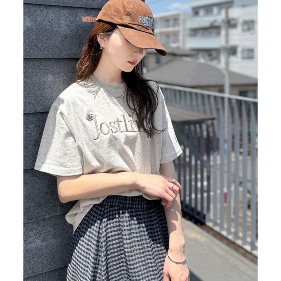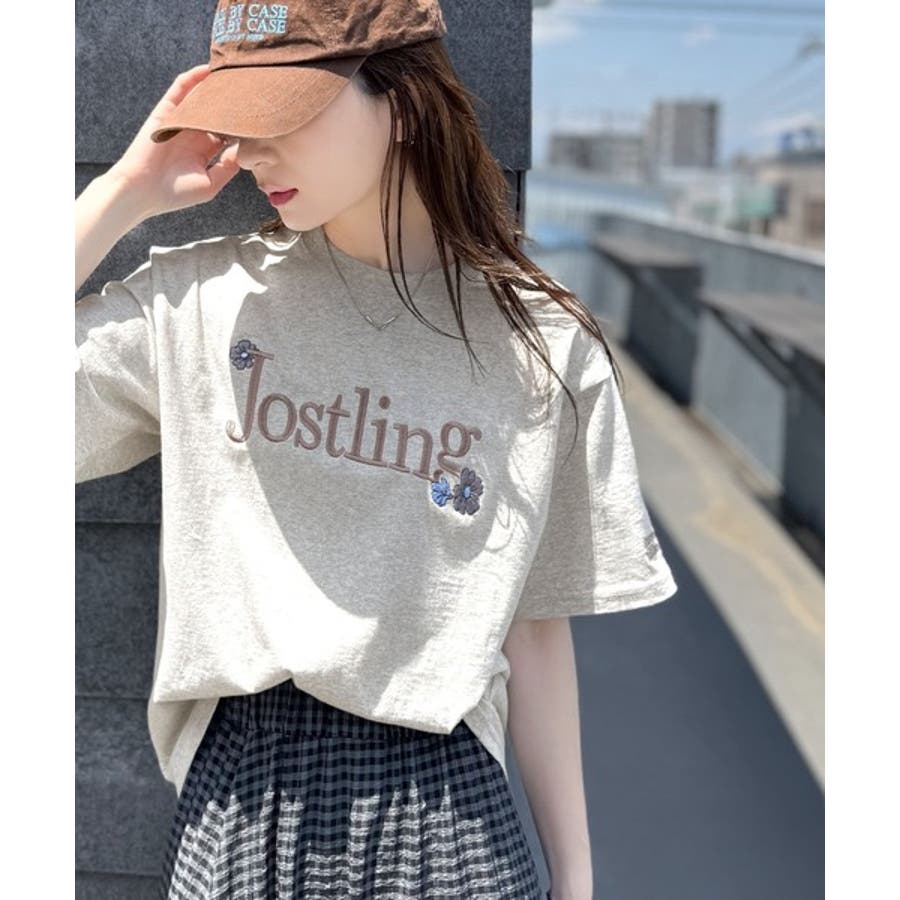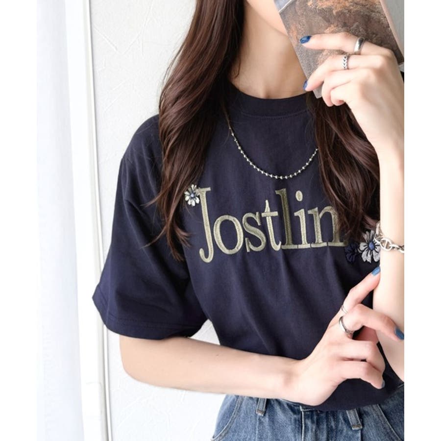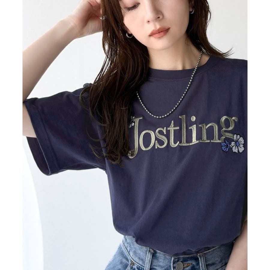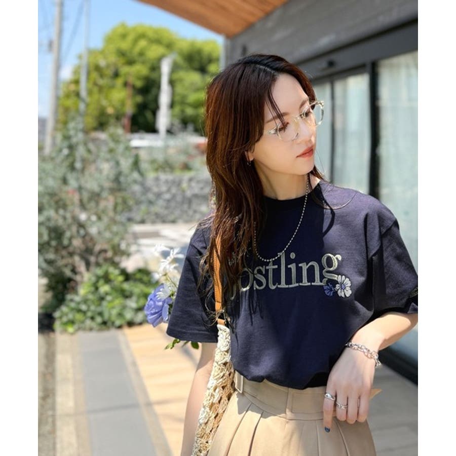 ナチュラルな中に、さりげない華。綿100%ロゴ×フラワー刺繍ビッグTシャツ(半袖…