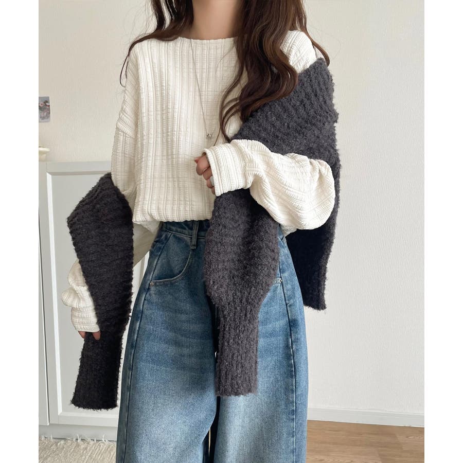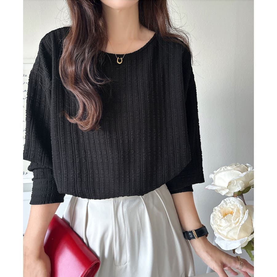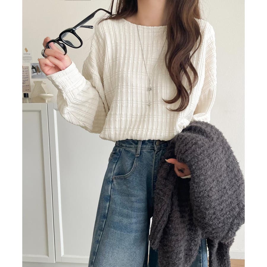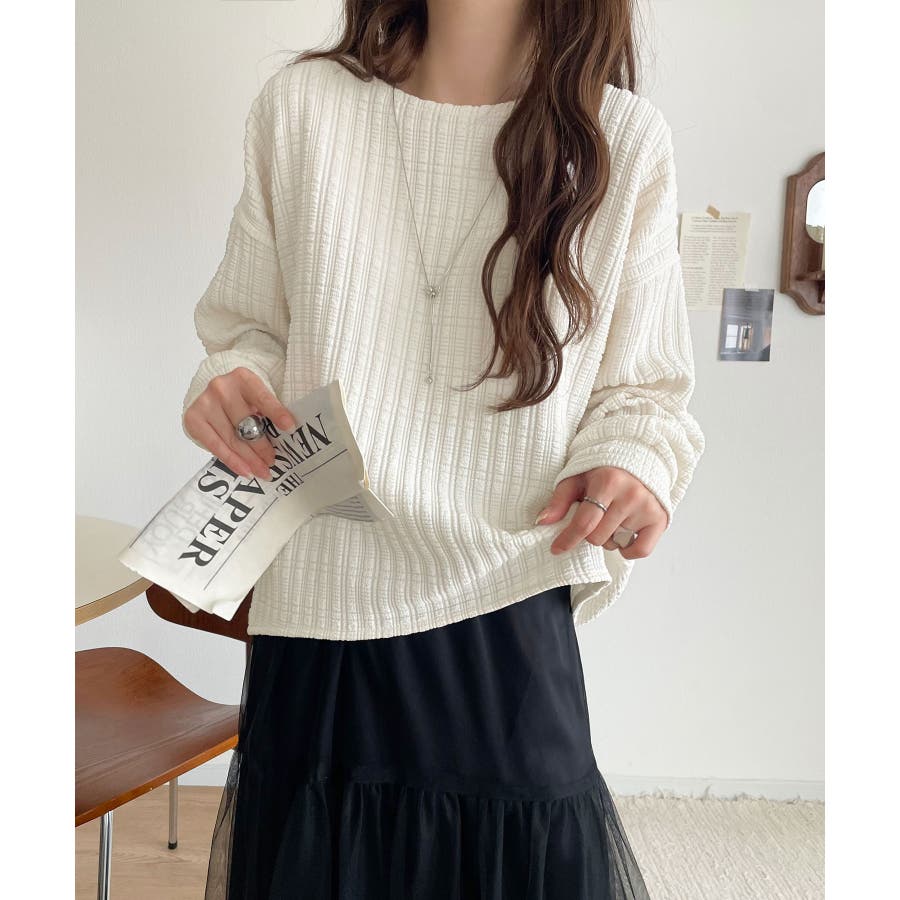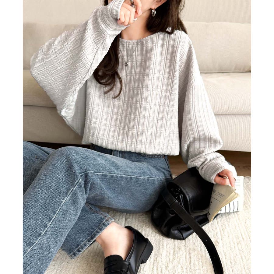 ゆったりシルエットでこなれ感をプラス。フクレジャガードトップス(長袖)