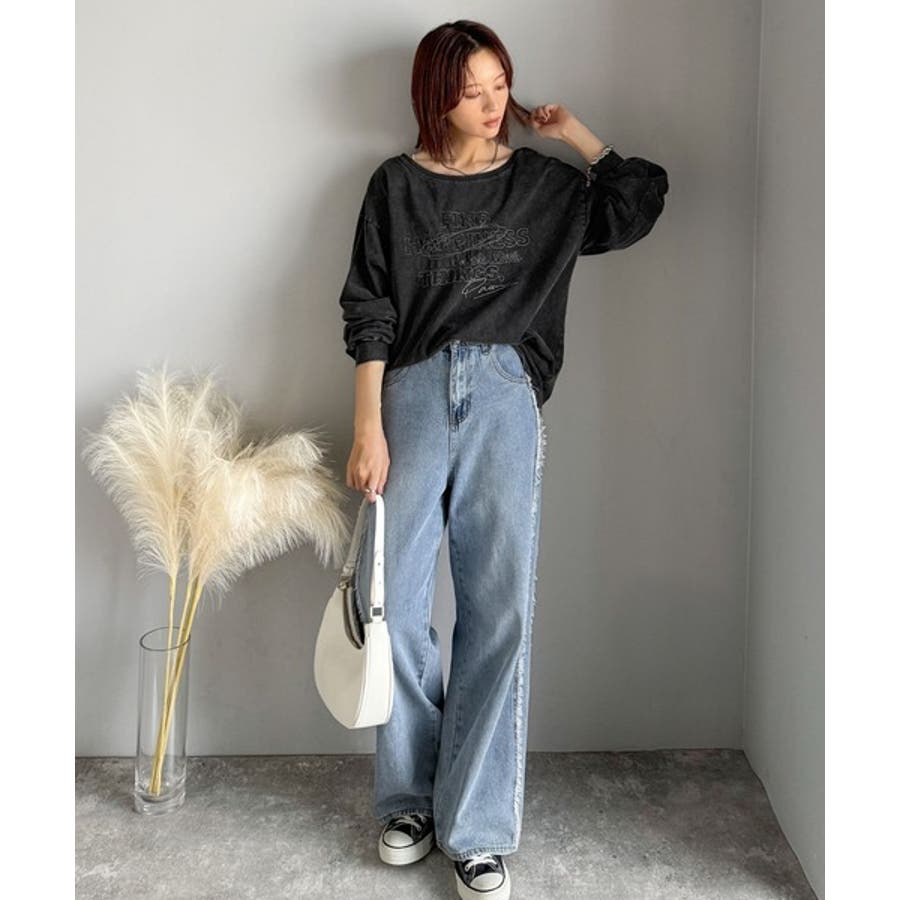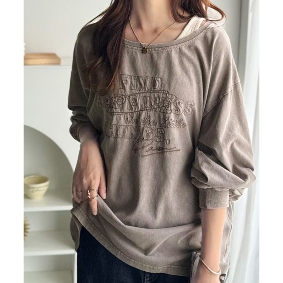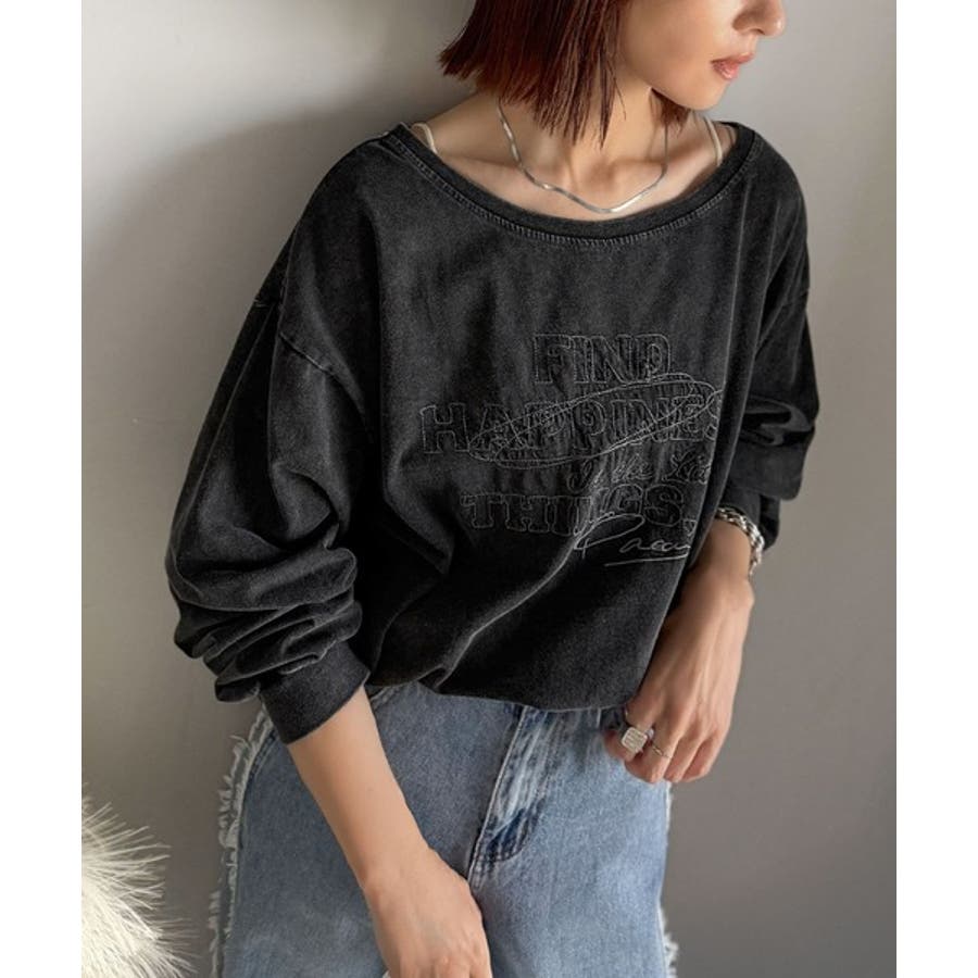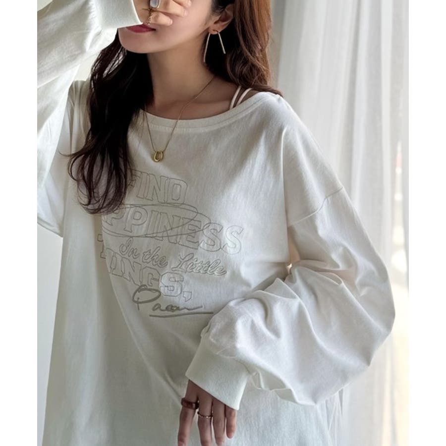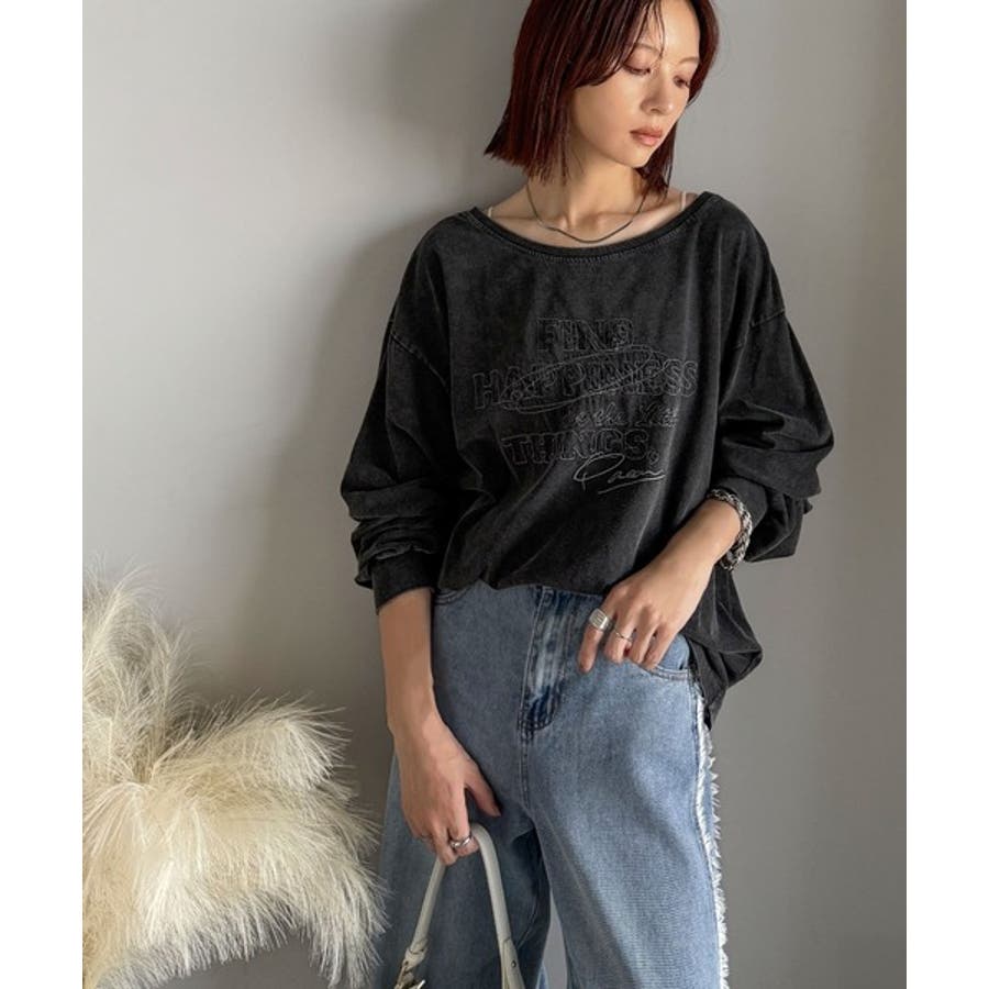 古着感のある緩さが今っぽ可愛い。綿100%前後2WAYワイドネックロンTEE(長…