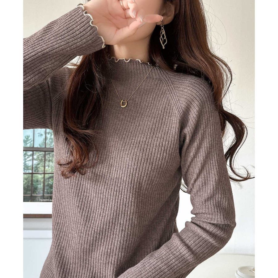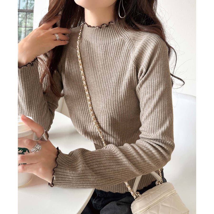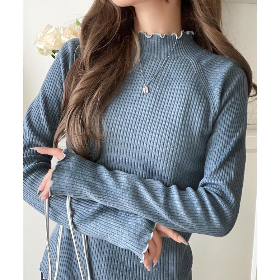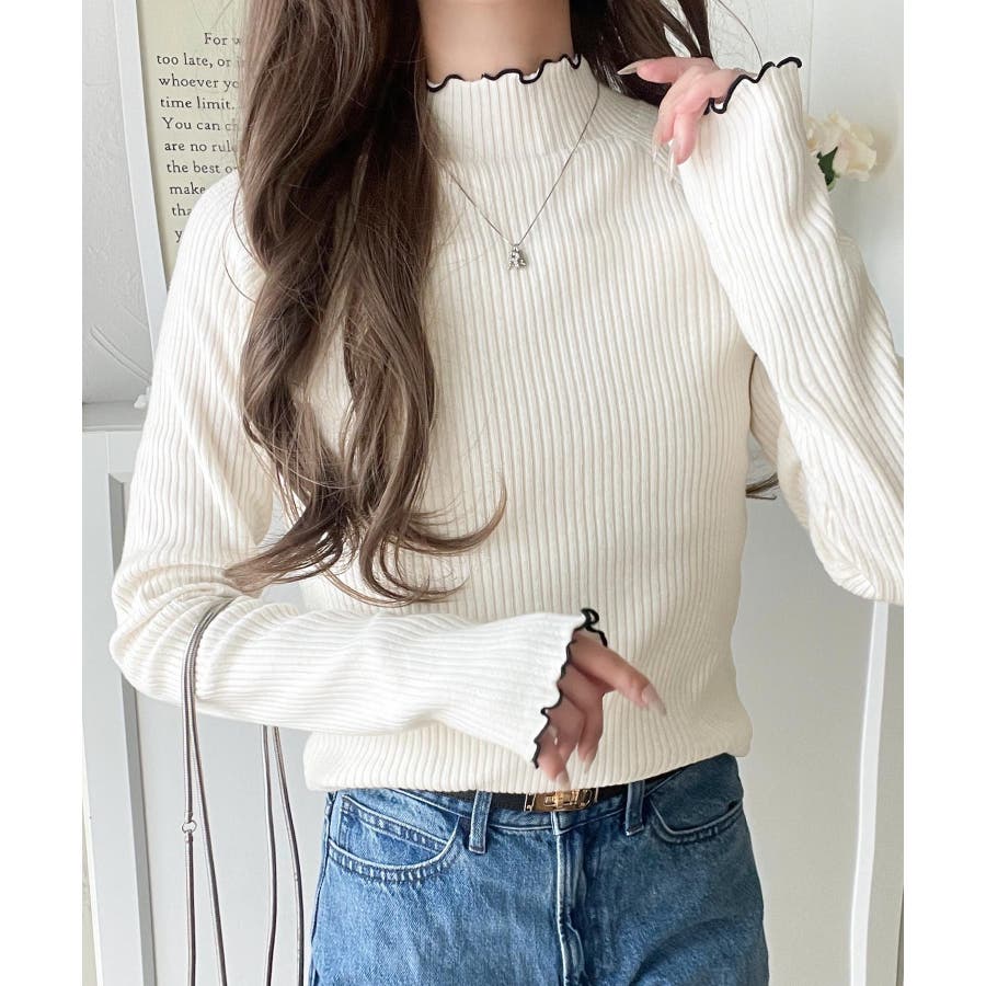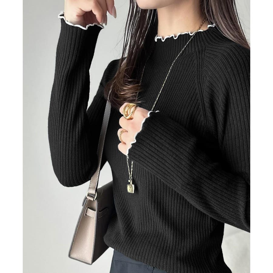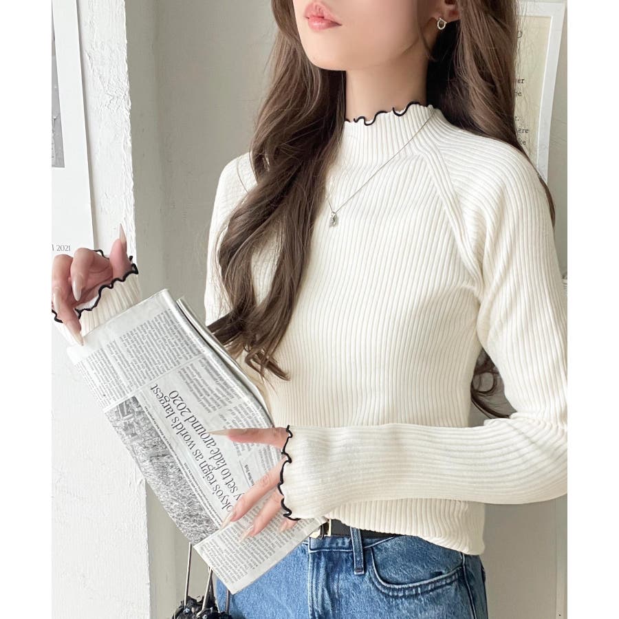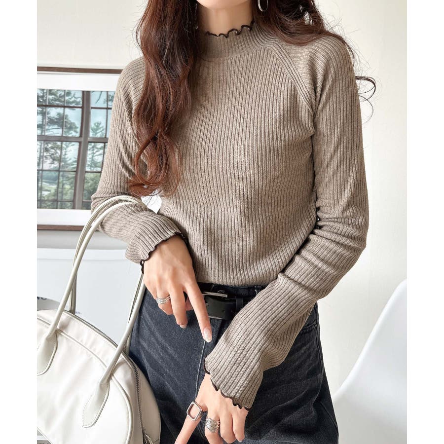 華奢見え叶える程よいフィット感。配色メロウリブニットトップス(長袖)