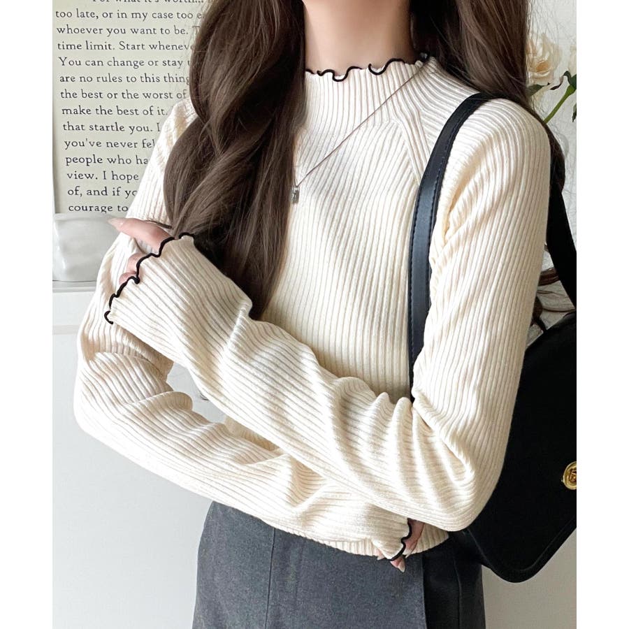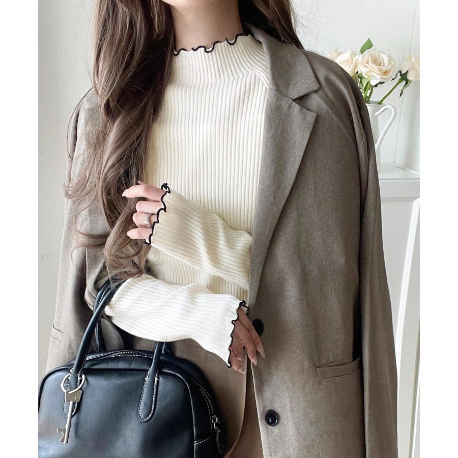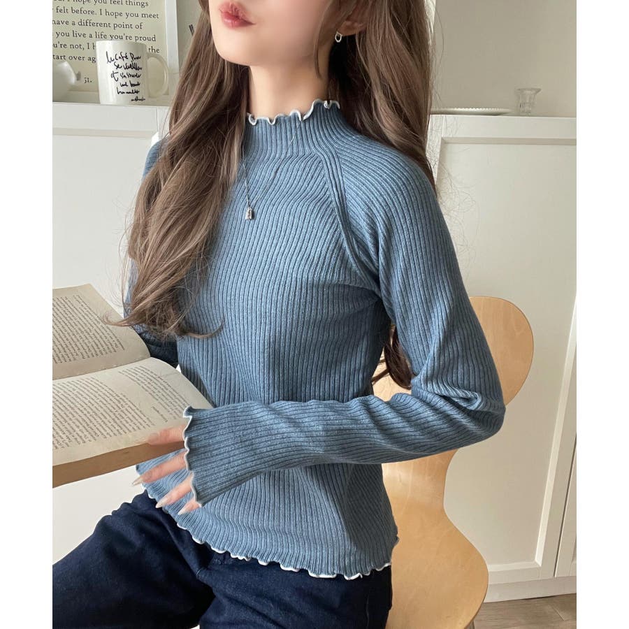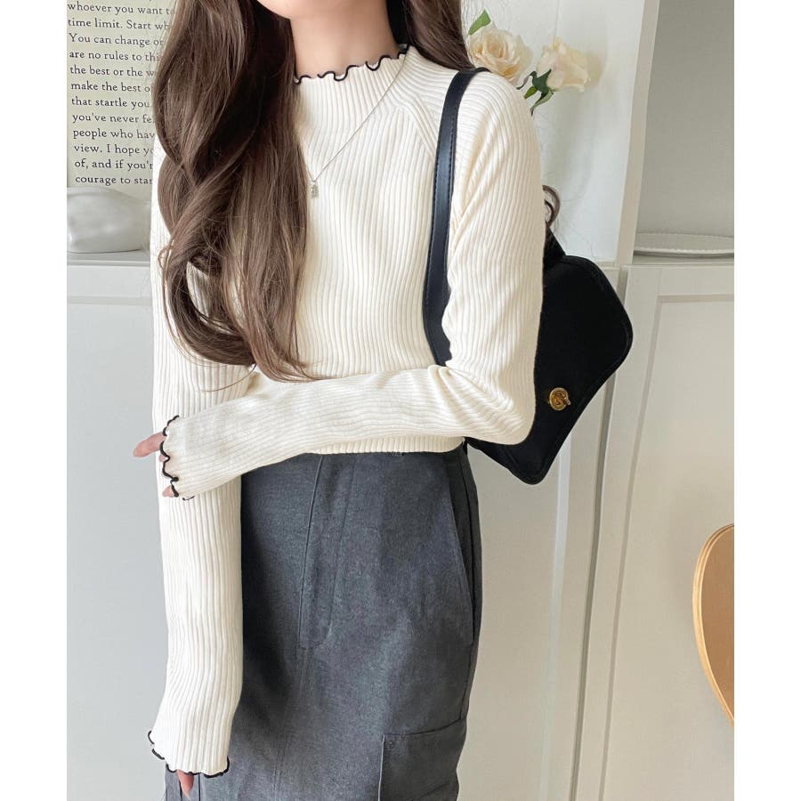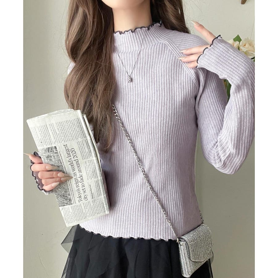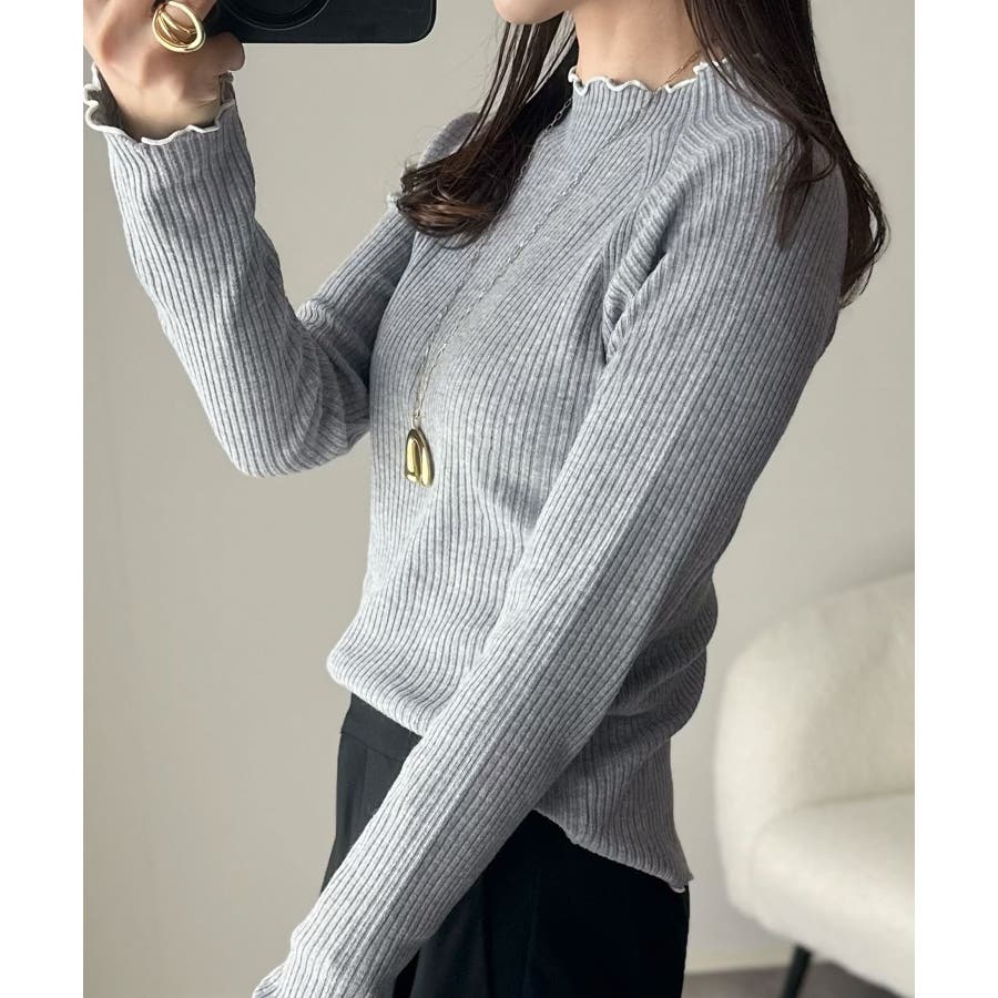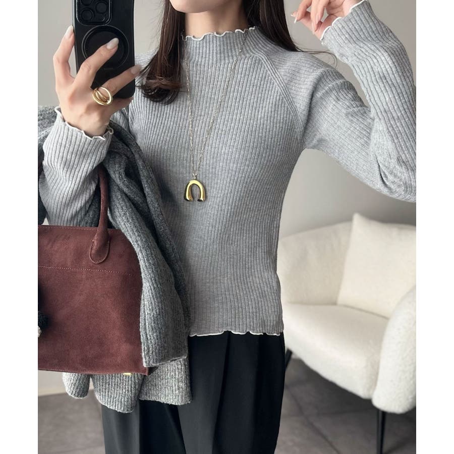 華奢見え叶える程よいフィット感。配色メロウリブニットトップス(長袖)