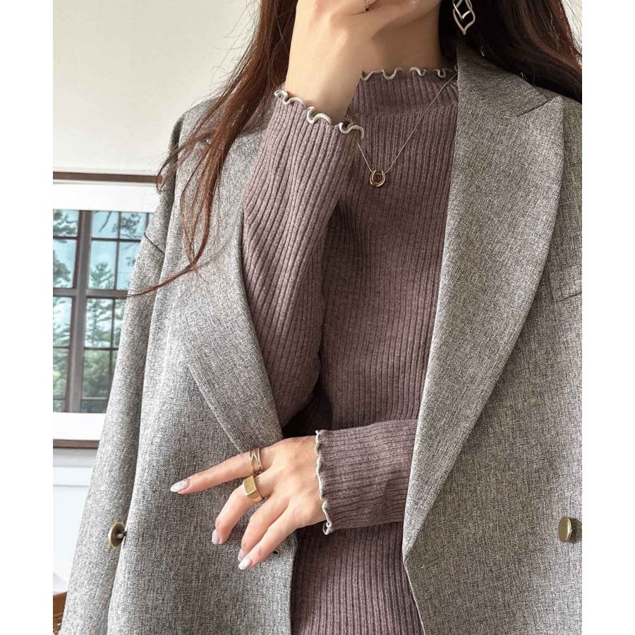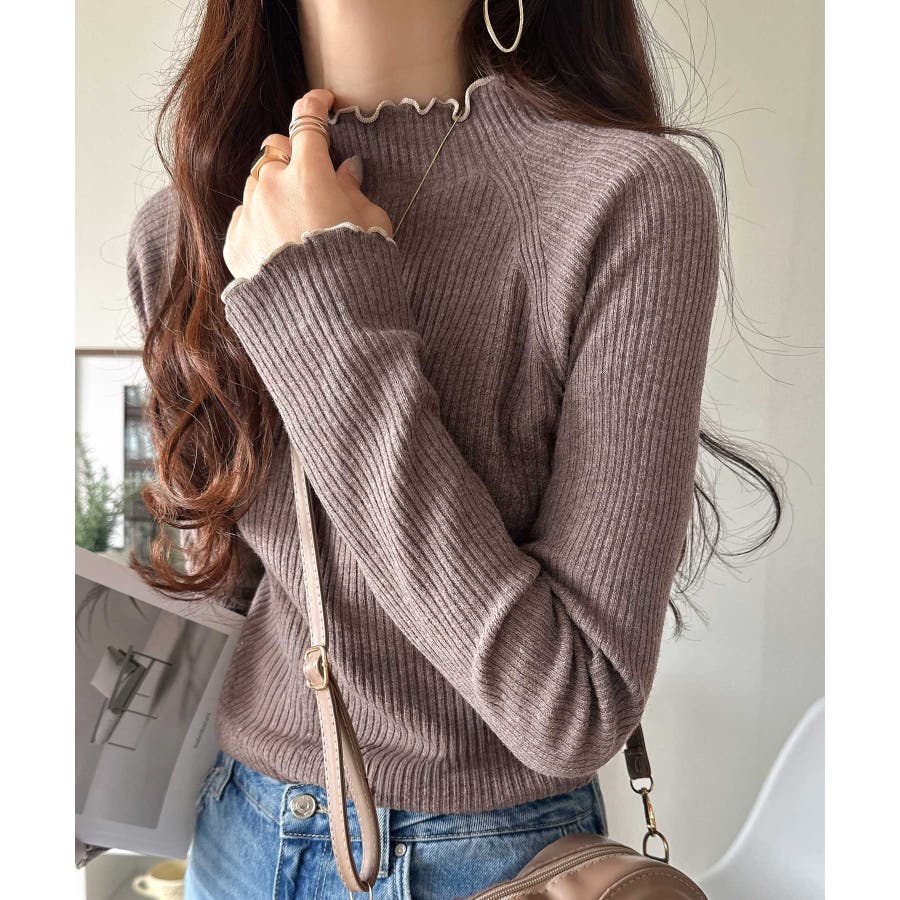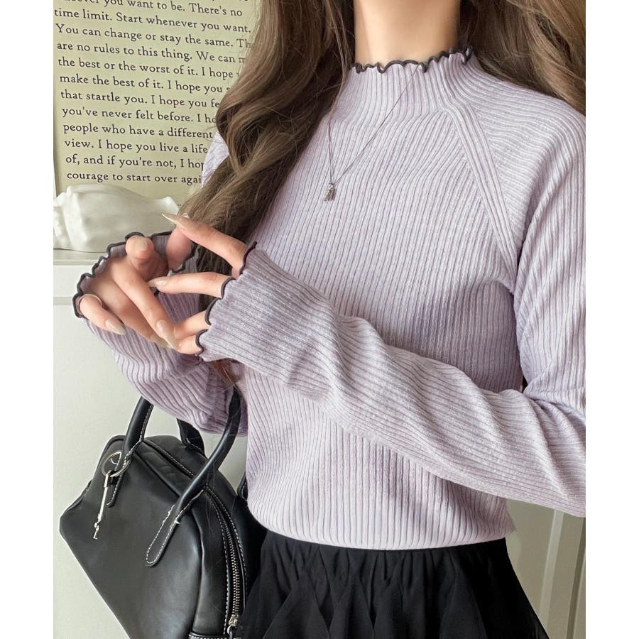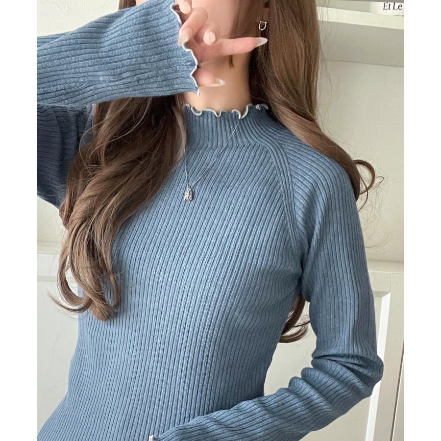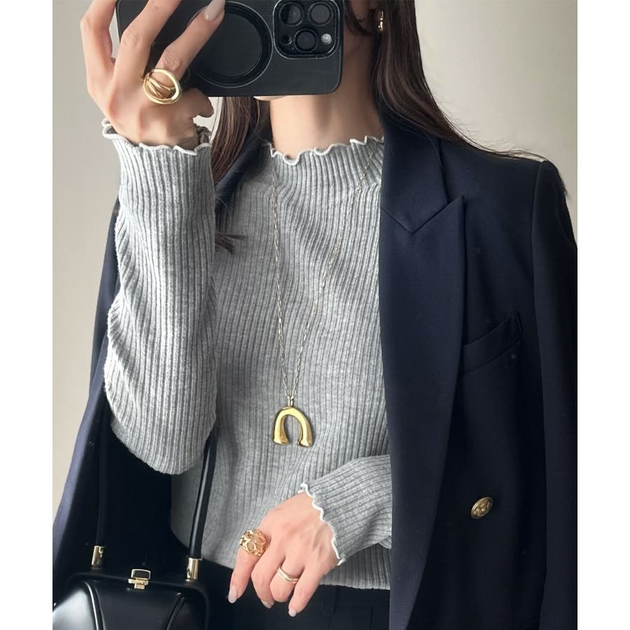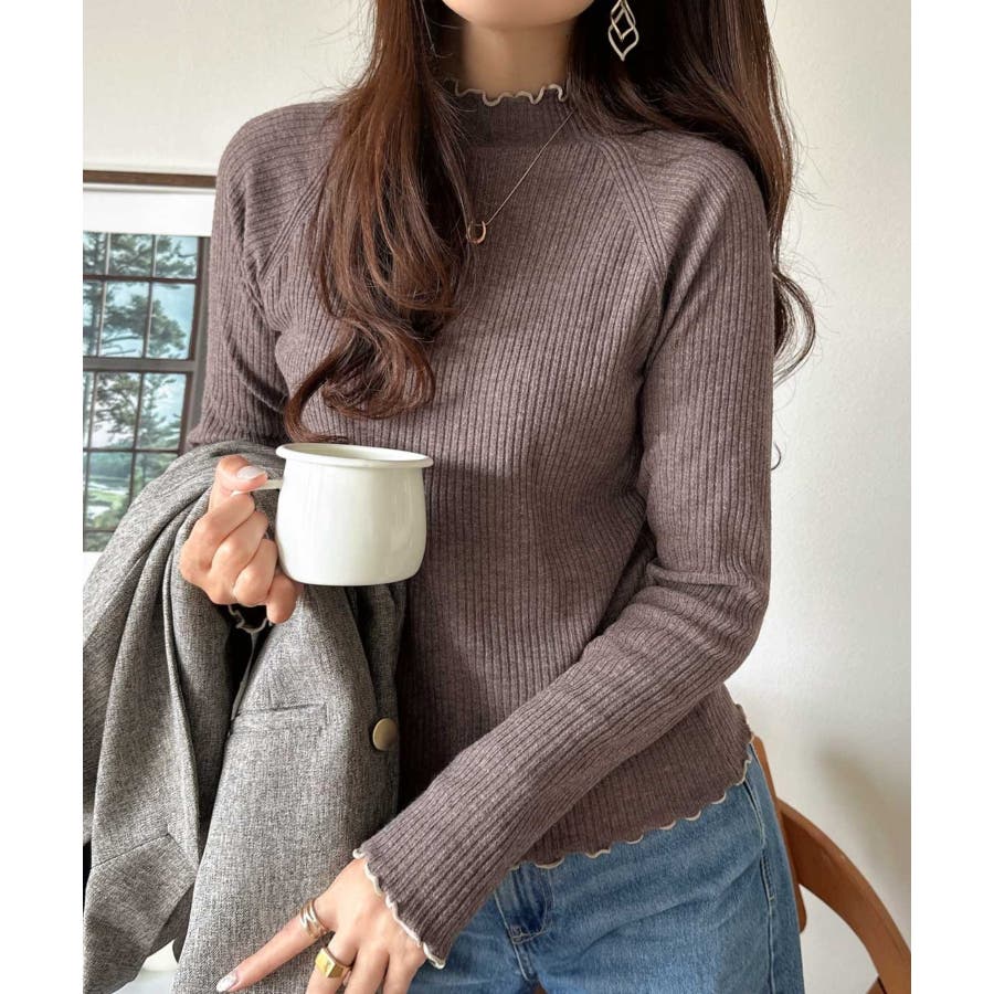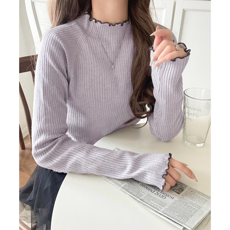 華奢見え叶える程よいフィット感。配色メロウリブニットトップス(長袖)