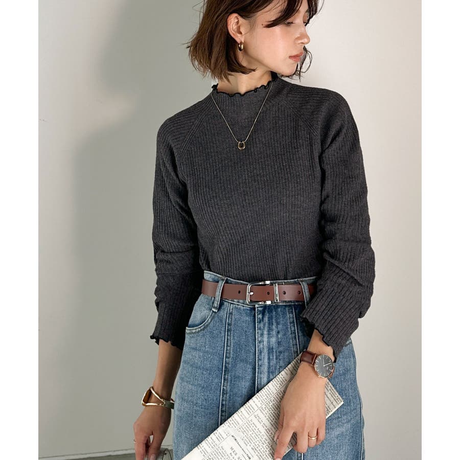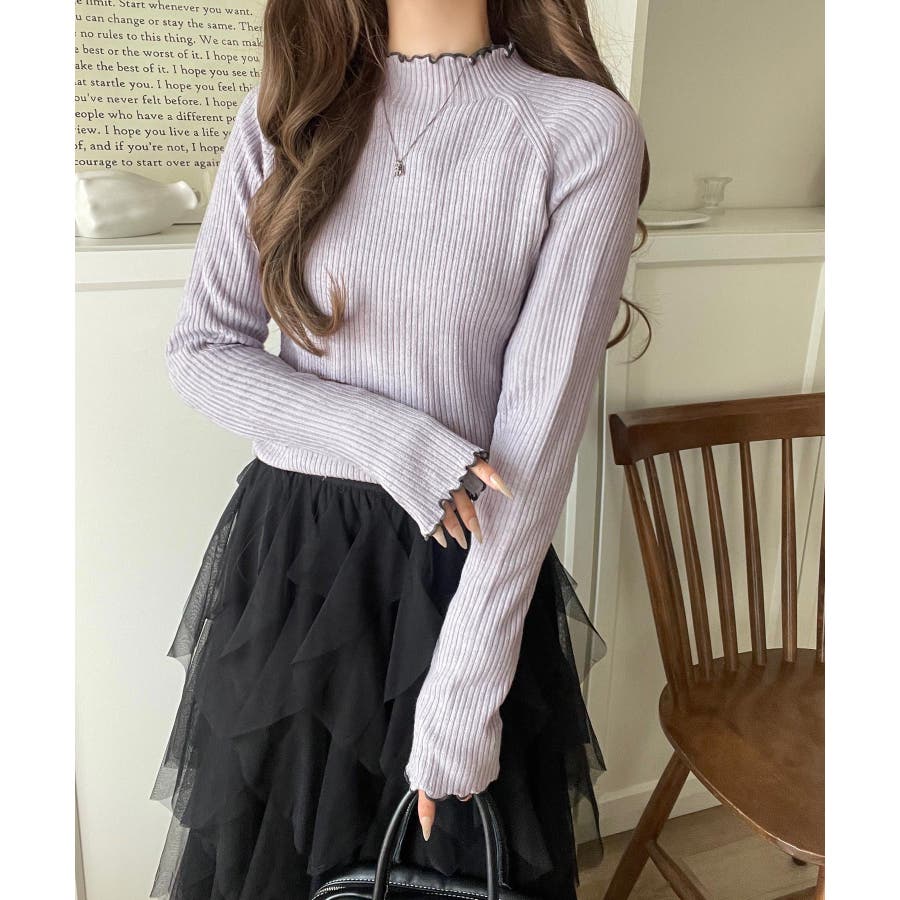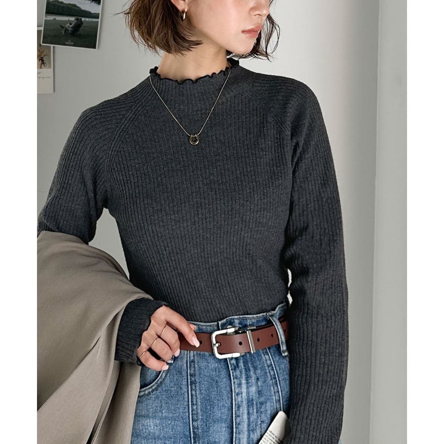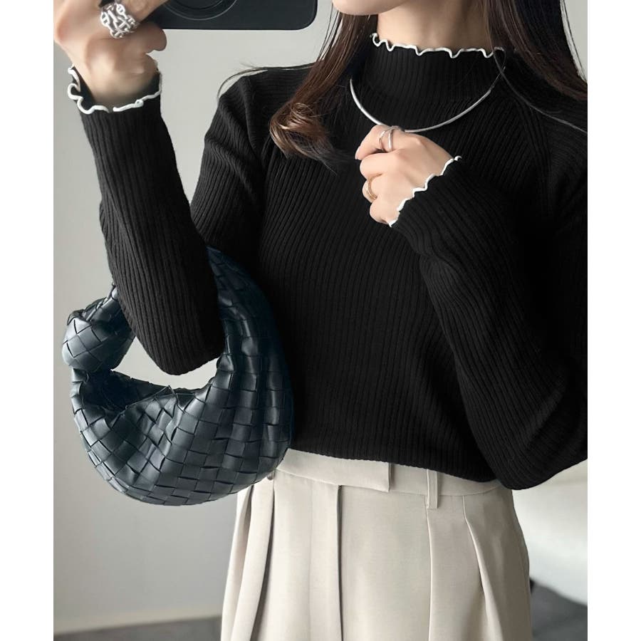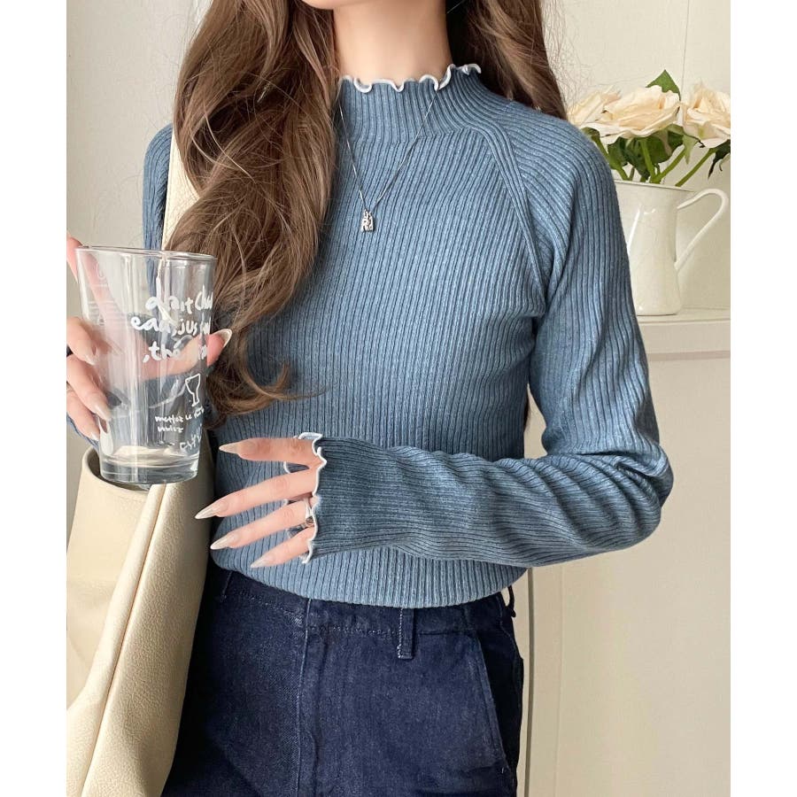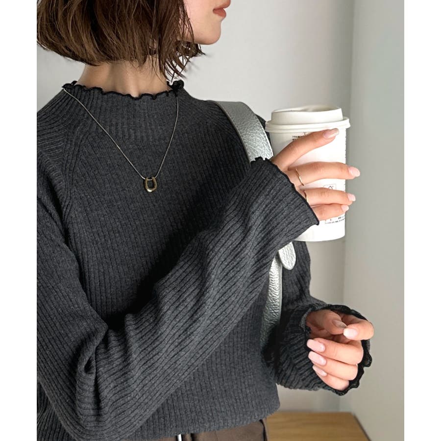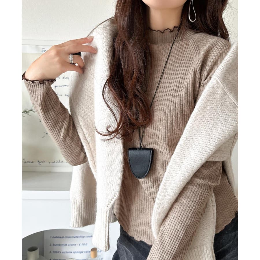 華奢見え叶える程よいフィット感。配色メロウリブニットトップス(長袖)