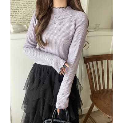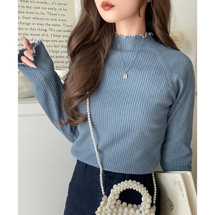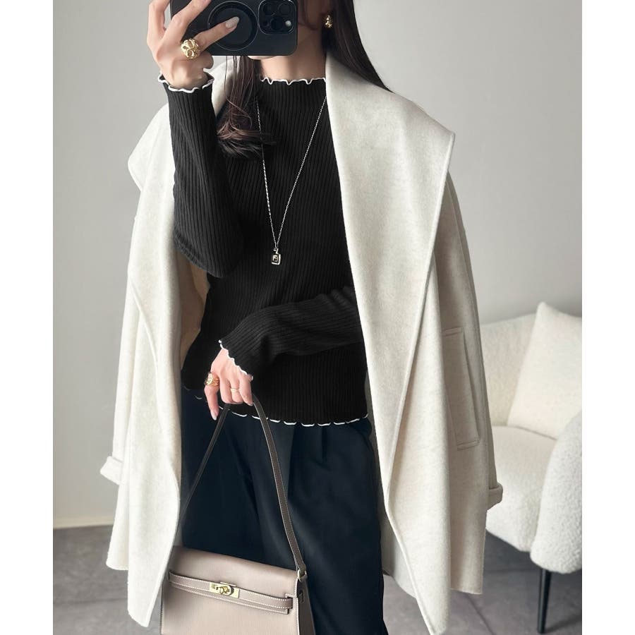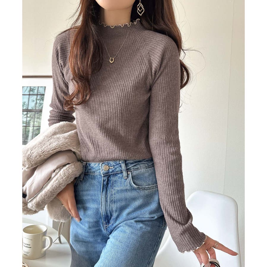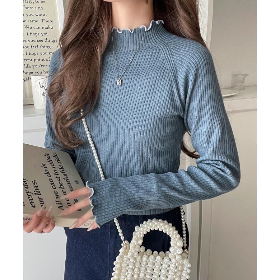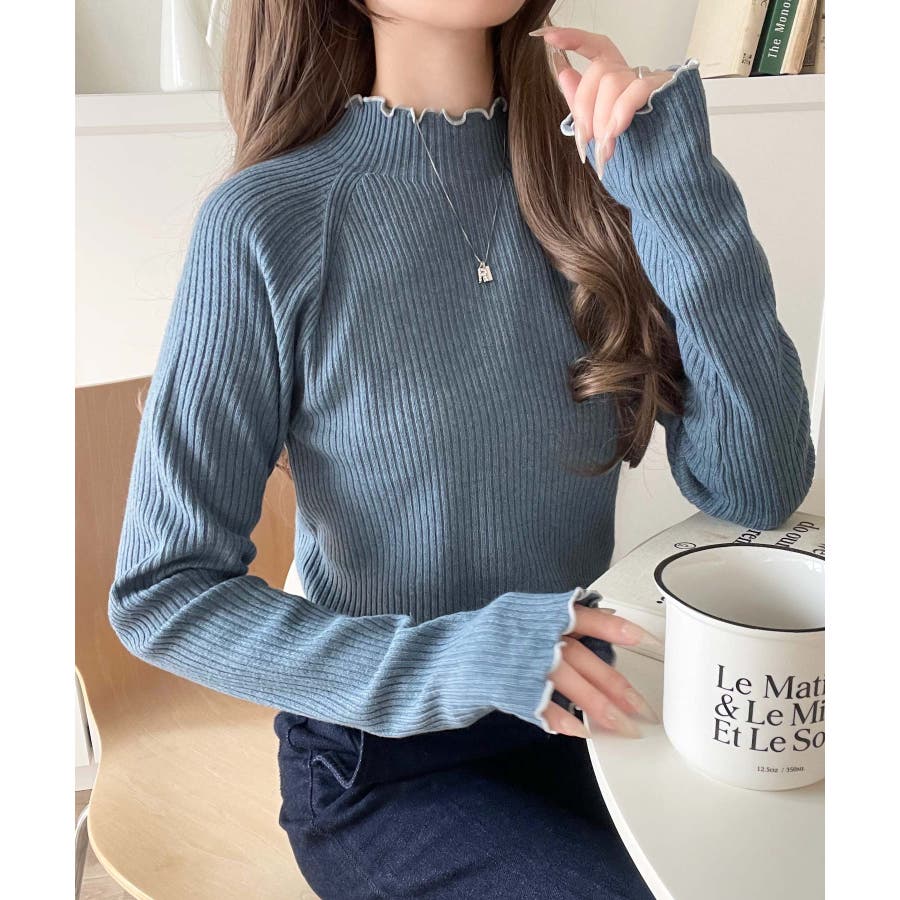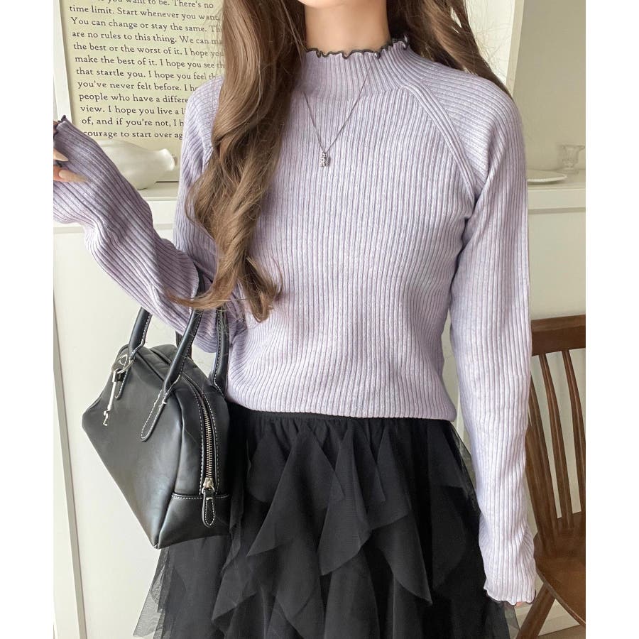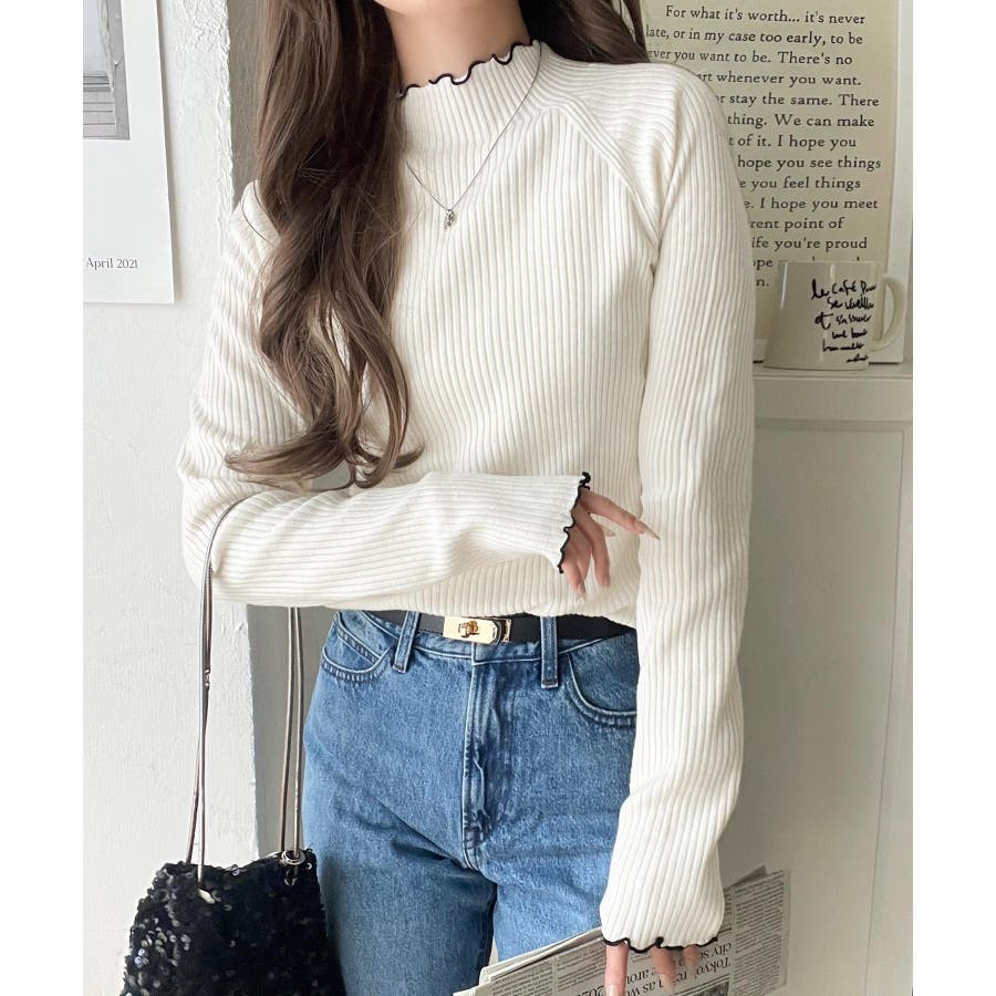 華奢見え叶える程よいフィット感。配色メロウリブニットトップス(長袖)