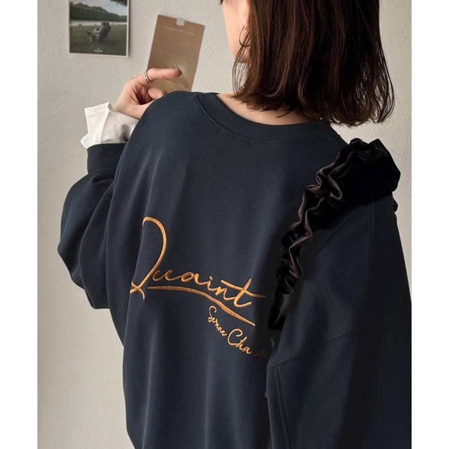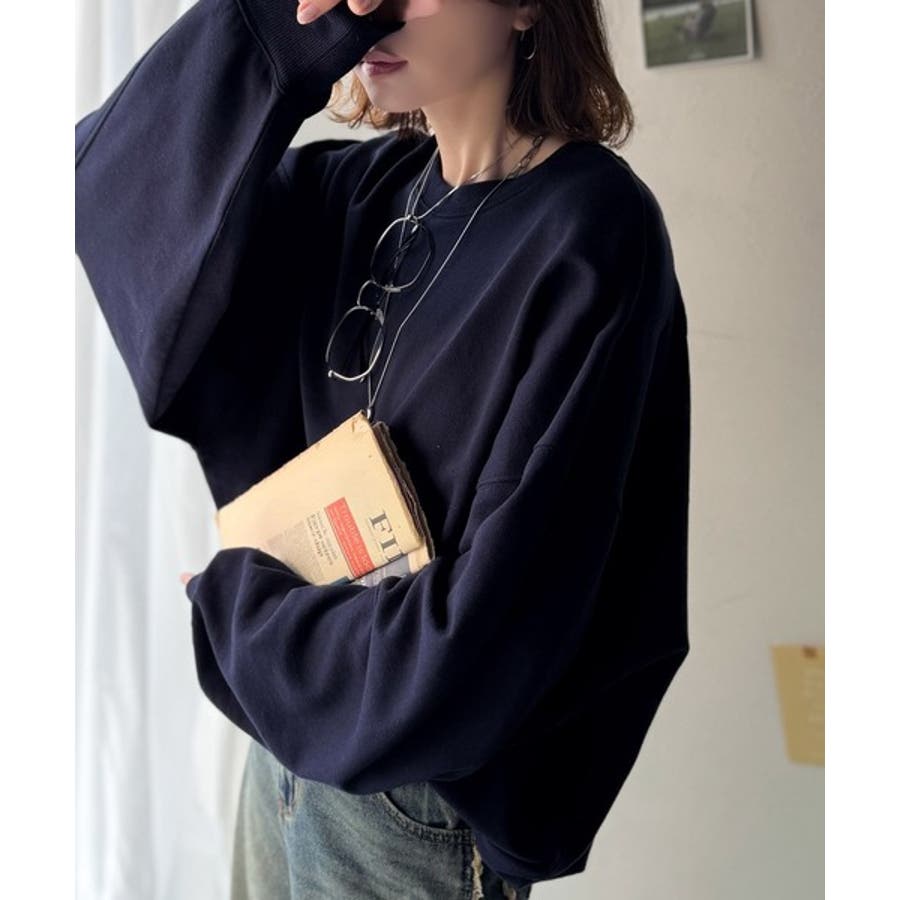 大きめのサイン刺繍が印象的な裏毛スウェット。