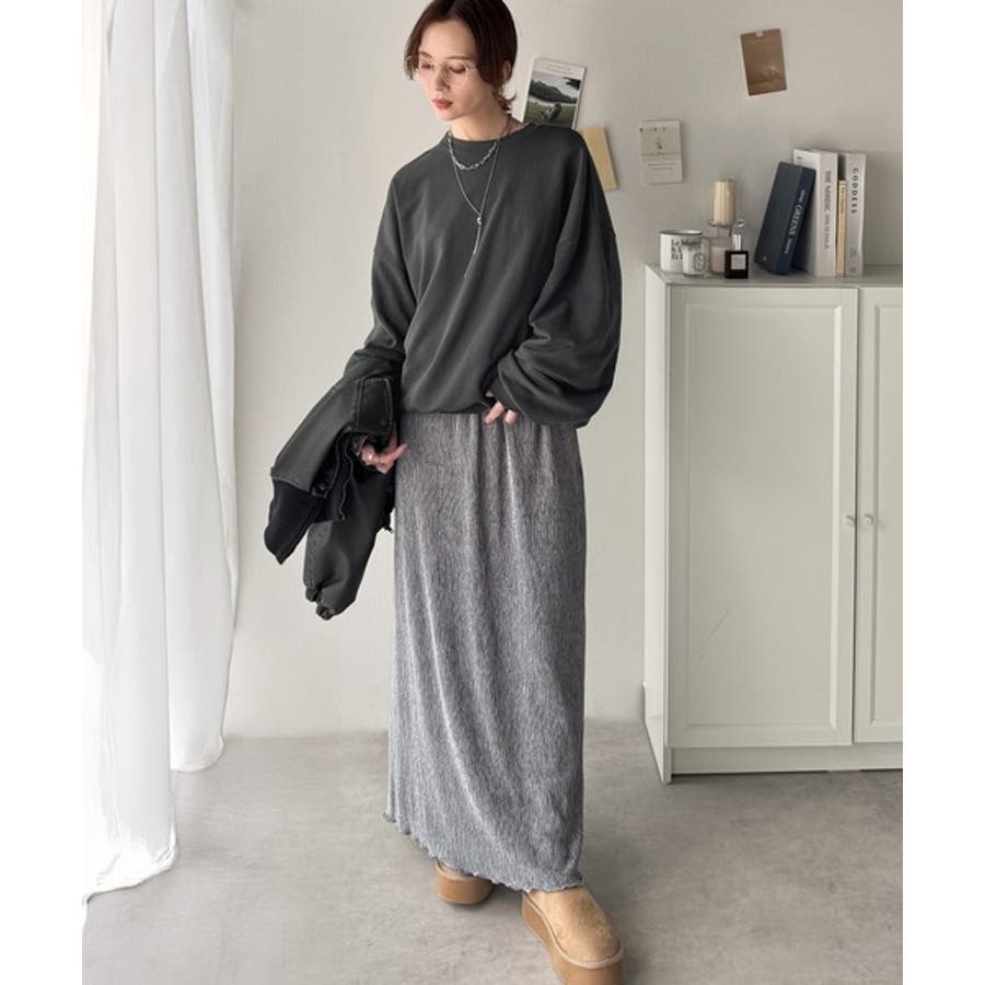 シルエットは程よくゆとりのあるルーズフィットで、リラックス感がありつつもすっきりと大人っぽい雰囲気に仕上げてくれるのがポイント。