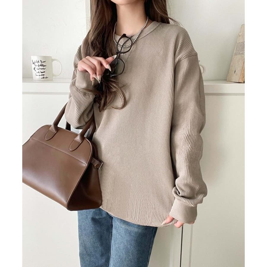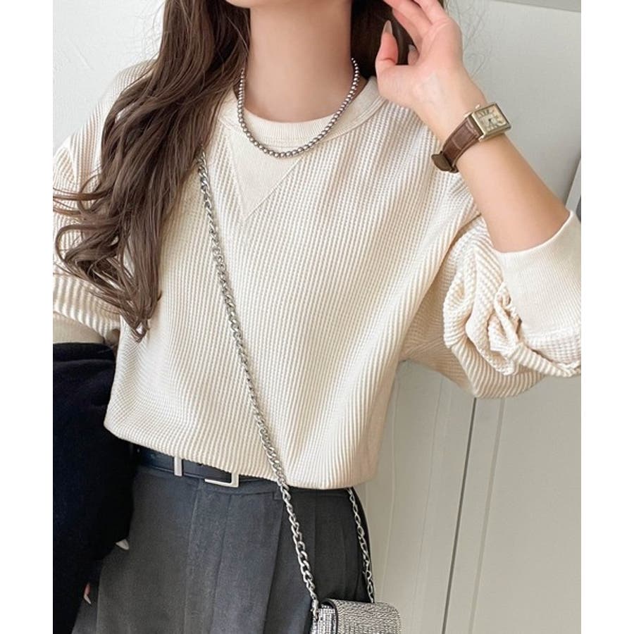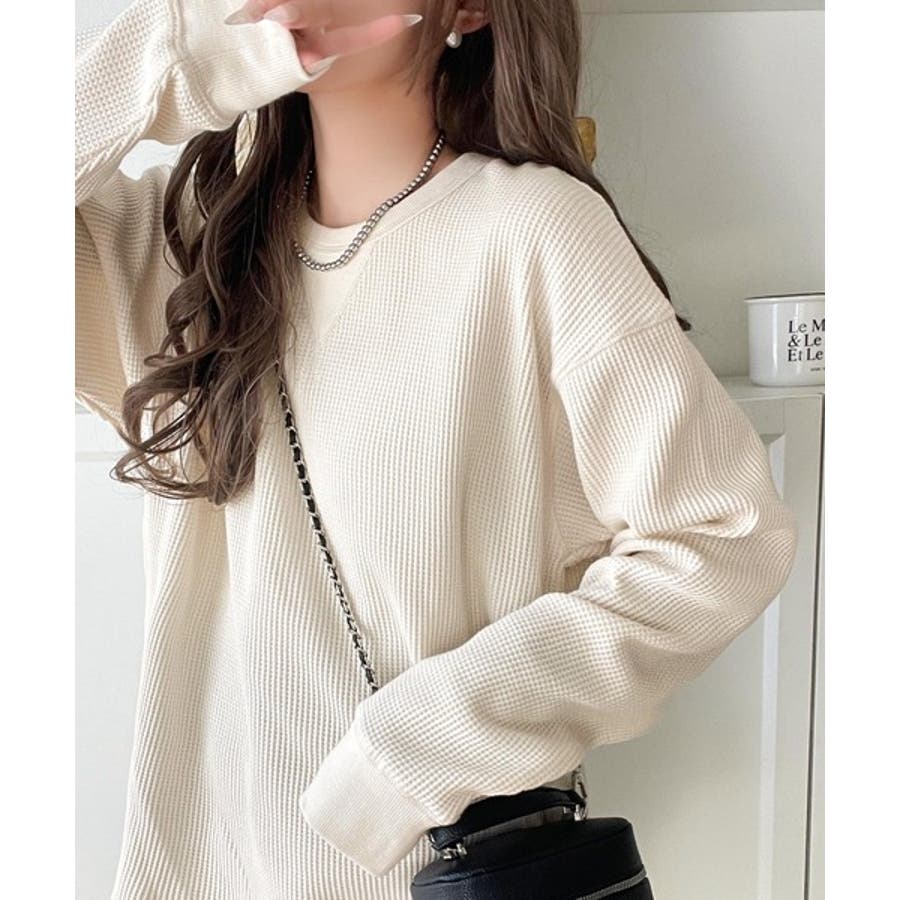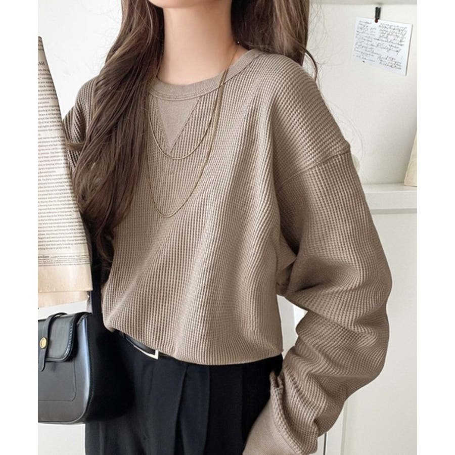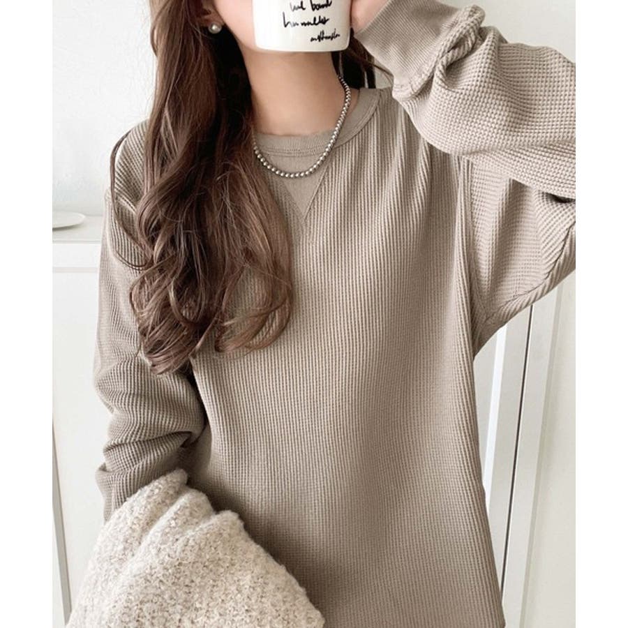ニュアンスカラーで垢抜けお洒落♪綿100%ガゼット付きワッフルロンT(長袖)