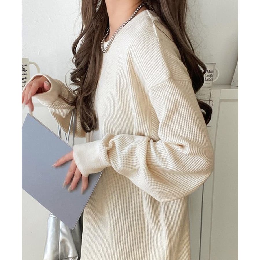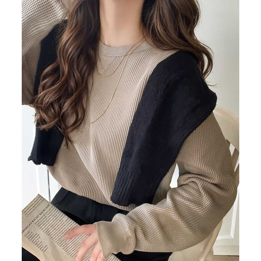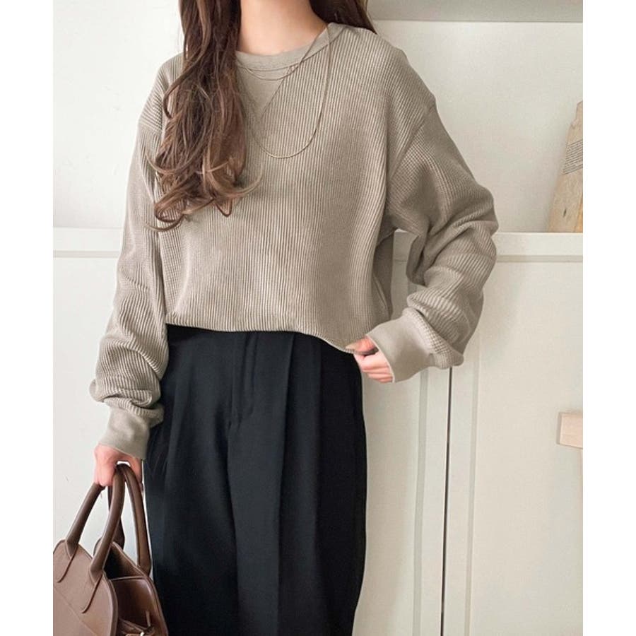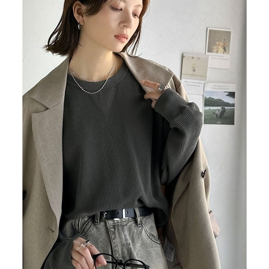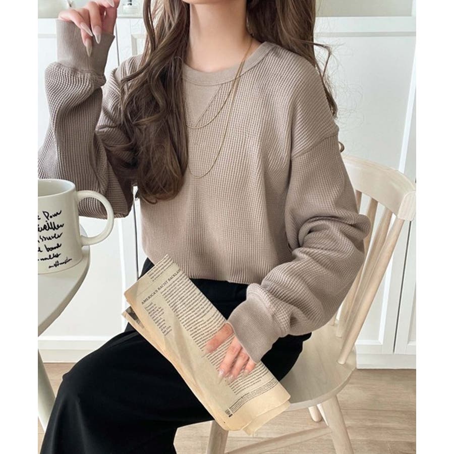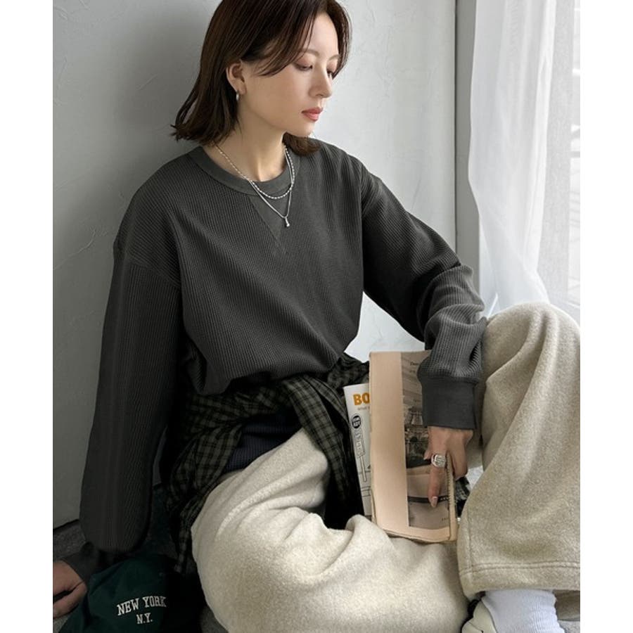 ニュアンスカラーで垢抜けお洒落♪綿100%ガゼット付きワッフルロンT(長袖)