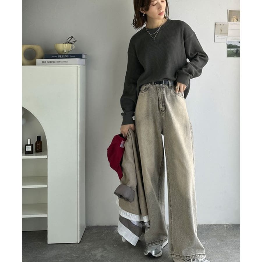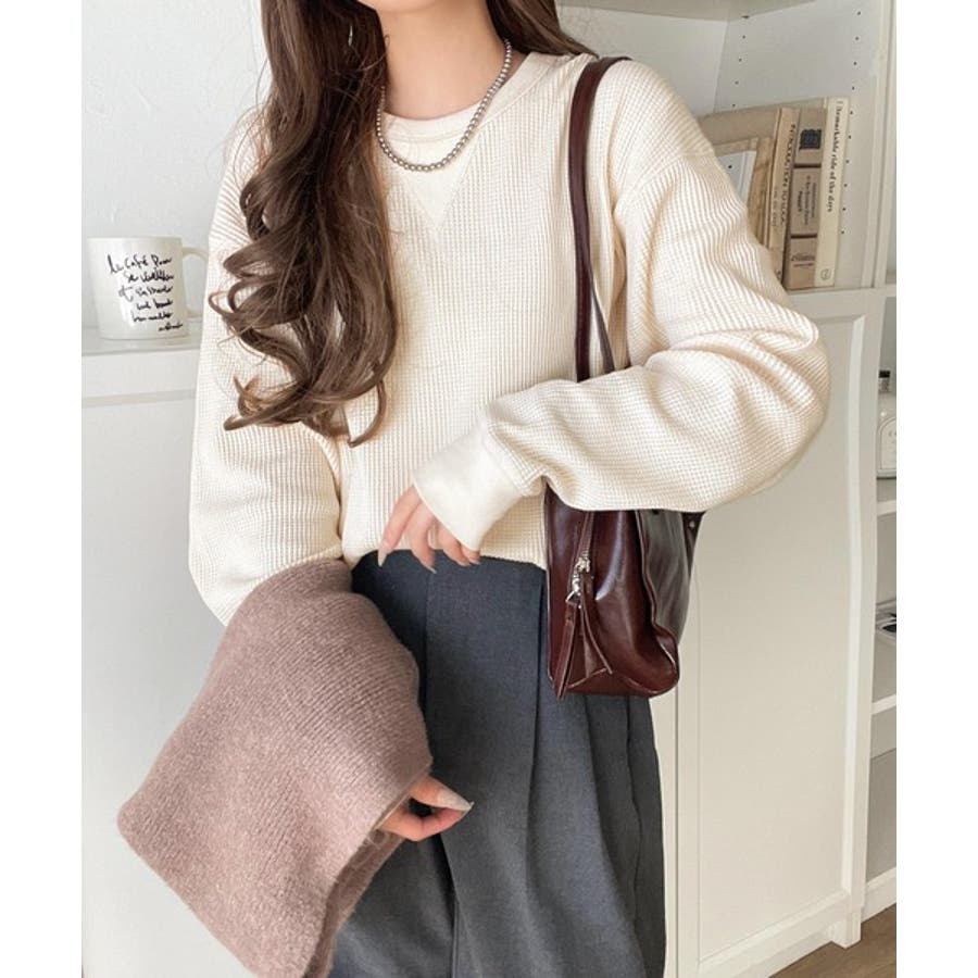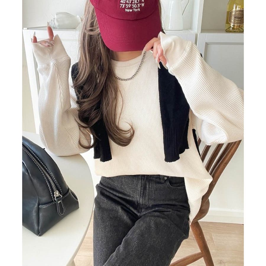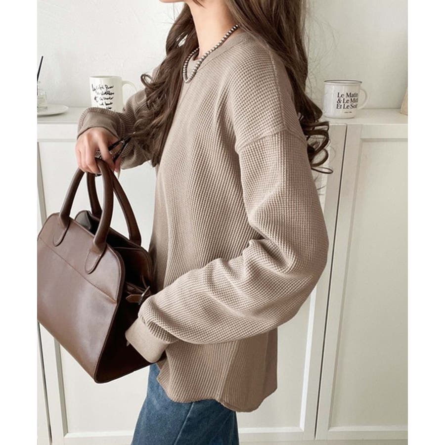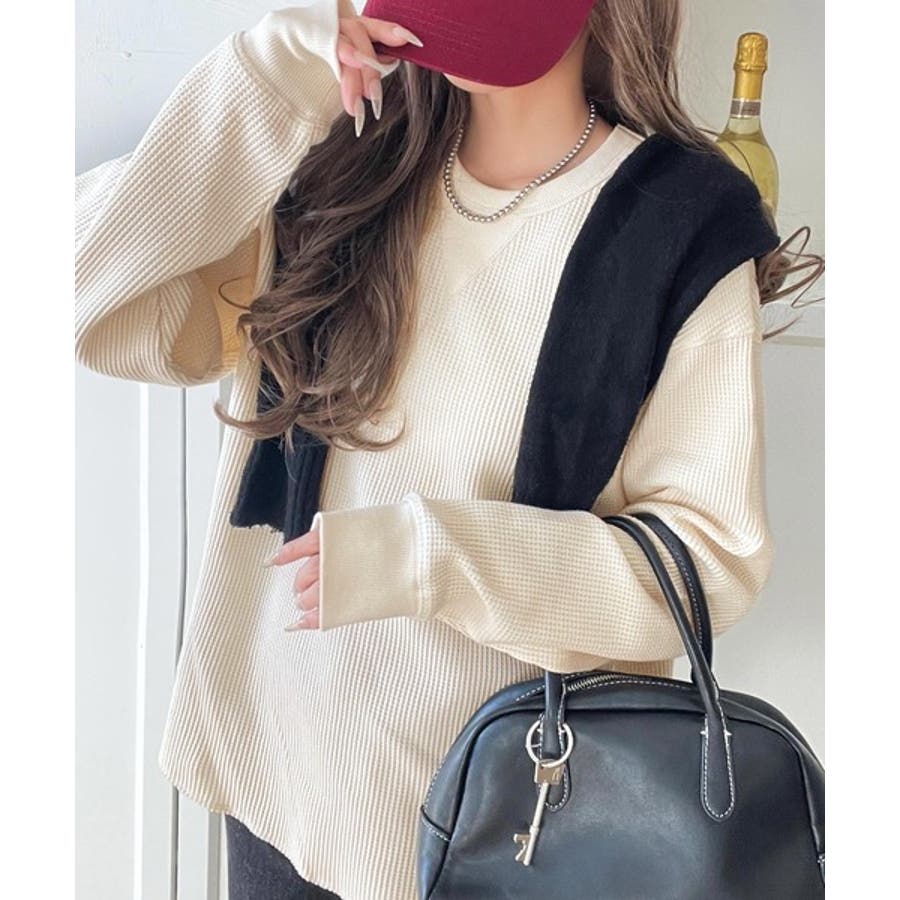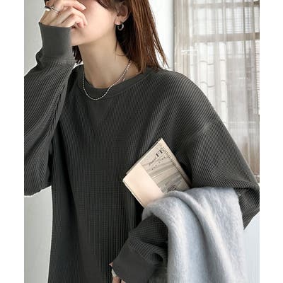 ニュアンスカラーで垢抜けお洒落♪綿100%ガゼット付きワッフルロンT(長袖)