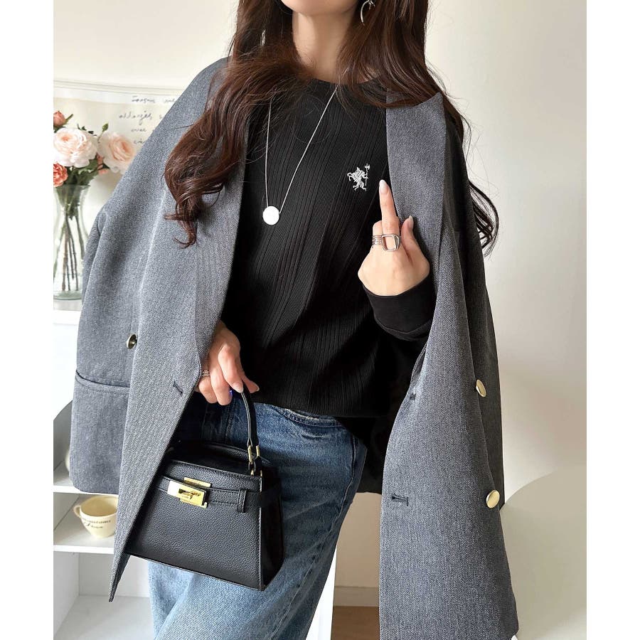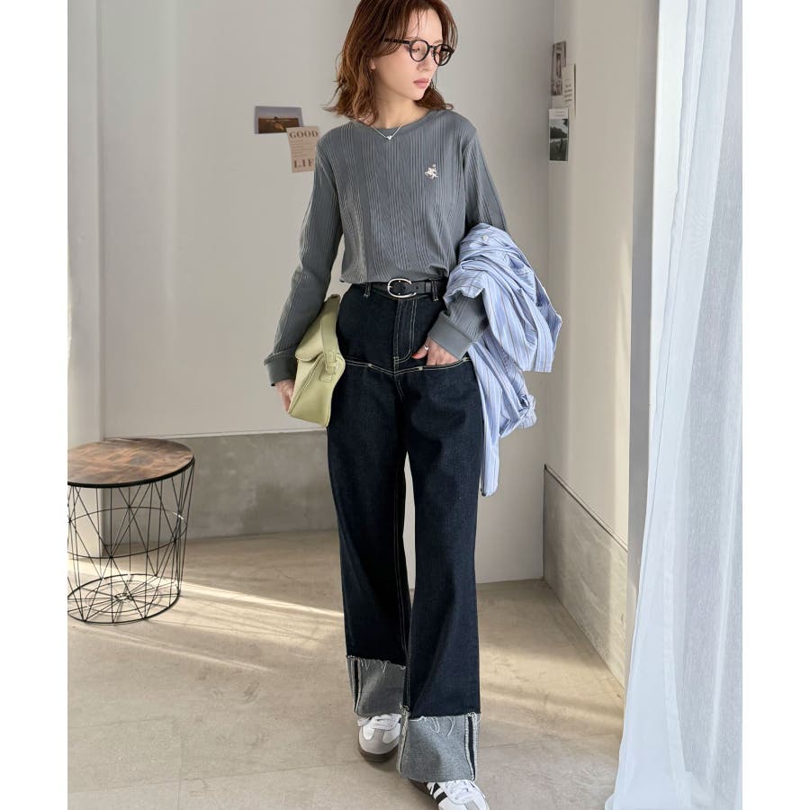 すっきりラインなのでゆったりとしたワイドパンツや、ロングスカートとも合わせてお使いいただけます。