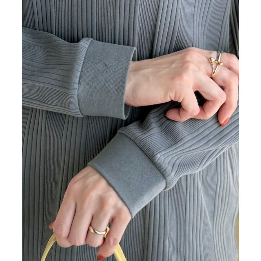 縦方向のラインが際立つランダムテレコ素材を使用し、女性らしい美しいシルエットを演出◎