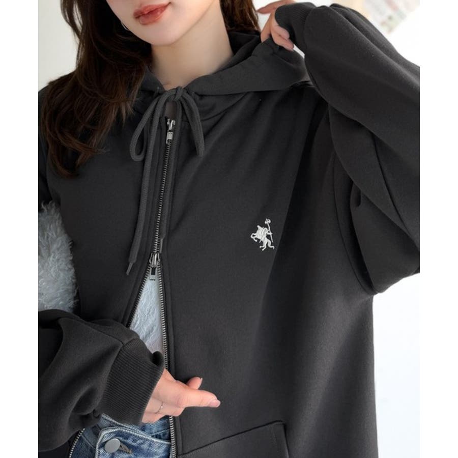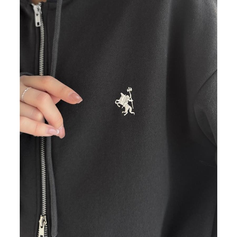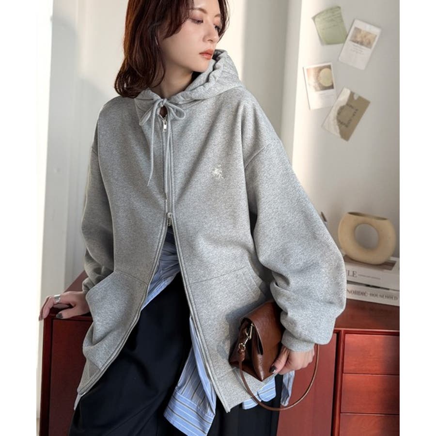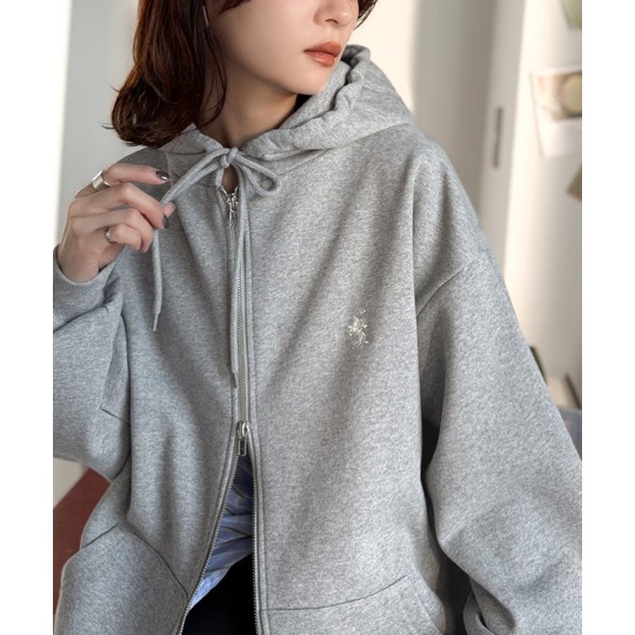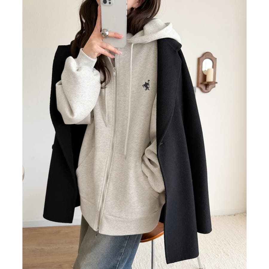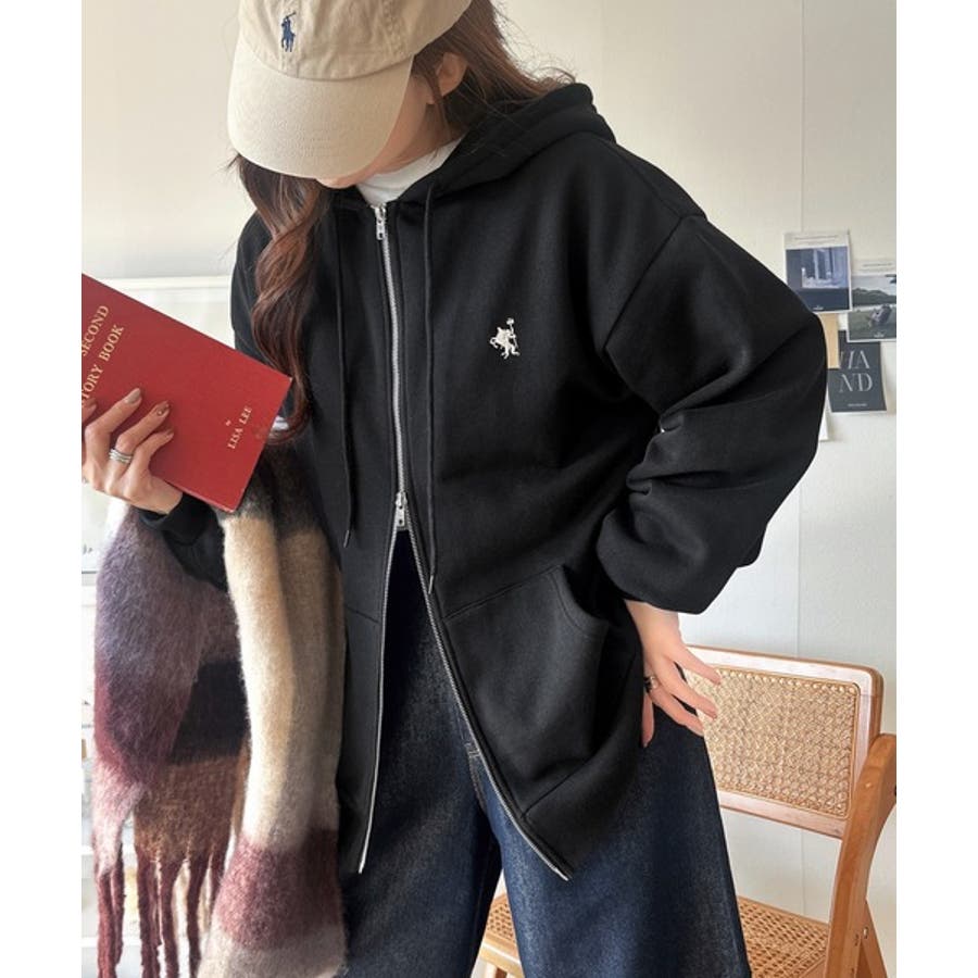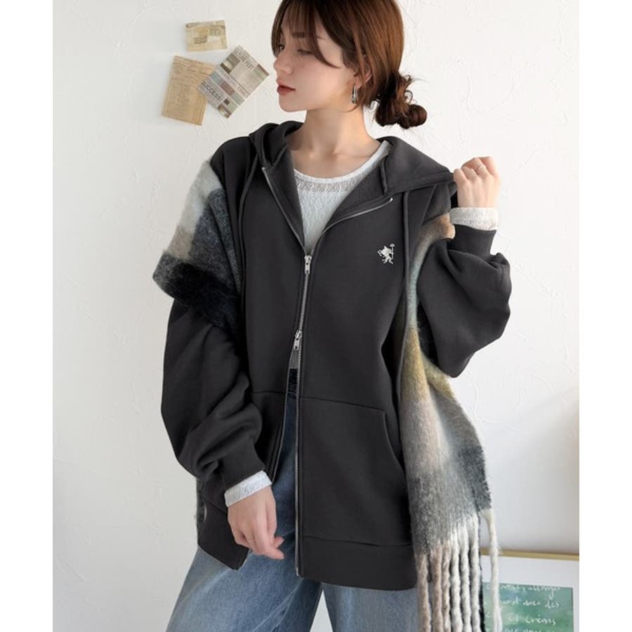 羽織って暖か、さらりと洒落感。胸元ワンポイント刺繍裏起毛ダブルジップパーカー