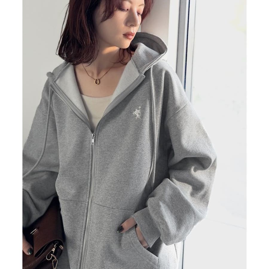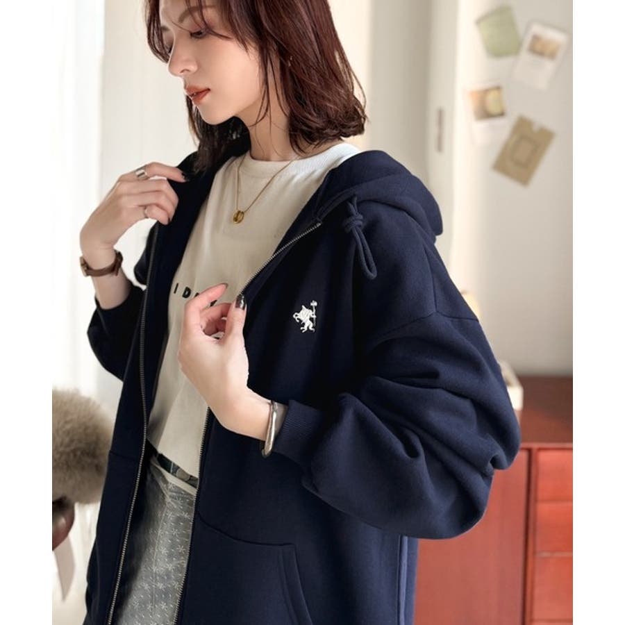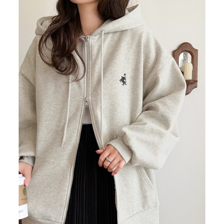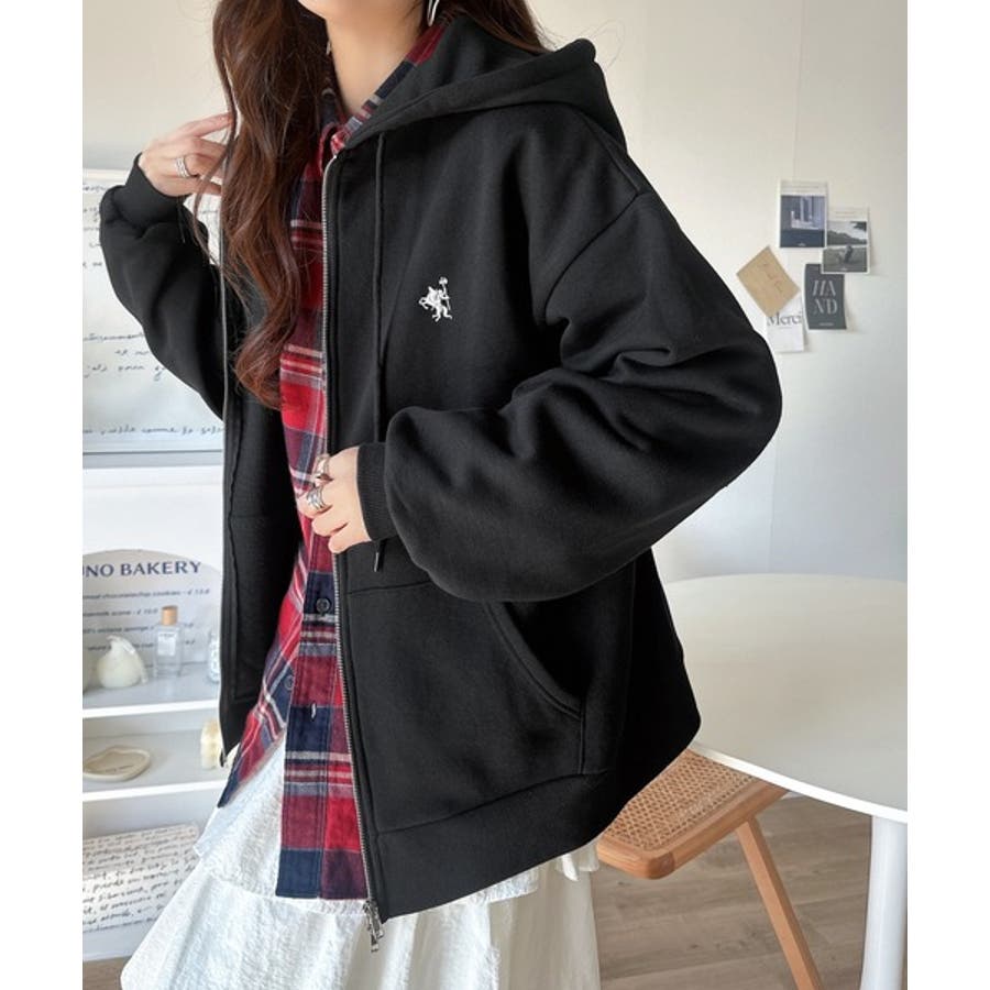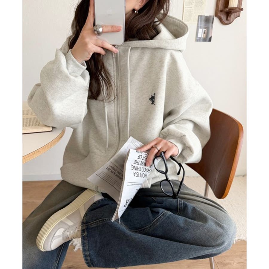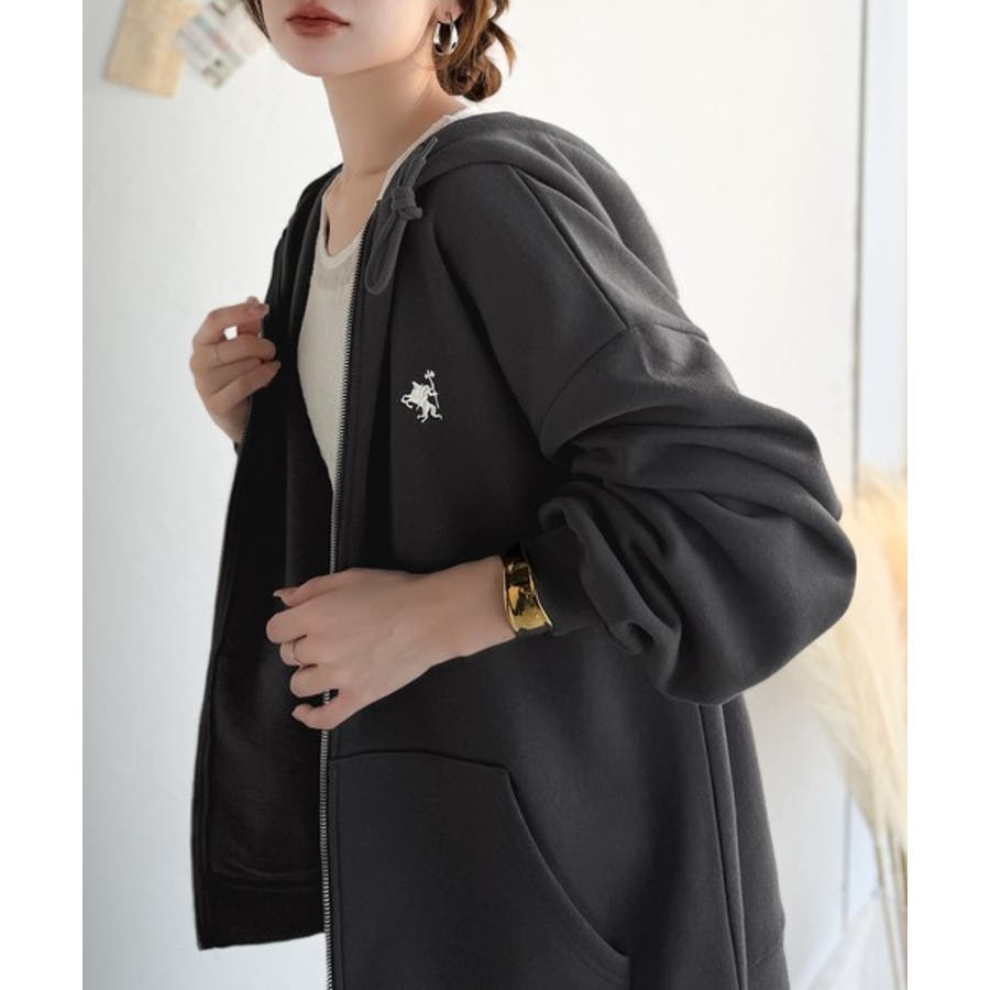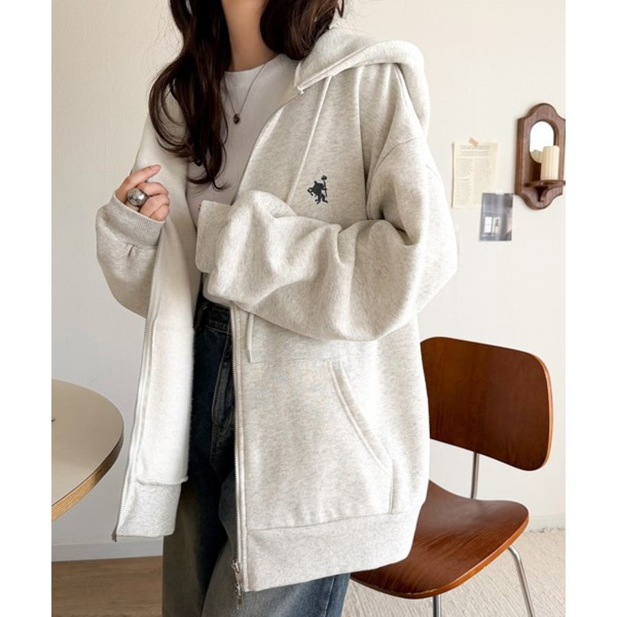 羽織って暖か、さらりと洒落感。胸元ワンポイント刺繍裏起毛ダブルジップパーカー