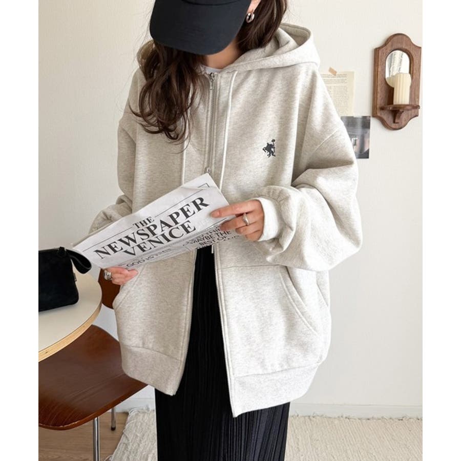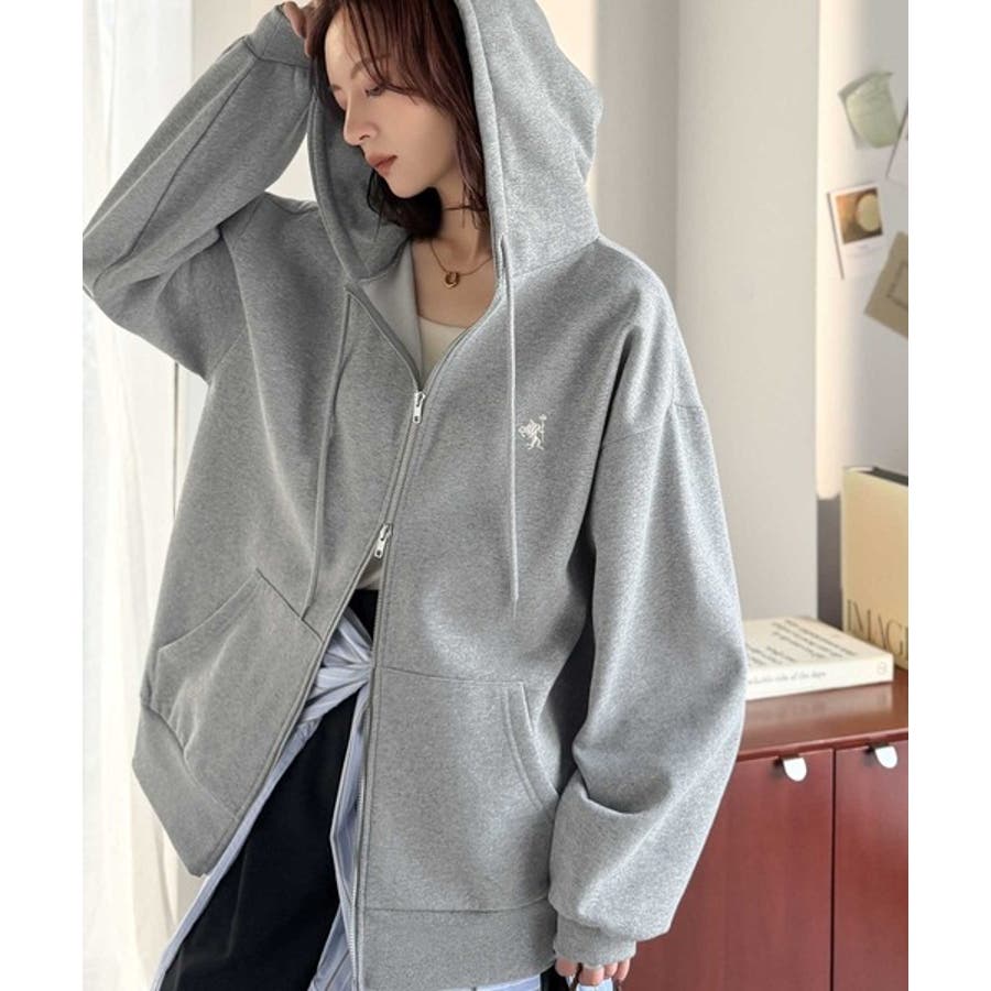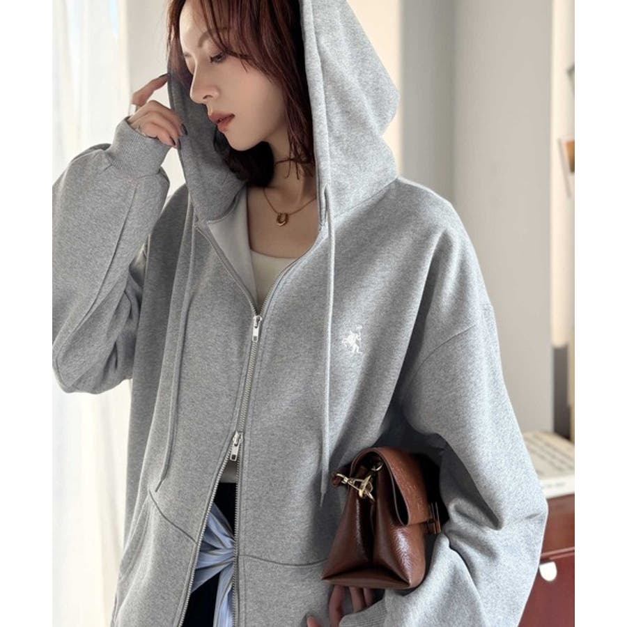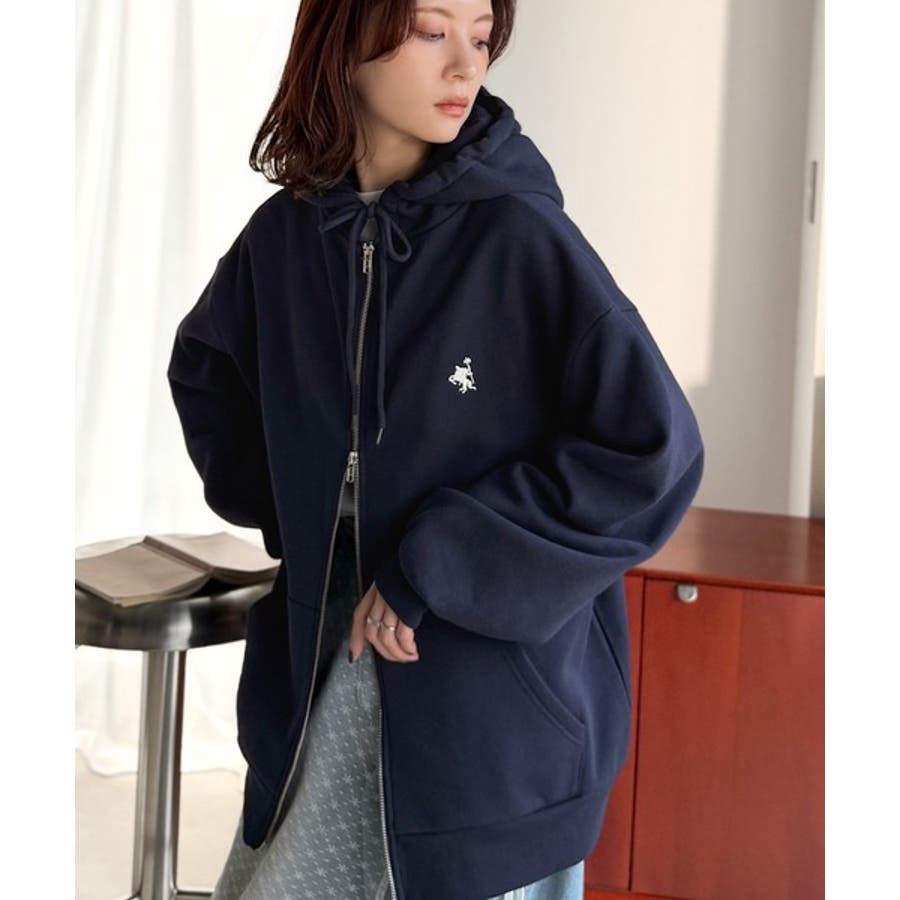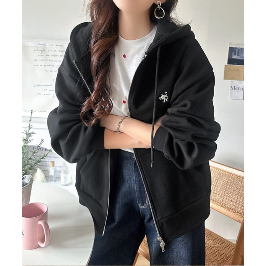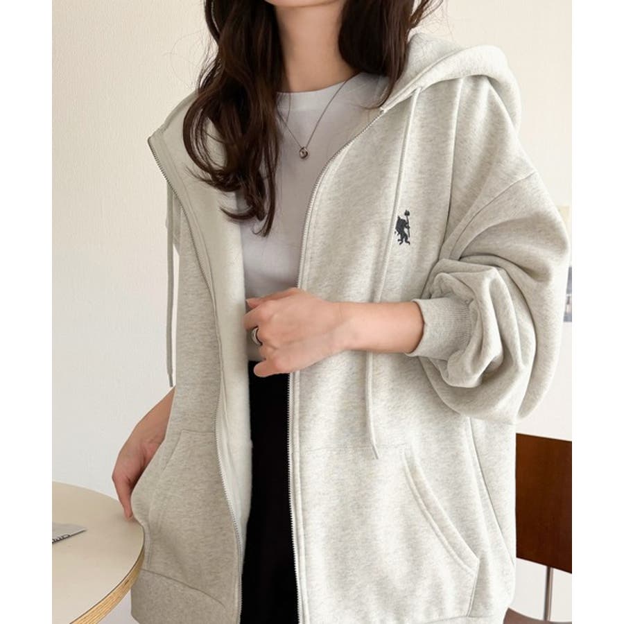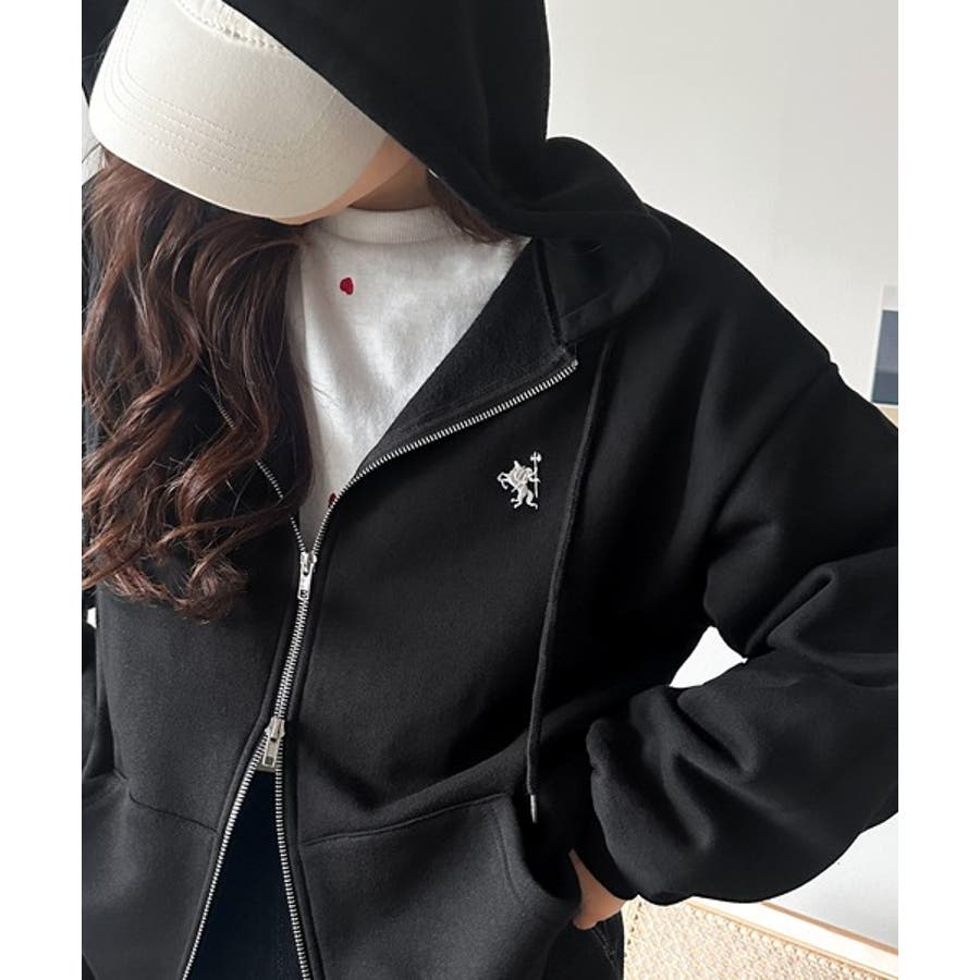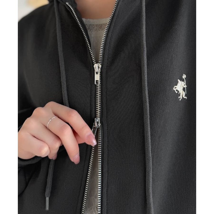 羽織って暖か、さらりと洒落感。胸元ワンポイント刺繍裏起毛ダブルジップパーカー