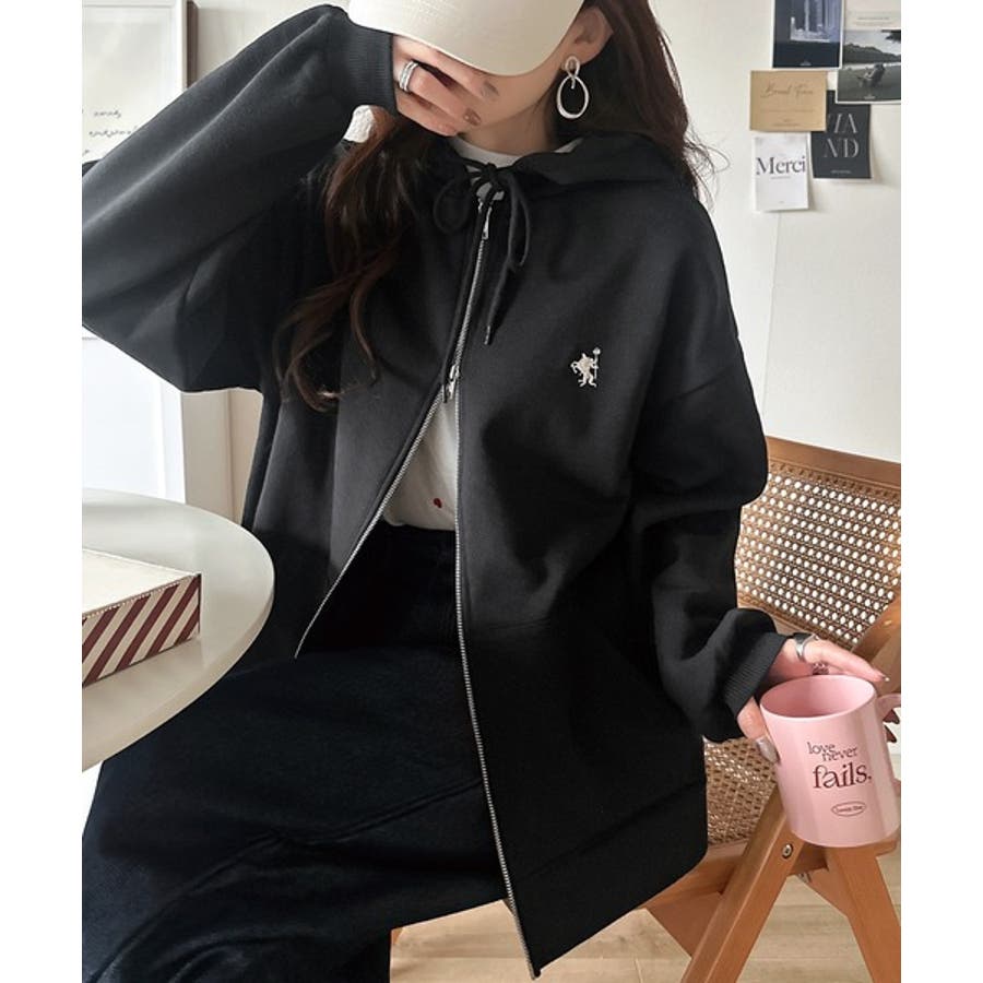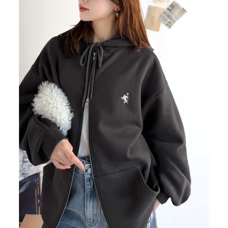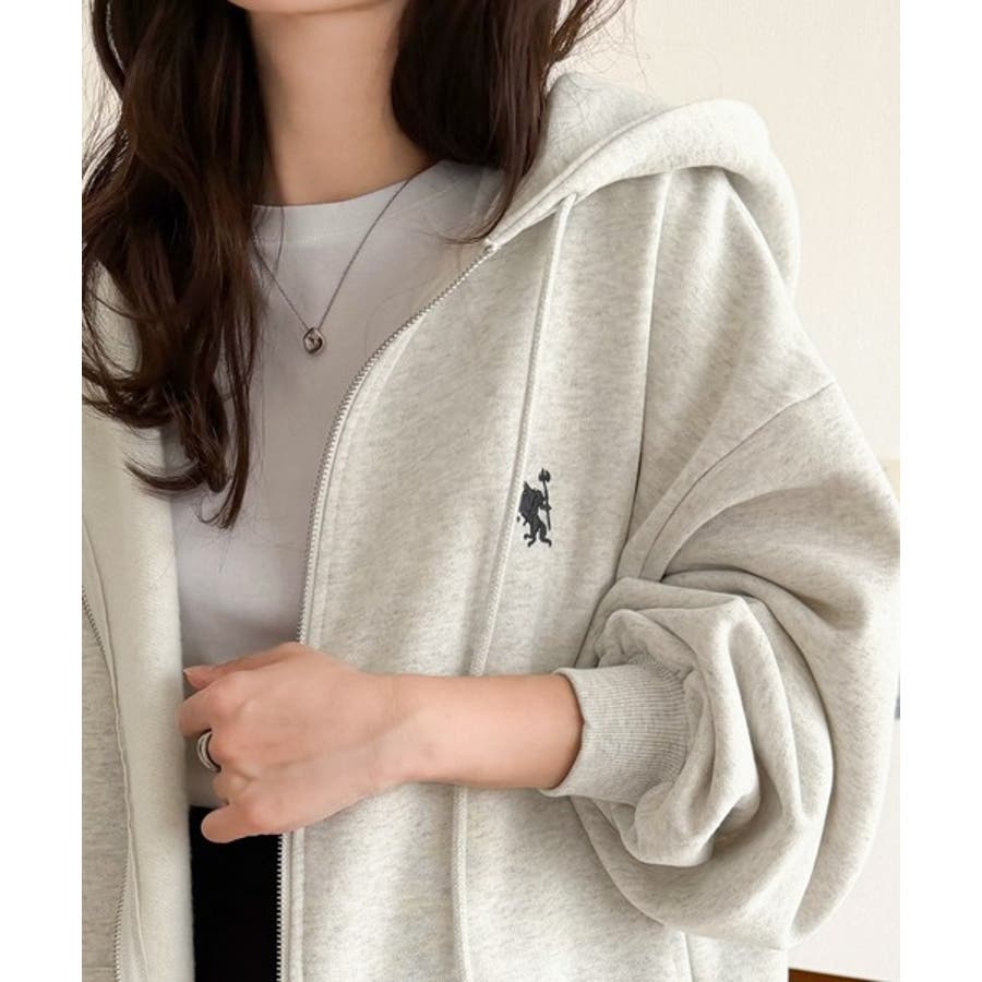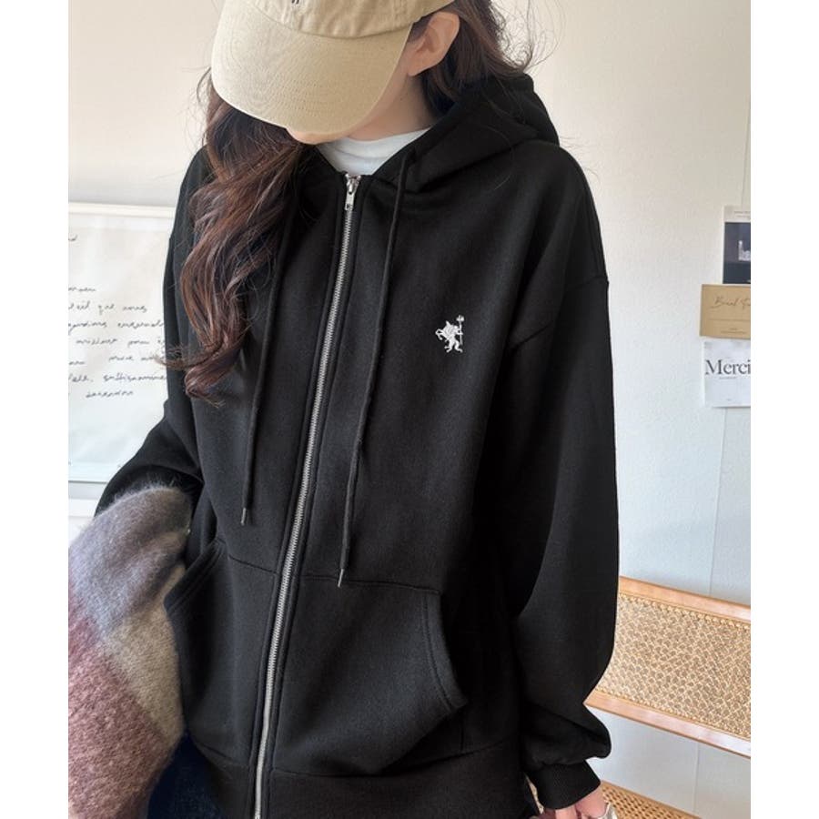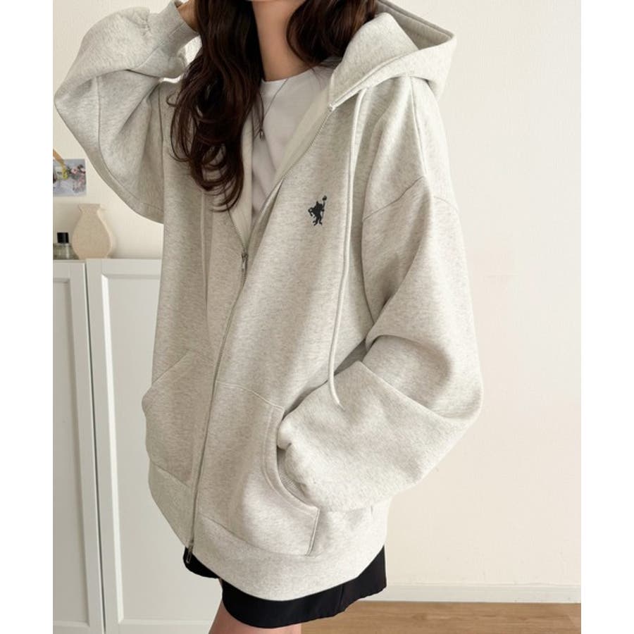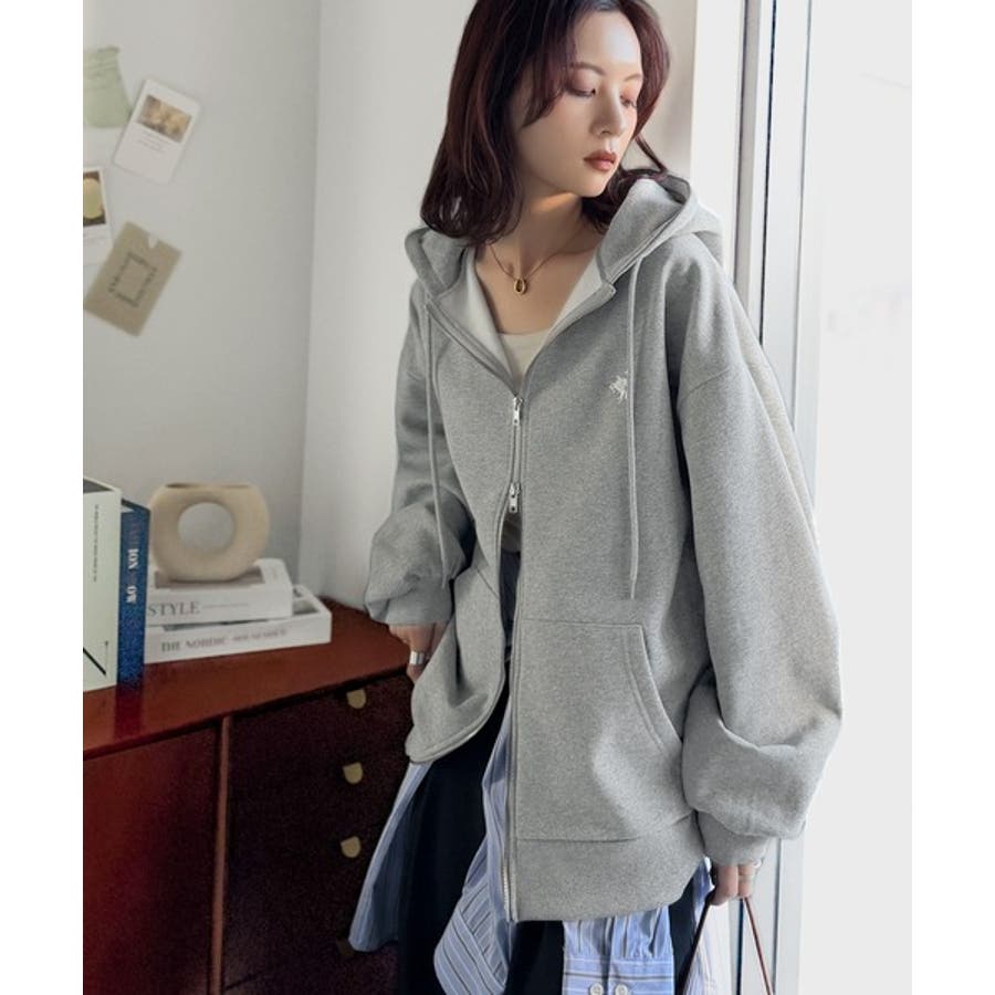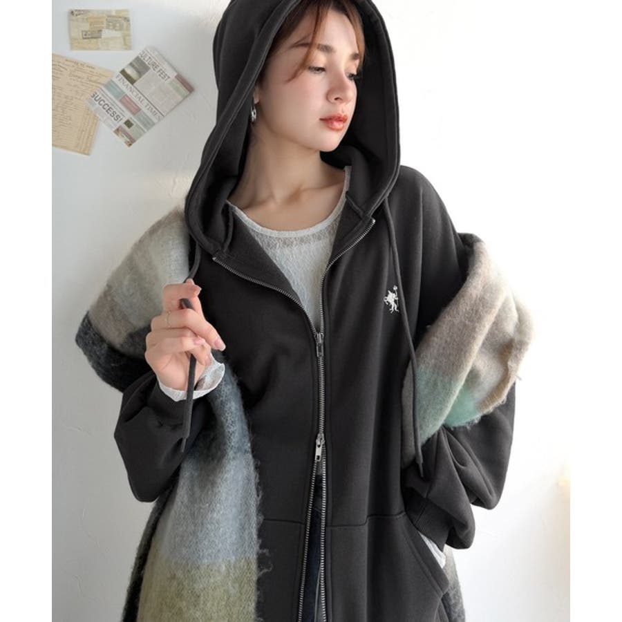 羽織って暖か、さらりと洒落感。胸元ワンポイント刺繍裏起毛ダブルジップパーカー